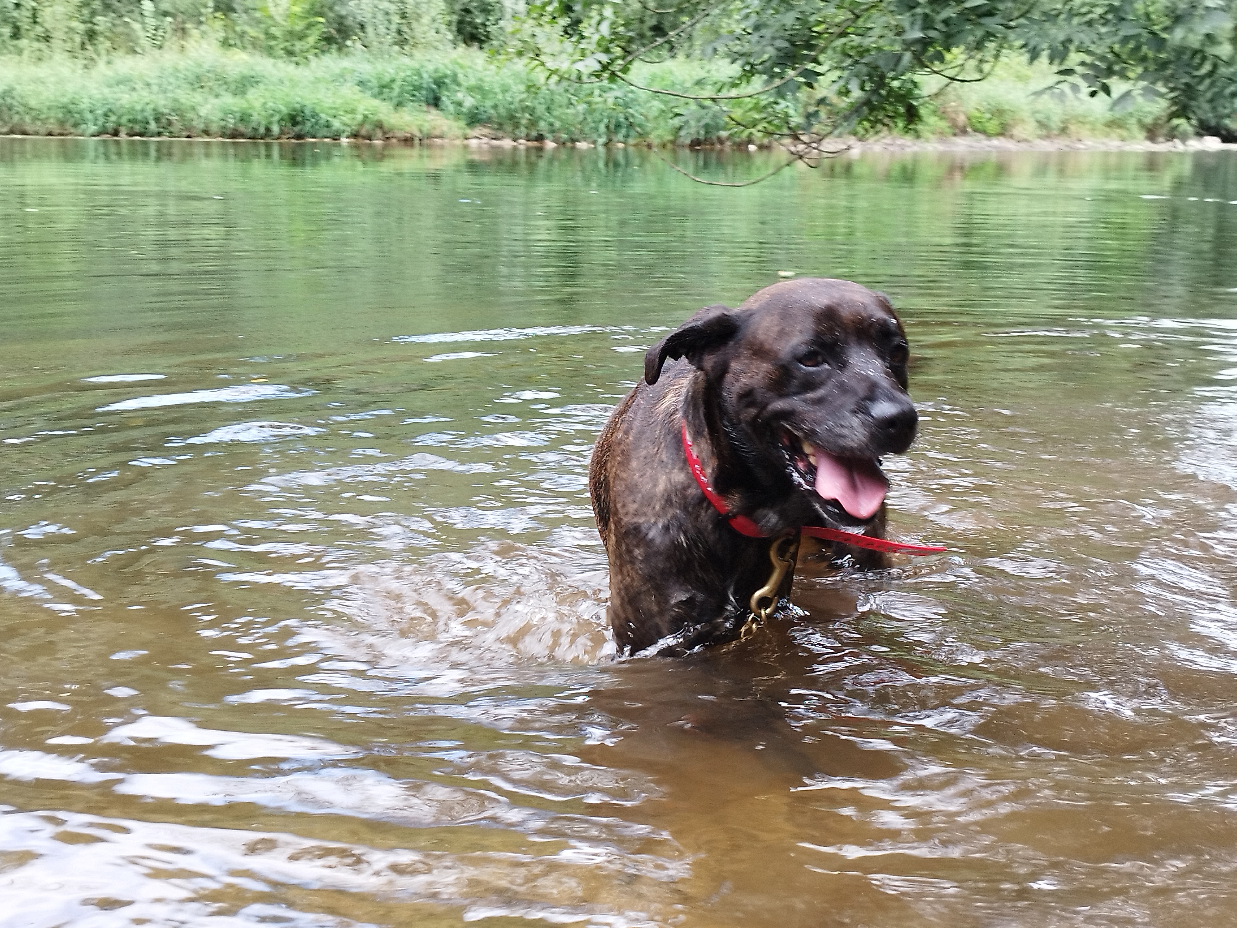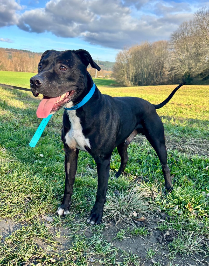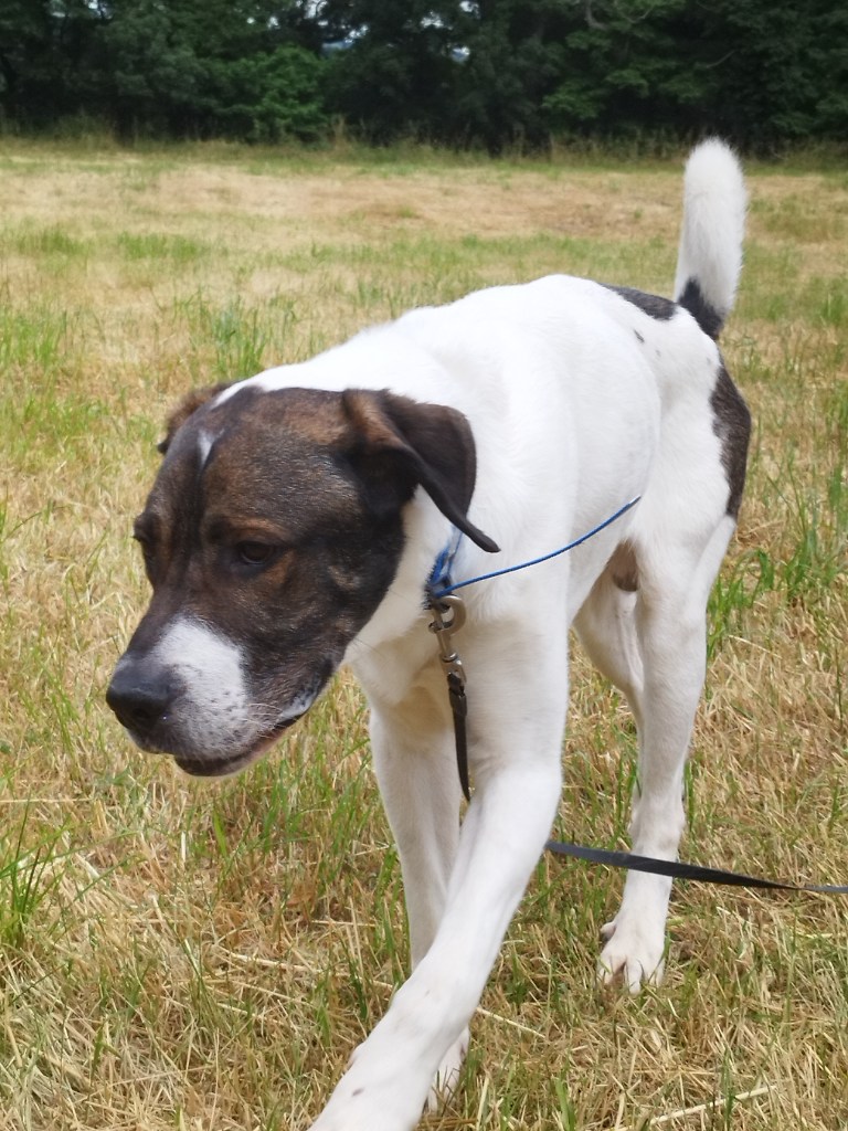 Choubaka est un chien de taille moyenne, âgé de 6 ans, croisé Braque. Il vient d’un refuge de Bordeaux et nous espérons que ce transfert lui portera chance ! Voici un résumé de l’équipe bordelaise : « Vous cherchez un compagnon intelligent, joueur et débordant d’énergie ? Peut-être que Choubaka est fait pour vous car c’est un chien vif, curieux et intelligent. Il comprend vite, adore apprendre, et, surtout, il aime partager ces moments de complicité avec l’humain. Très communicatif, il a besoin d’une présence attentive et bienveillante pour s’épanouir pleinement. En une séance d’éducation, Choubaka sait déjà s’asseoir, aboyer sur demande, passer sous ou grimper sur des obstacles et répondre à l’ordre « Stop ». Il attend une personne motivée pour continuer sur cette belle lancée. Choubaka est agile, joueur et capable de grande concentration si on sait capter son attention. Il a un vrai potentiel pour des activités comme l’agility. Il a besoin de se dépenser physiquement et mentalement pour pouvoir ensuite profiter de moments plus calmes et de câlins. Choubaka est très expressif et peut aboyer s’il s’ennuie ou si un cadre clair n’est pas établi. Il lui faut donc une personne patiente, active et présente, capable de lui offrir une vraie routine, de belles promenades et un environnement stimulant. Côté entente avec ses congénères, Choubaka est initialement arrivé avec une femelle. Depuis d’autres tests ont été réalisés : il faudra poursuivre sa sociabilisation. Choubaka n’apprécie pas trop des congénères brusques ou insistants. » Nous confirmons que Choubaka est vif et très gentil. Il se promène bien et adore se baigner ! Plus de photos sur Albums photos
