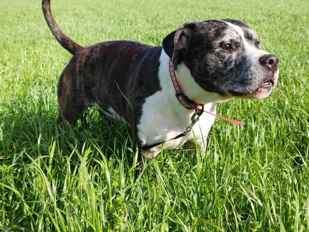 Luna est très gentille et affectueuse avec les humains. Luna est une chienne de catégorie 1 qui nécessite un permis de détention. Luna n’aime pas bien ses congénères.