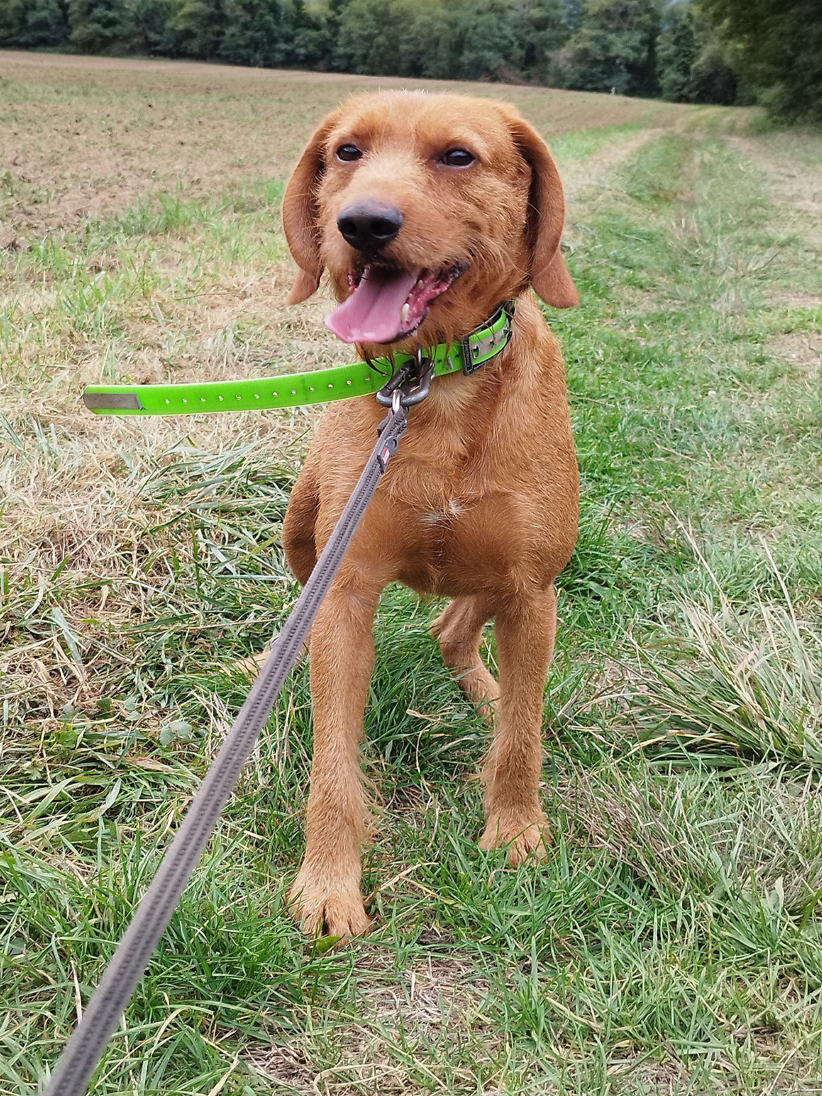 Juliette est un chiot femelle de 8 à 9 mois environ, croisée Fauve de Bretagne. Juliette a été trouvée avec Roméo. Elle sera une chienne de taille moyenne. Juliette est très gentille et câline. elle aime se balader, sans tirer. Elle semble accepter les autres chiens.