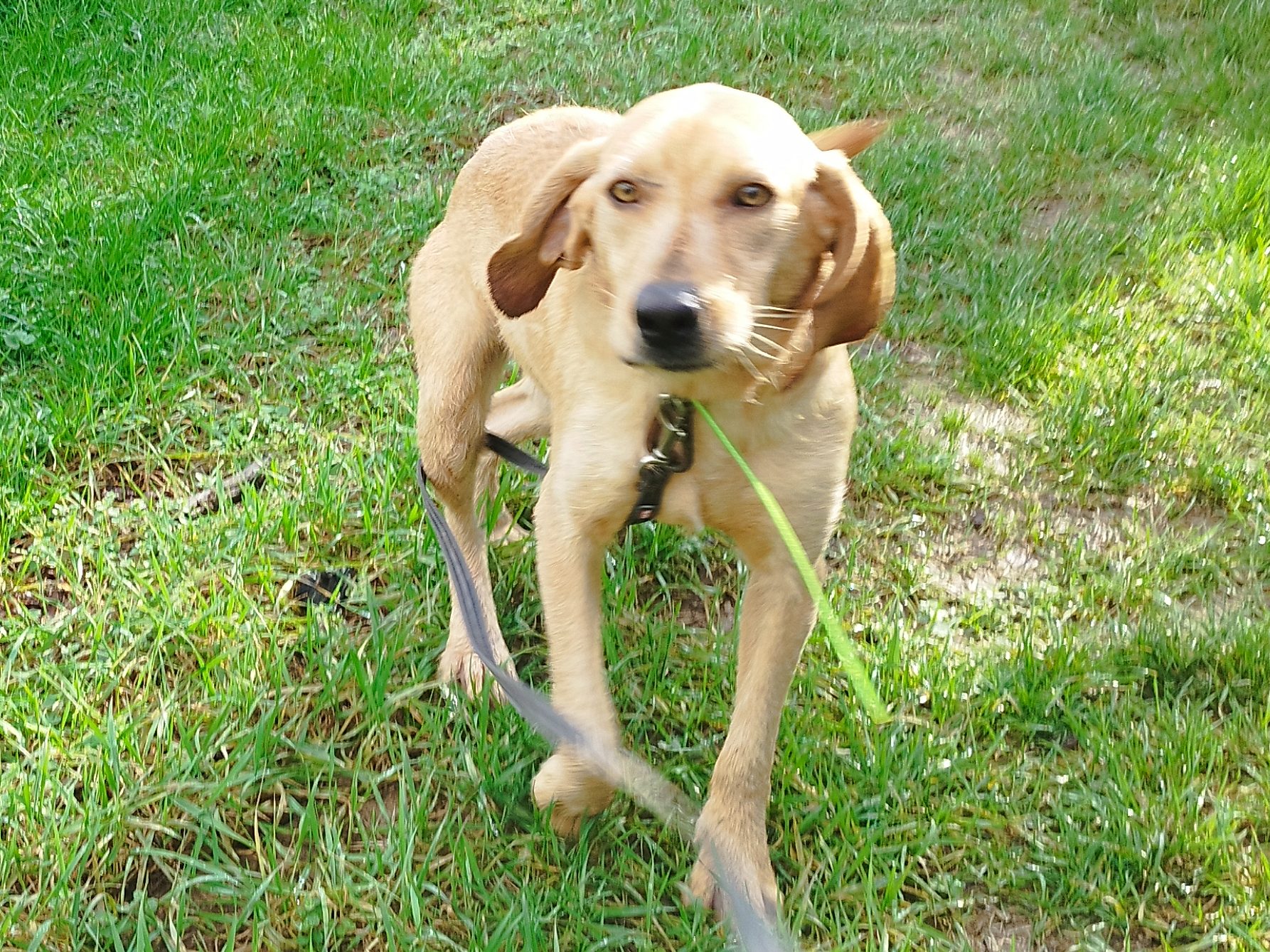 Falco est un chien de taille moyenne, croisé Labrador. Il est très gentil et recherche les câlins. Falco se promène facilement.