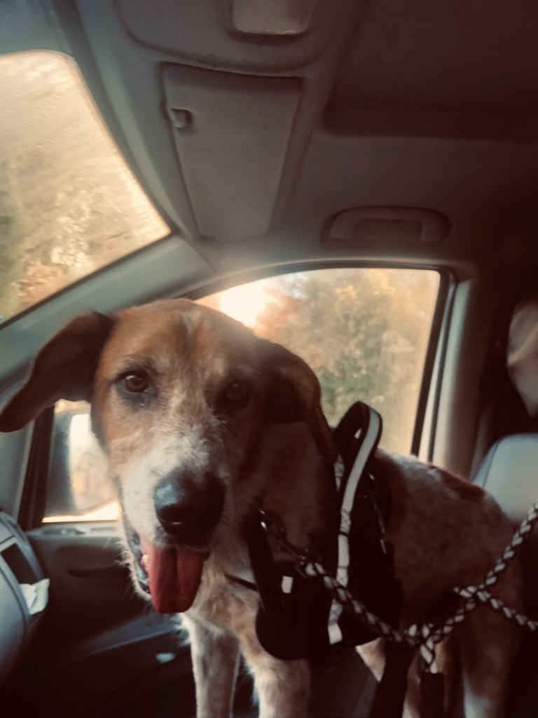 Après 9 ans passés au refuge, César a enfin retrouvé la liberté ! Il s’habitue à sa nouvelle vie et adore regarder le paysage qui défile de la vitre du van ! Comme il y passe beaucoup de temps (il est allé jusqu’à Grenoble), il a eu droit à une vraie ceinture de sécurité ! Il se promène beaucoup et réclame toujours plus de balades ! C’est un amour de chien facile à vivre !
