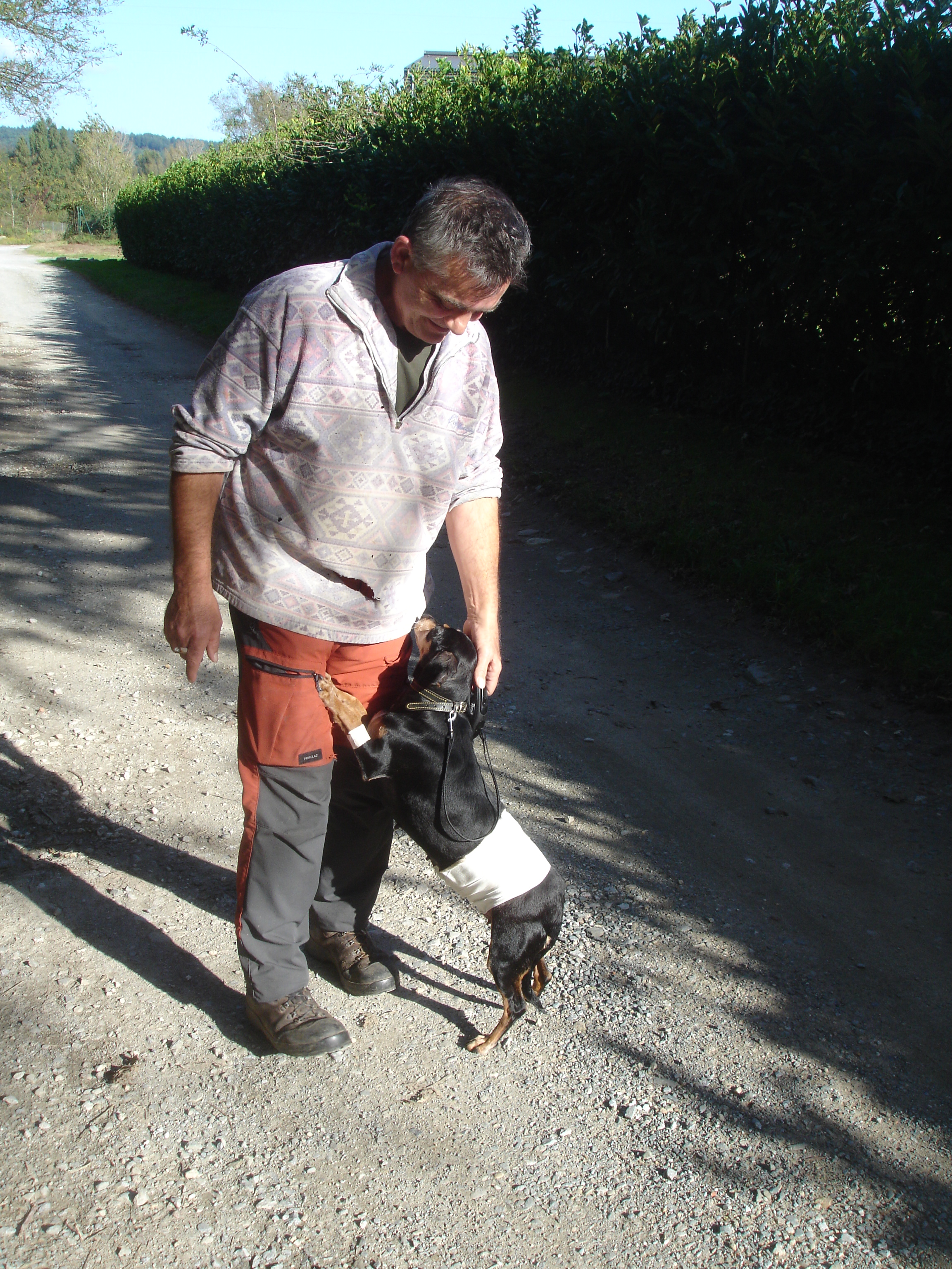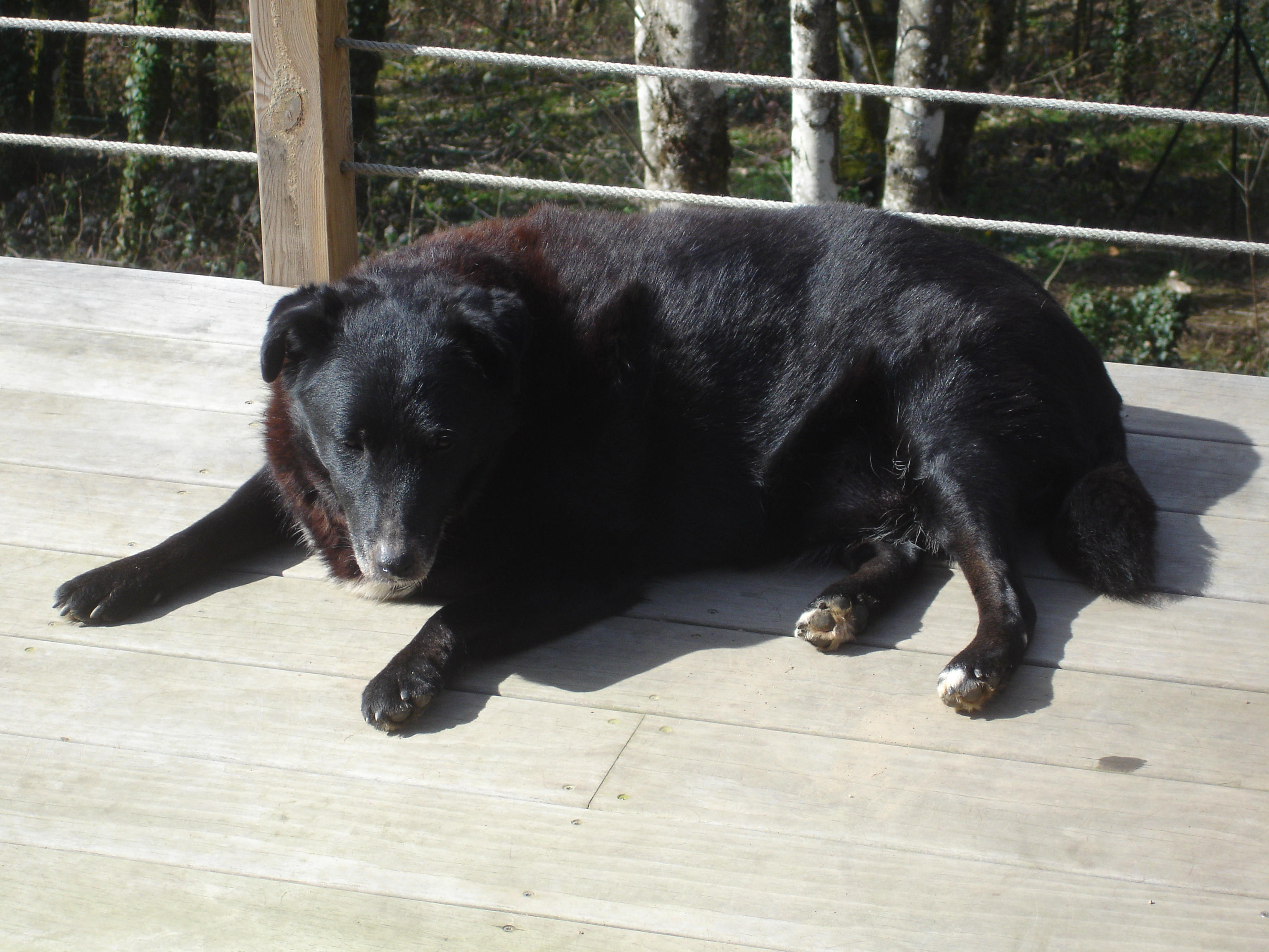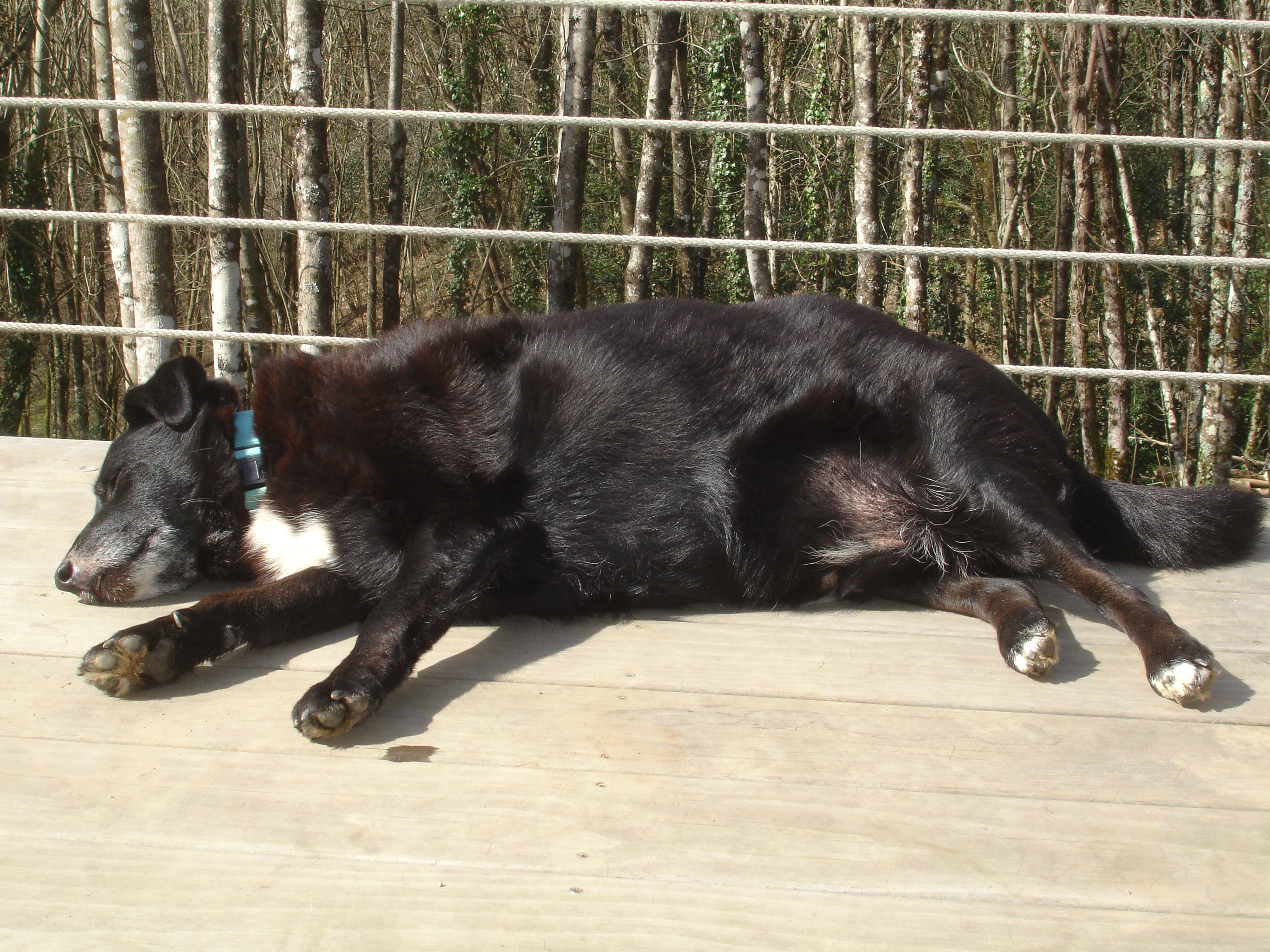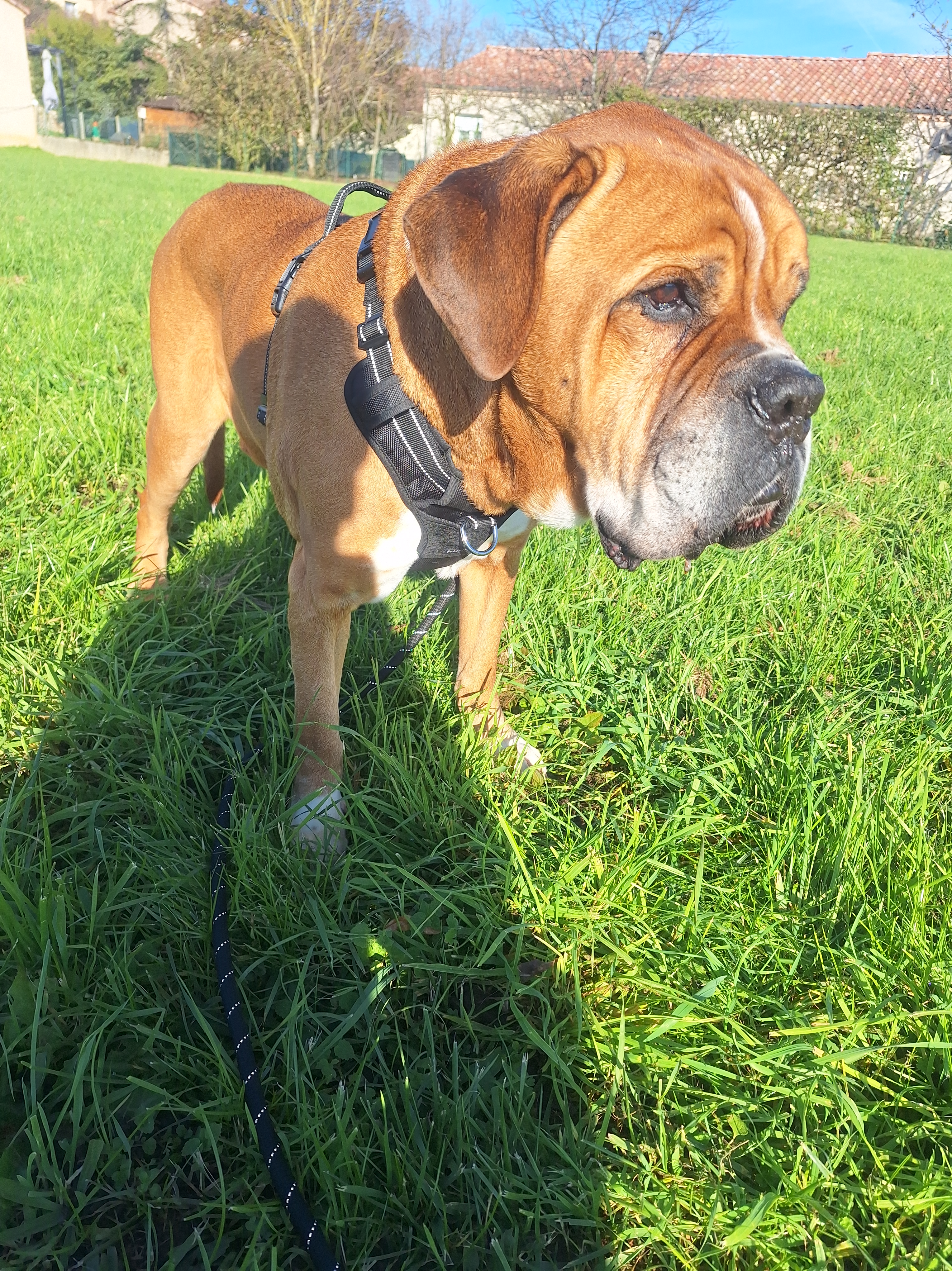 Notre « petit » Néron se porte bien et est toujours aussi adorable ! J’ai adapté ses croquettes (plus de viande) pour l’aider à reprendre du muscle, avec un complément d’huile de saumon pour ses articulations. Régime qu’il apprécie il me semble !!! Nous fonctionnons avec 5 sorties par jour de 30 minutes. Les résultats se font déjà ressentir, il est plus souple du train arrière et trottine volontiers…
