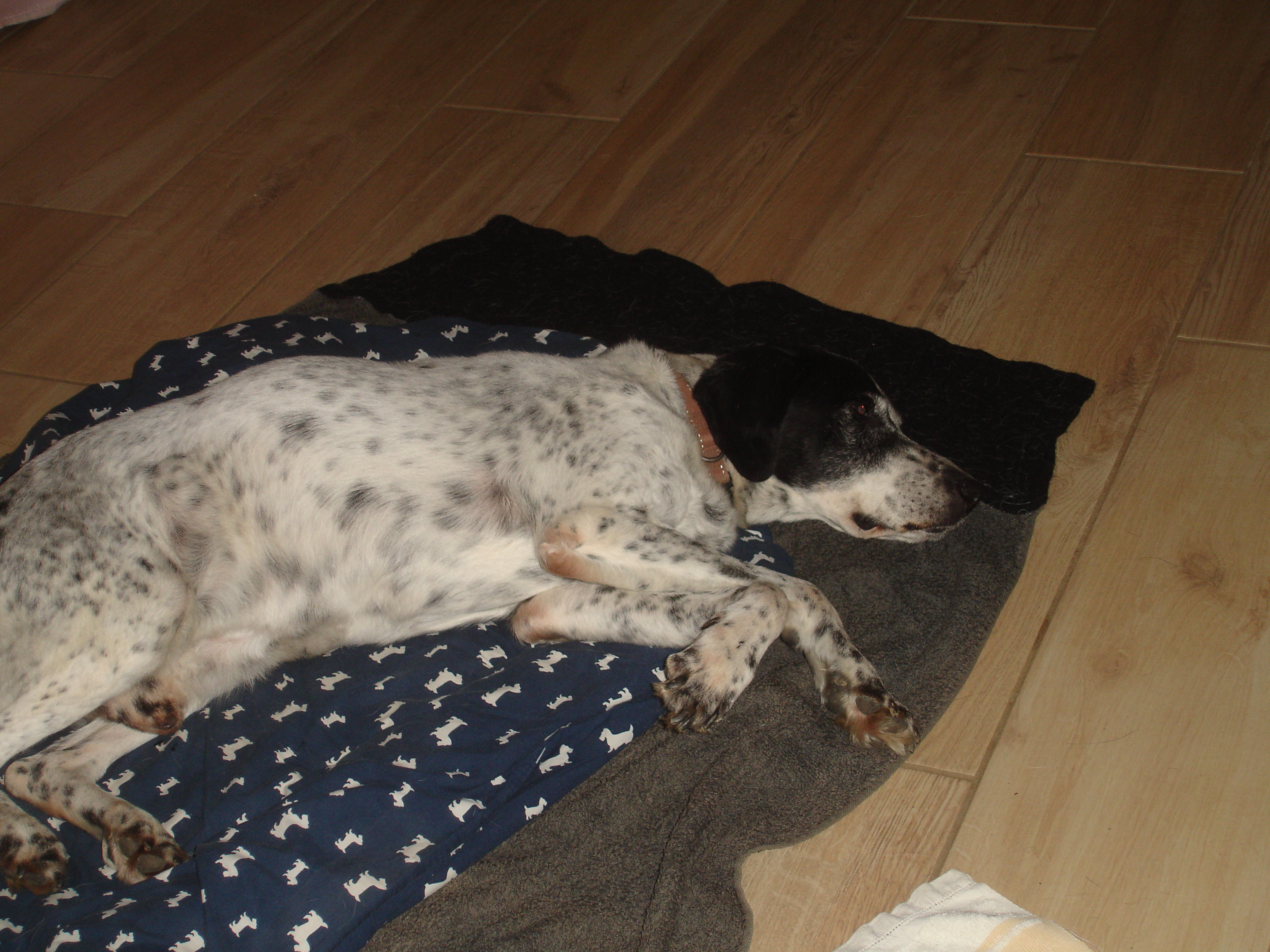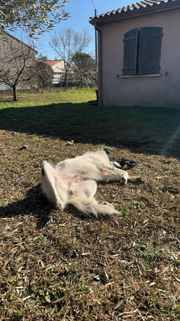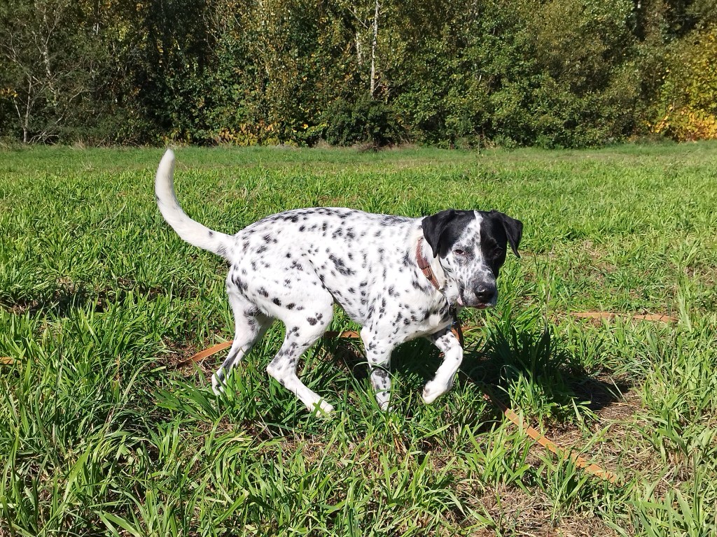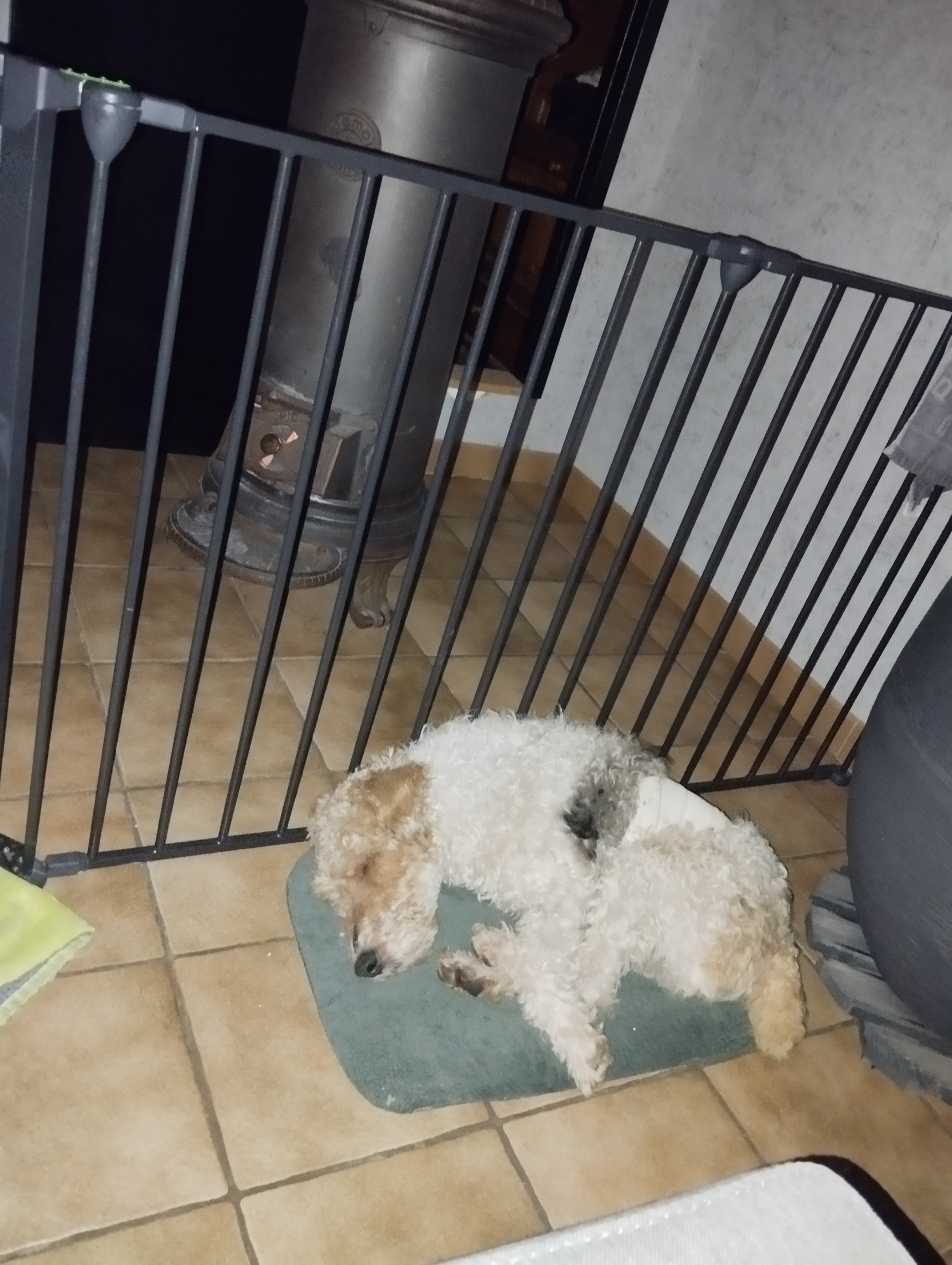 Notre « petit » Néron se porte bien et est toujours aussi adorable ! J’ai adapté ses croquettes (plus de viande) pour l’aider à reprendre du muscle, avec un complément d’huile de saumon pour ses articulations. Régime qu’il apprécie il me semble !!! Nous fonctionnons avec 5 sorties par jour de 30 minutes. Les résultats se font déjà ressentir, il est plus souple du train arrière et trottine volontiers…