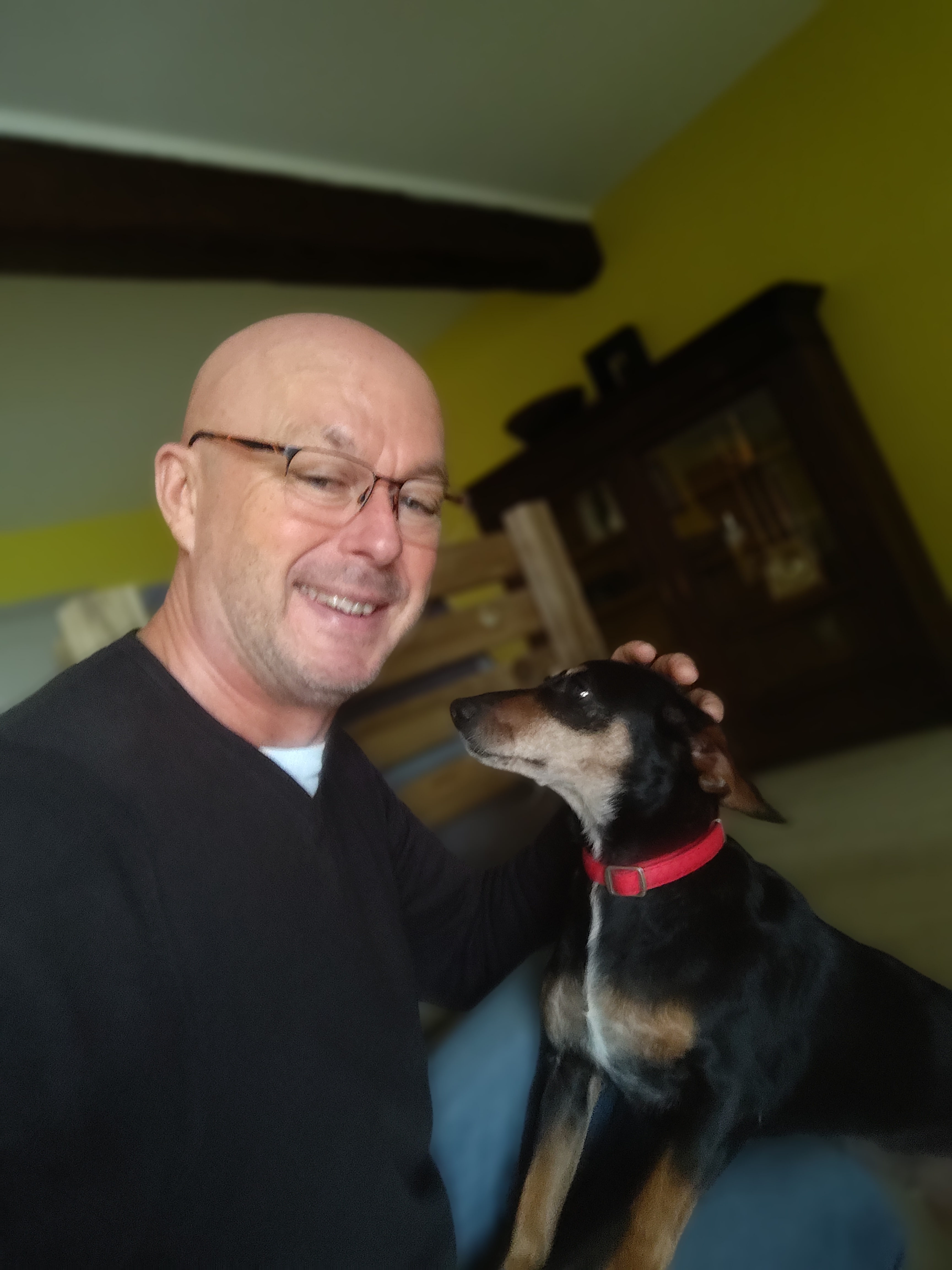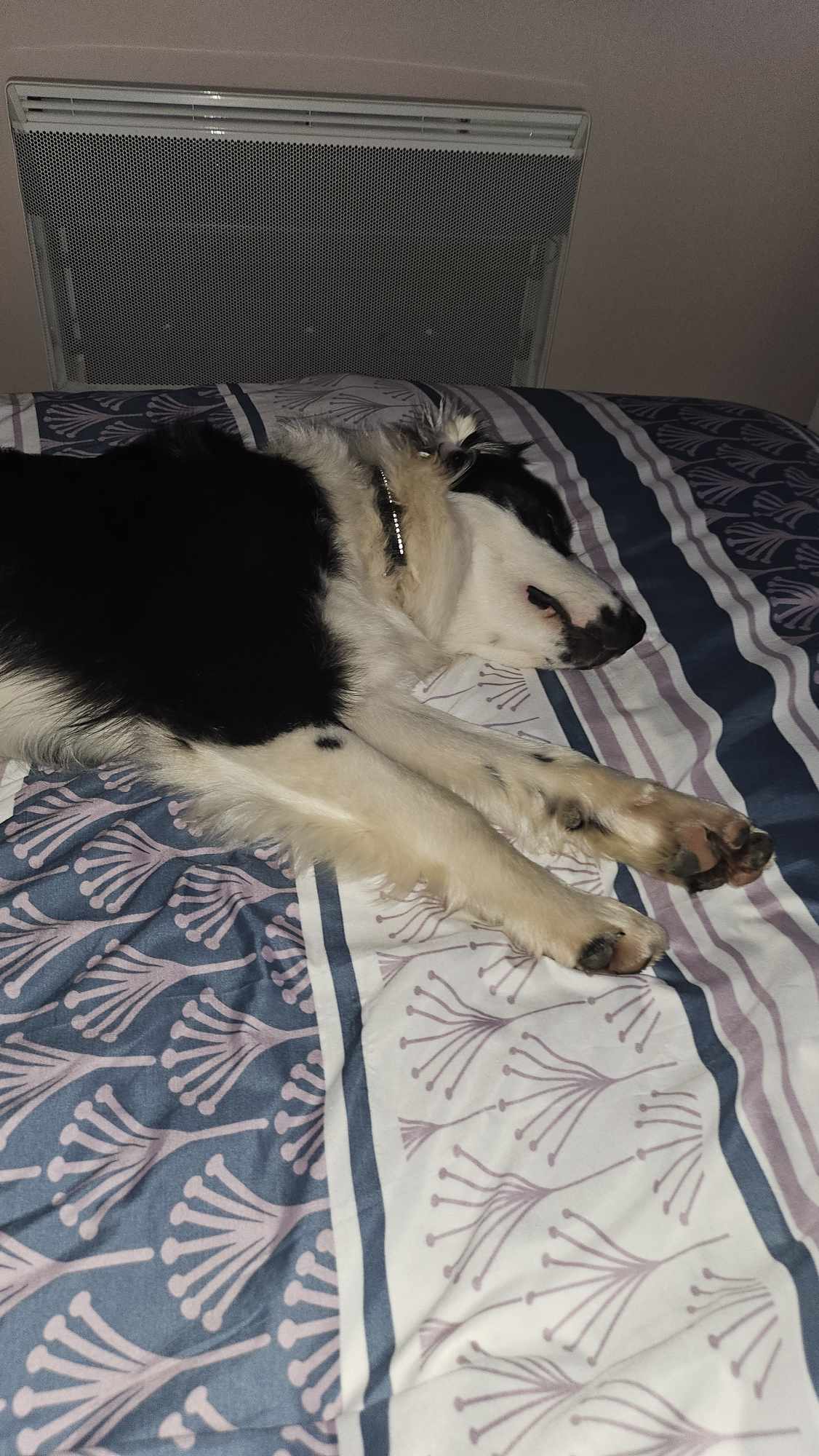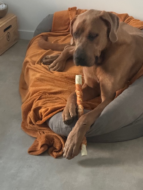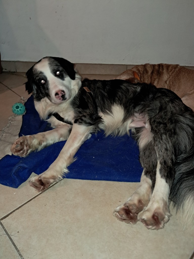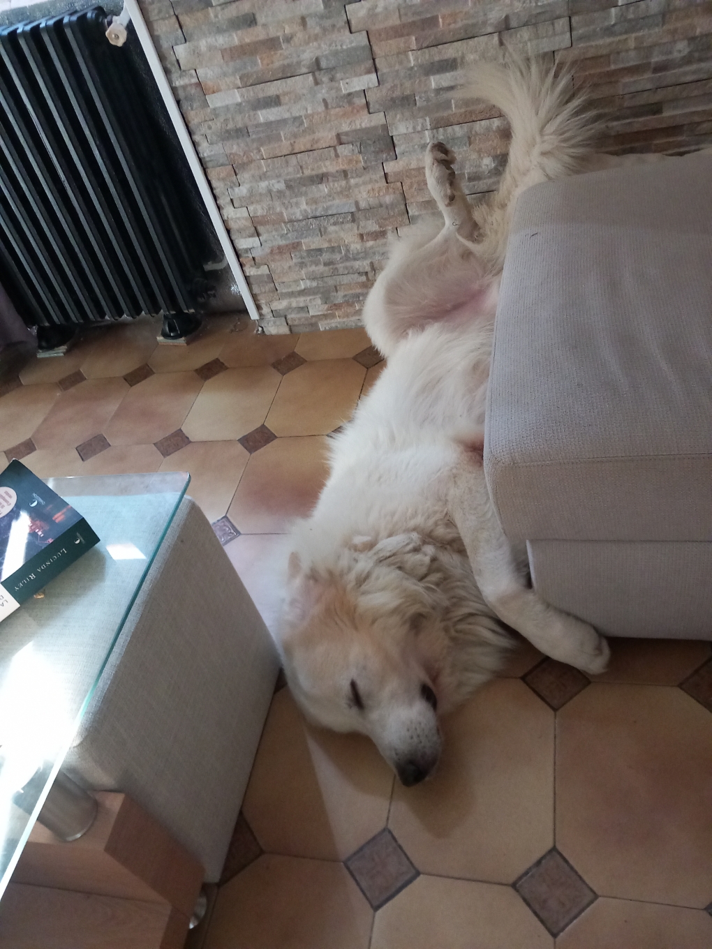 Notre « petit » Néron se porte bien et est toujours aussi adorable ! J’ai adapté ses croquettes (plus de viande) pour l’aider à reprendre du muscle, avec un complément d’huile de saumon pour ses articulations. Régime qu’il apprécie il me semble !!! Nous fonctionnons avec 5 sorties par jour de 30 minutes. Les résultats se font déjà ressentir, il est plus souple du train arrière et trottine volontiers…