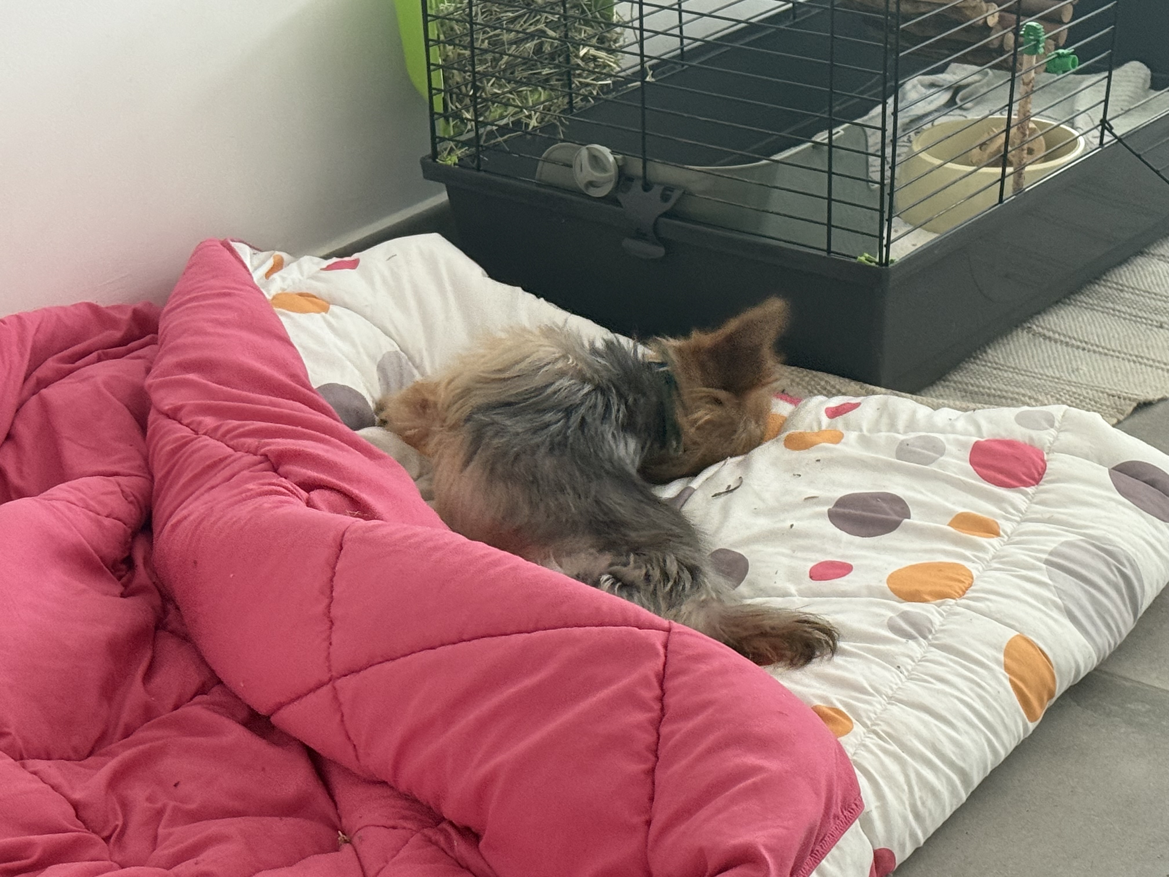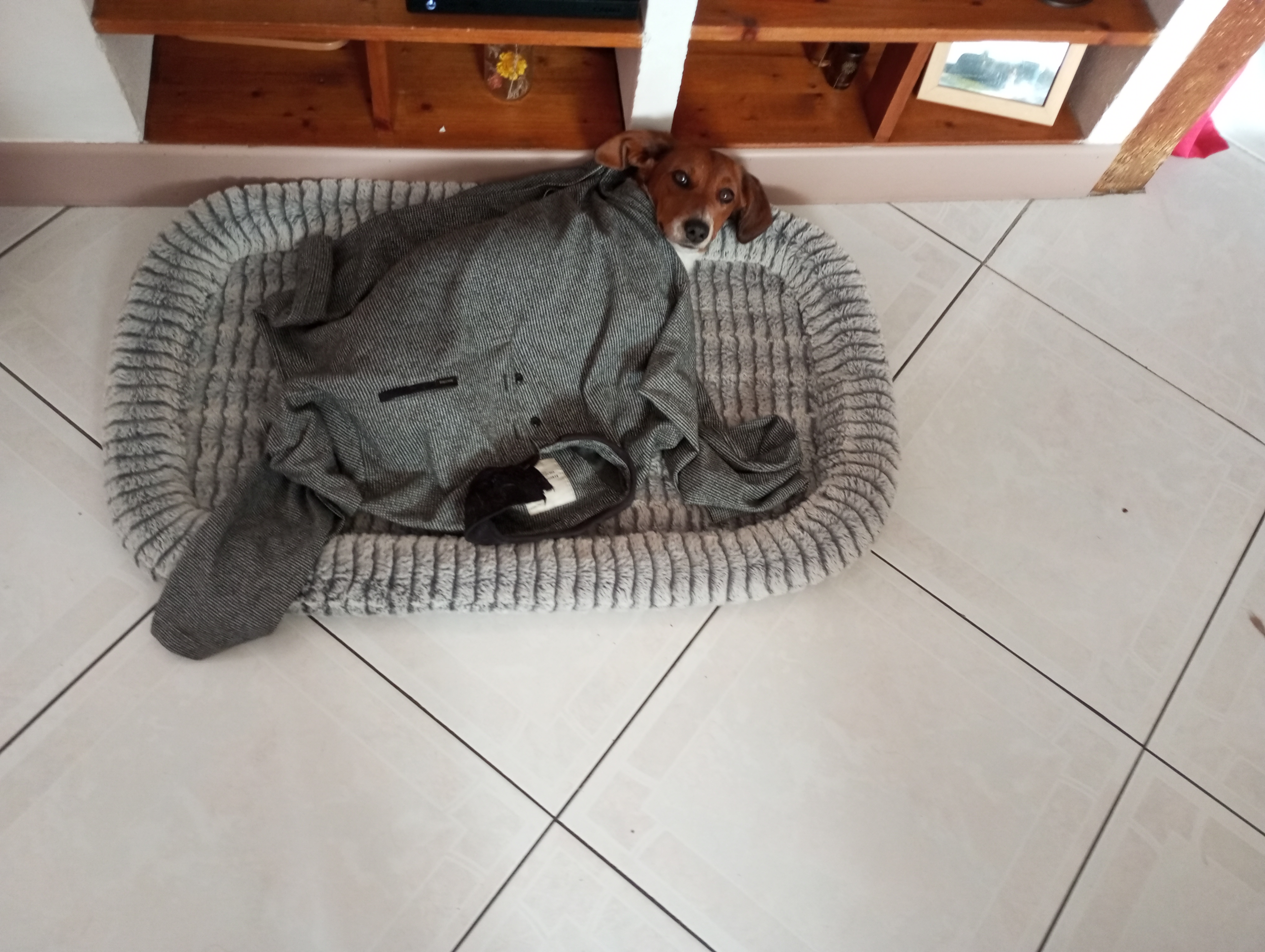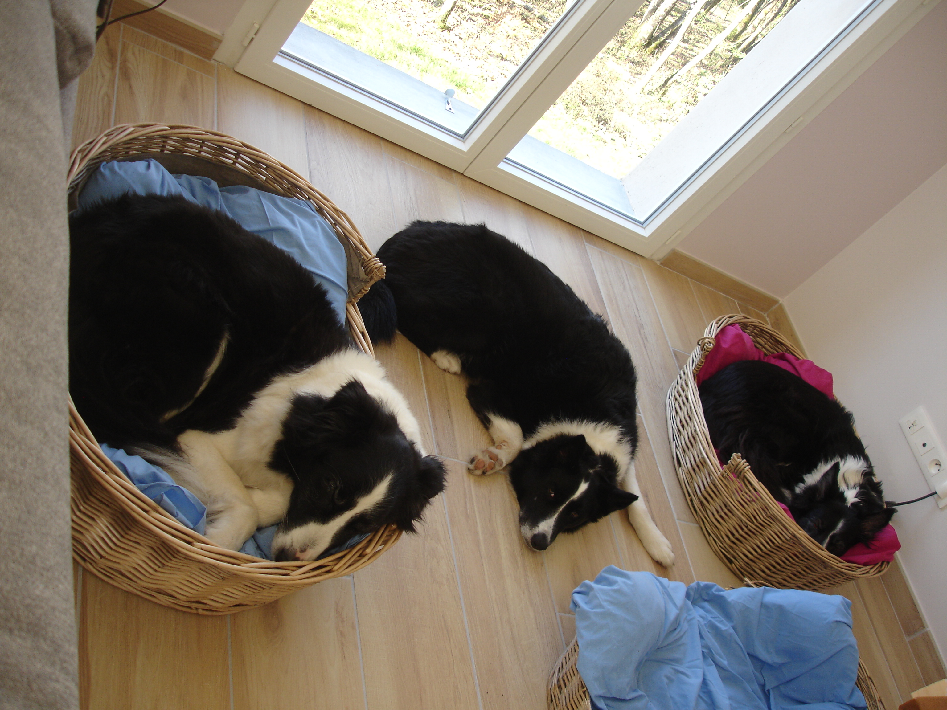 Vesna découvre la maison à son arrivée. Le dodo de Vesna. Vesna à la chasse au hérisson. Le coin de Vesna dans le bureau de sa maîtresse qui y travaille: Vesna l’attend gentiment et sagement !