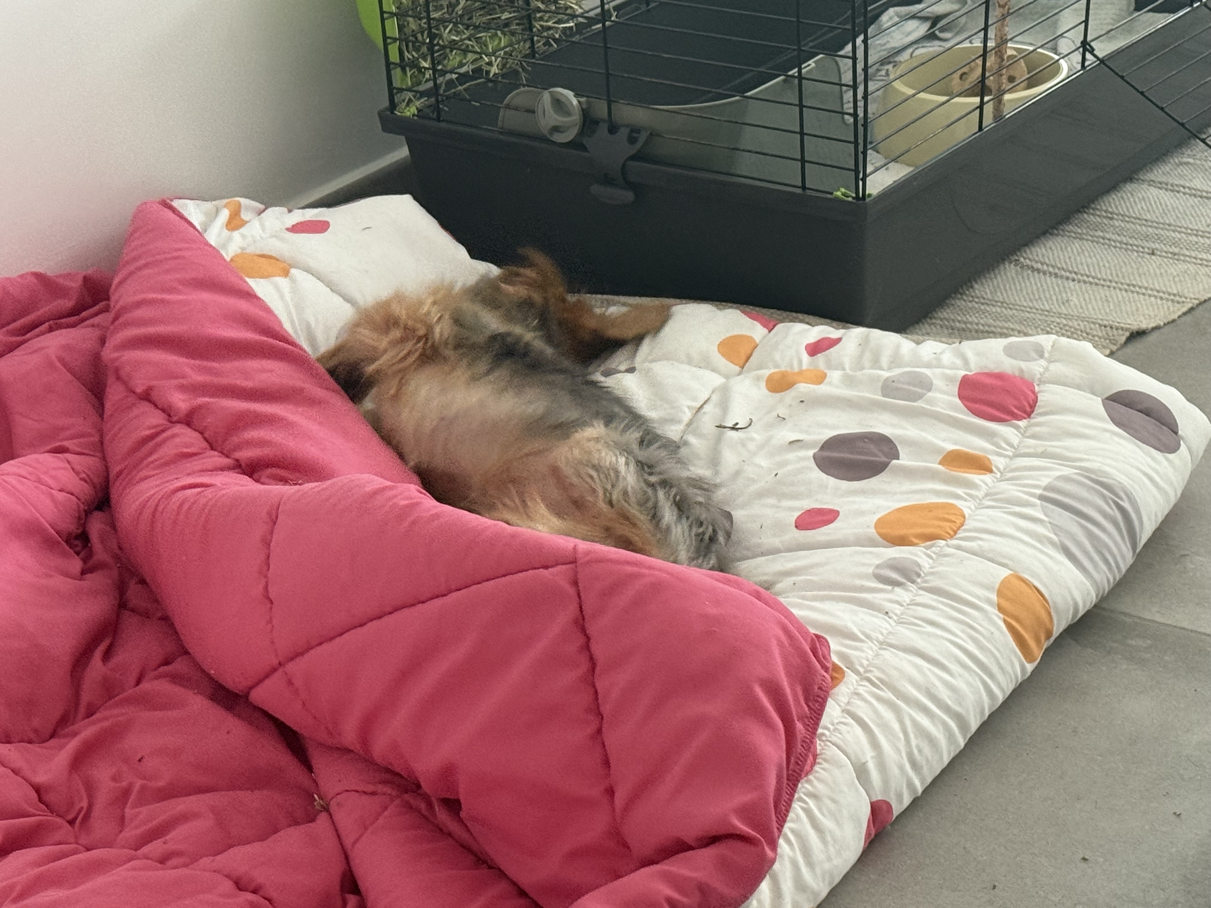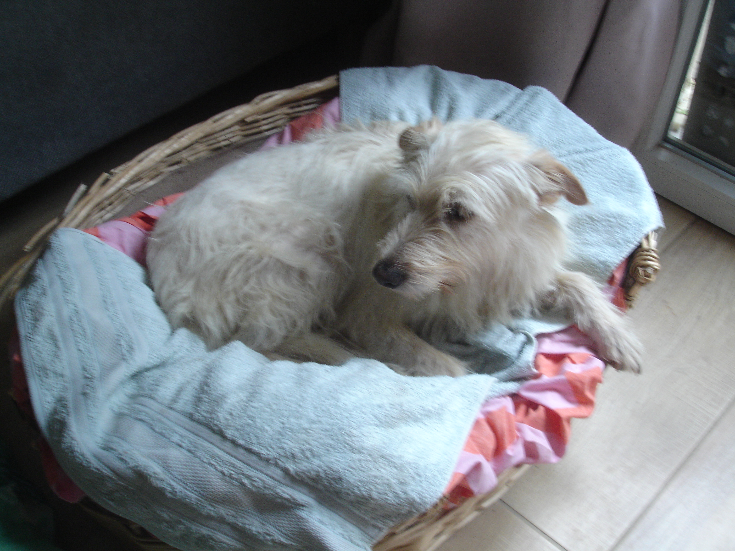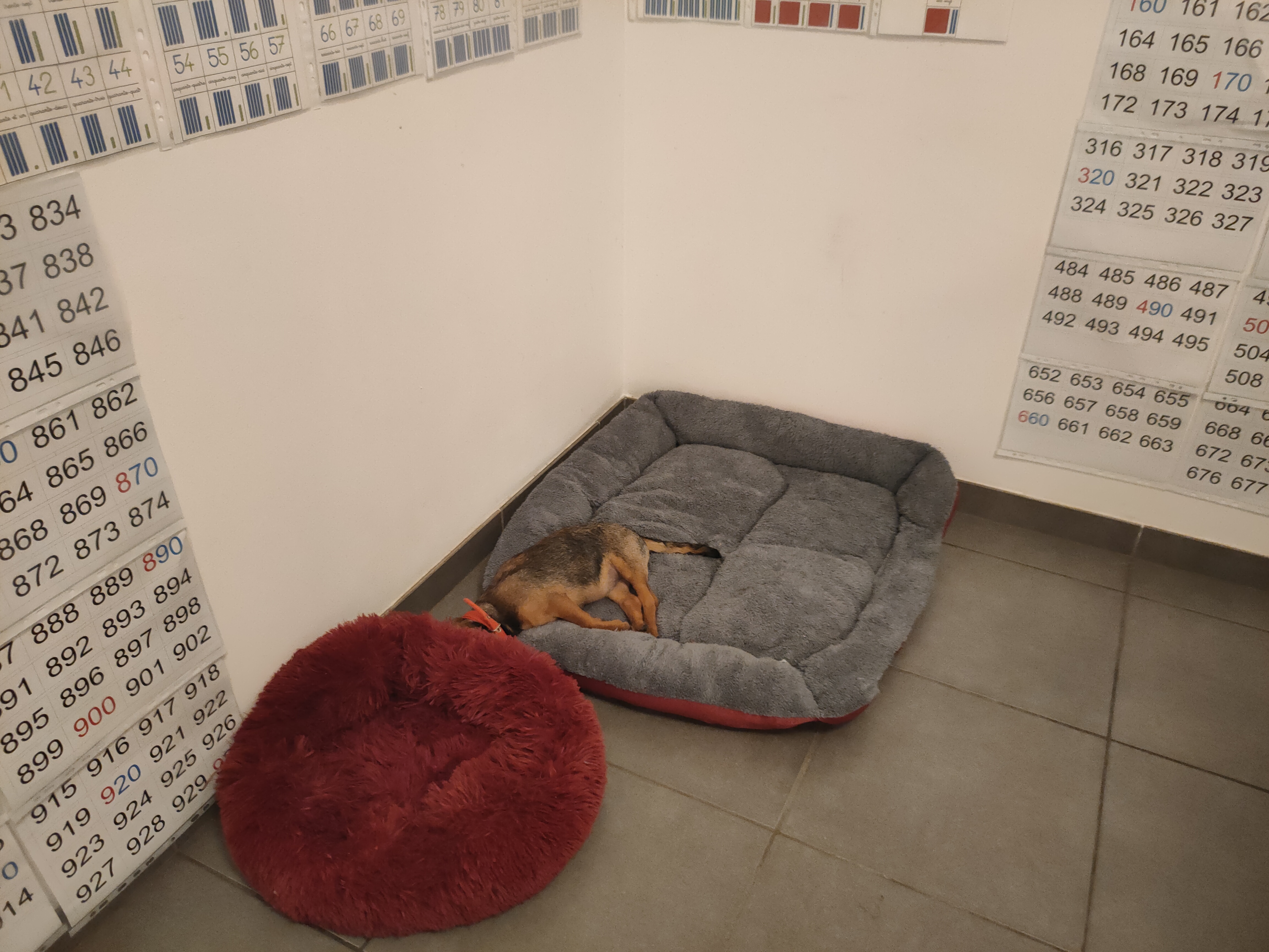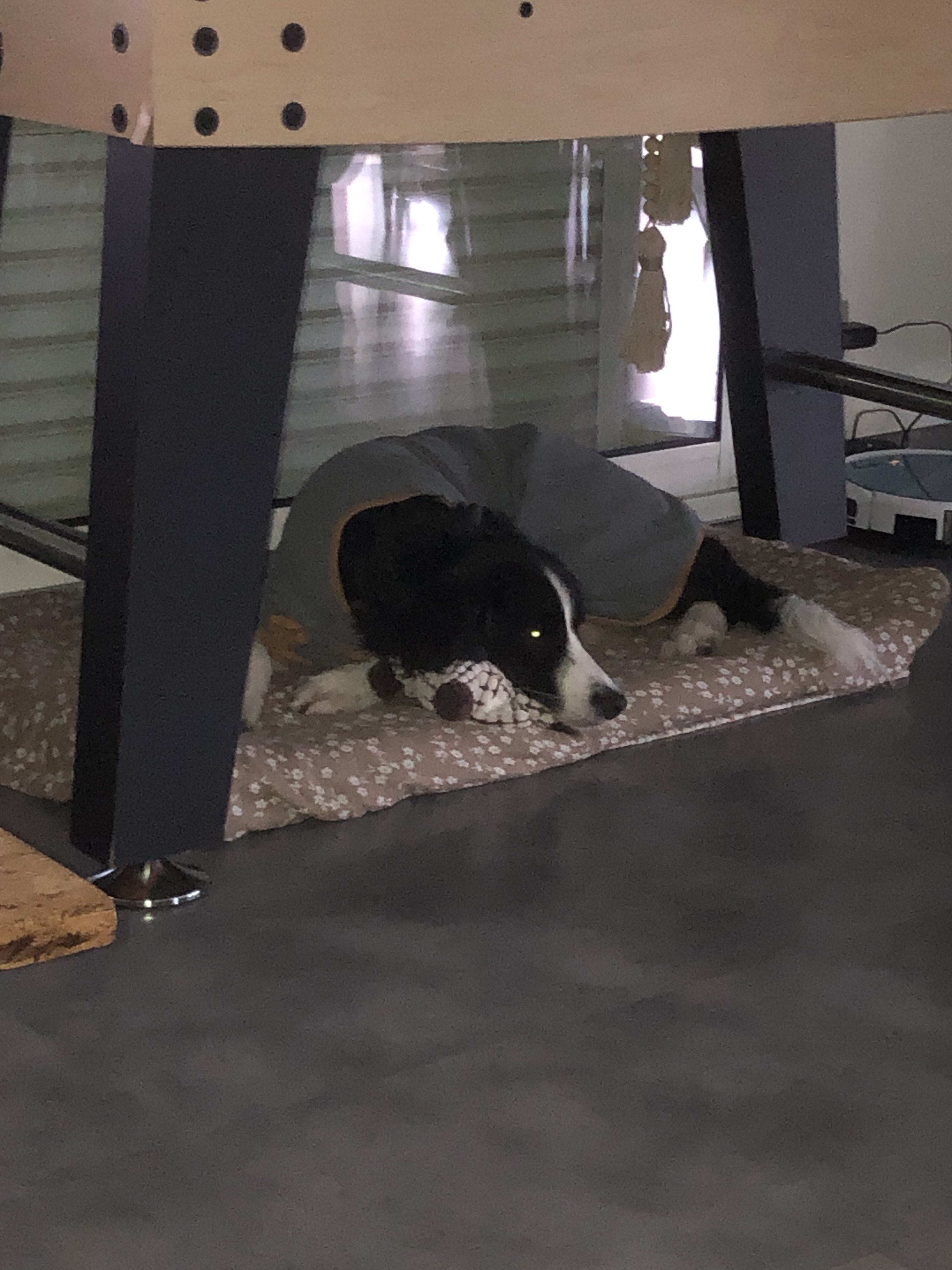 Vesna découvre la maison à son arrivée. Le dodo de Vesna. Vesna à la chasse au hérisson. Le coin de Vesna dans le bureau de sa maîtresse qui y travaille: Vesna l’attend gentiment et sagement !