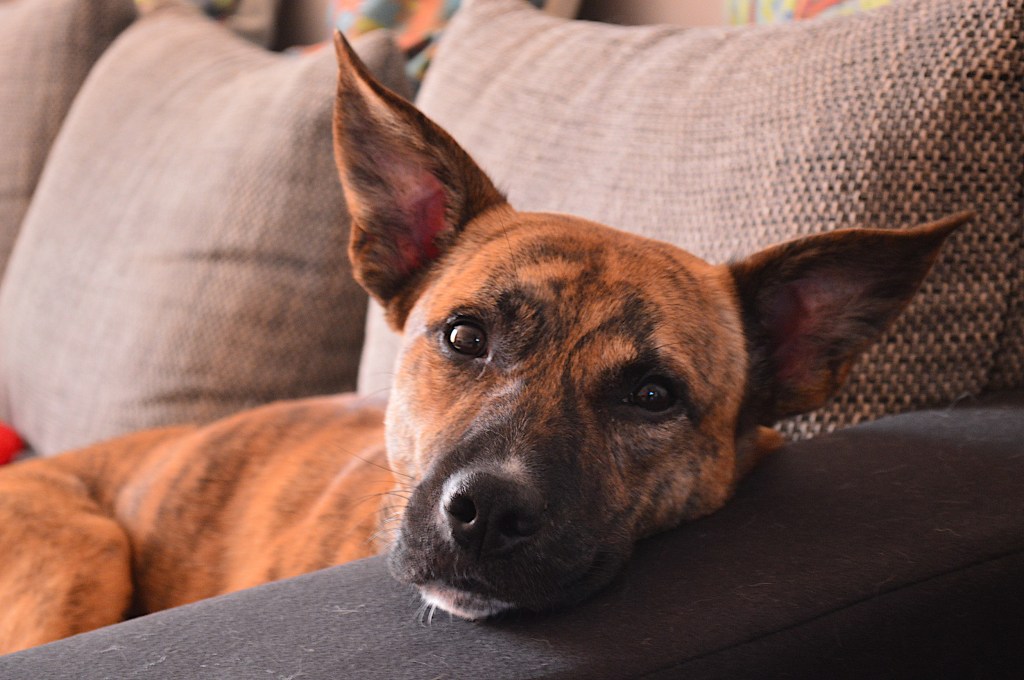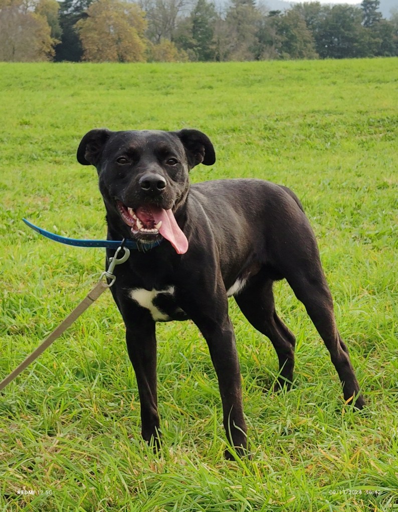 Olie, cette jeune et belle chienne croisée Dog ne sera pas restée longtemps au refuge ! Une nouvelle vie pleine de tendresse t’attend !