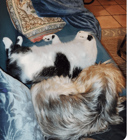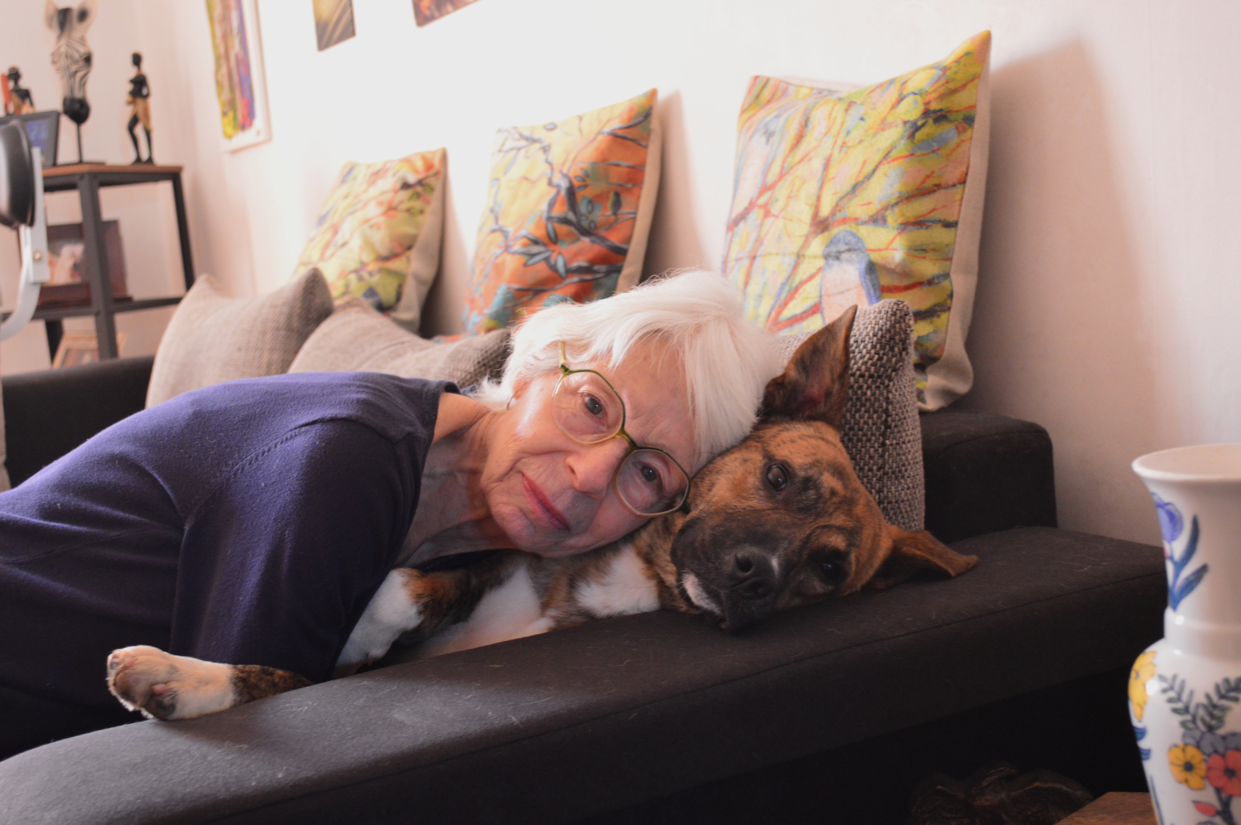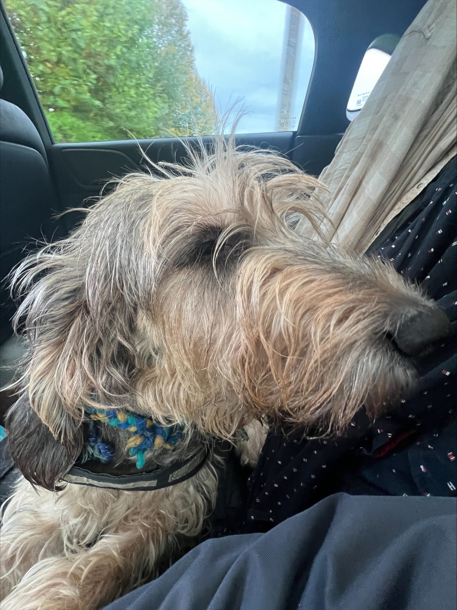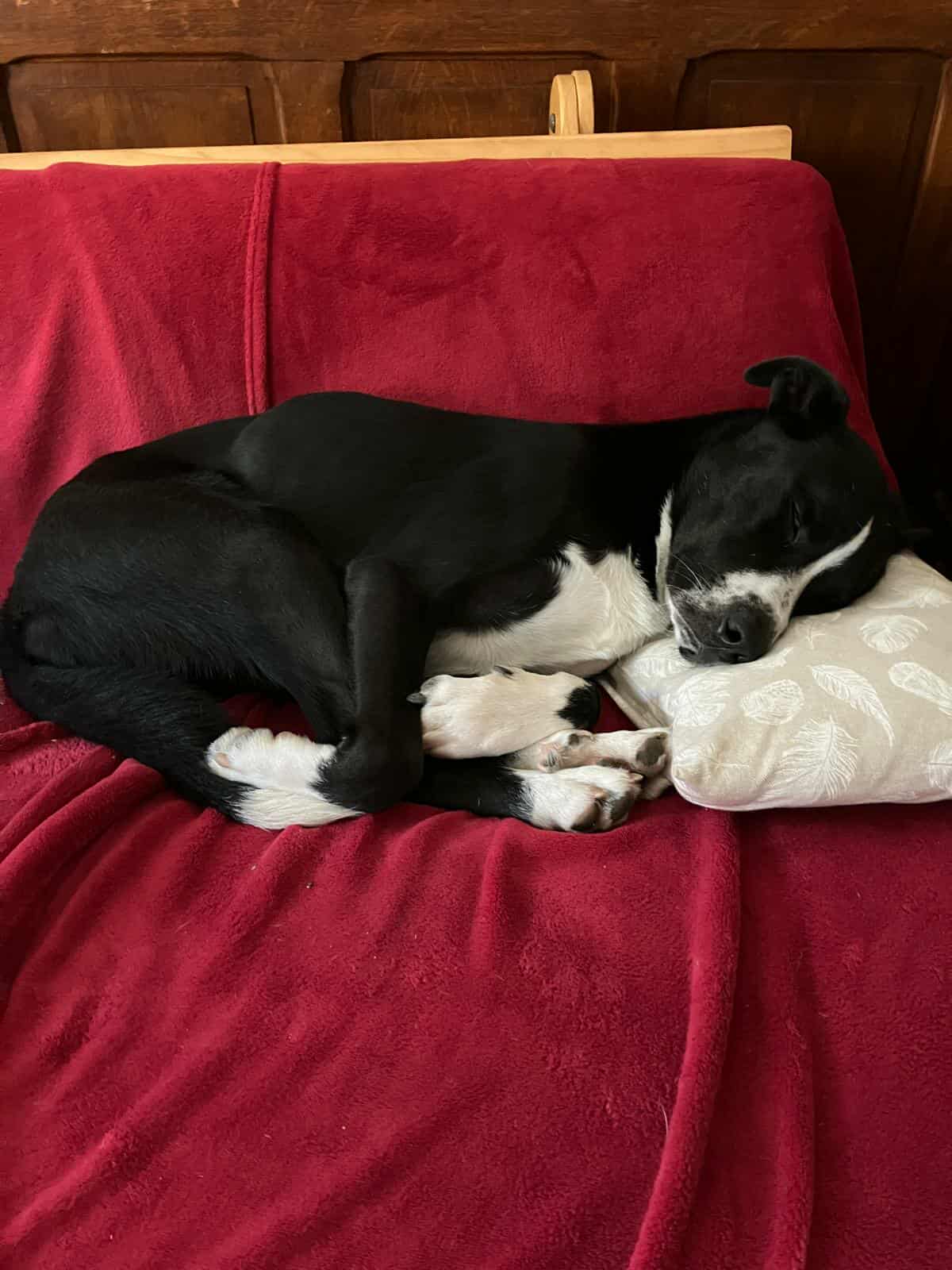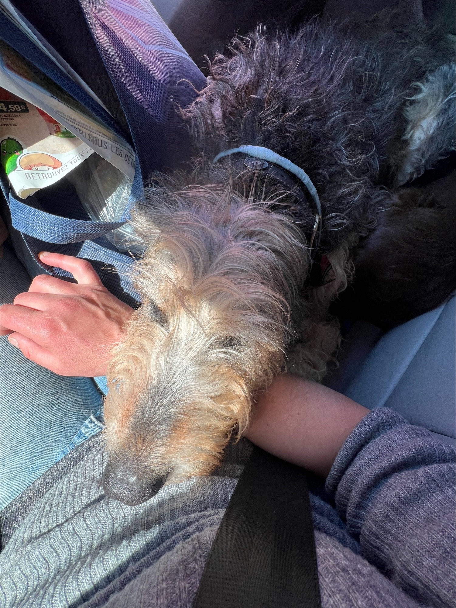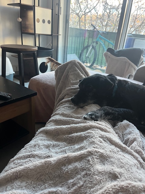 Falco a trouvé une jeune famille aimante et un nouveau copain ! Que d’émotions le jour de son départ : Falco était une vraie pile et s’agitait dans tous les sens ! Il semblait tellement joyeux de partir ! Impossible de le photographier correctement, même installé dans la voiture ! Depuis, la vie de famille semble l’avoir calmé : une bonne sieste sur le canapé avec ceux que l’on aime, c’est inestimable !