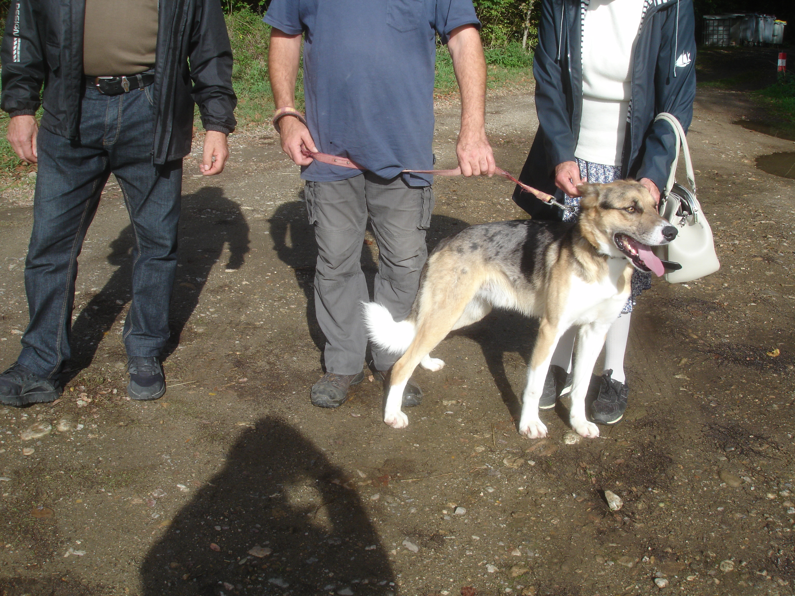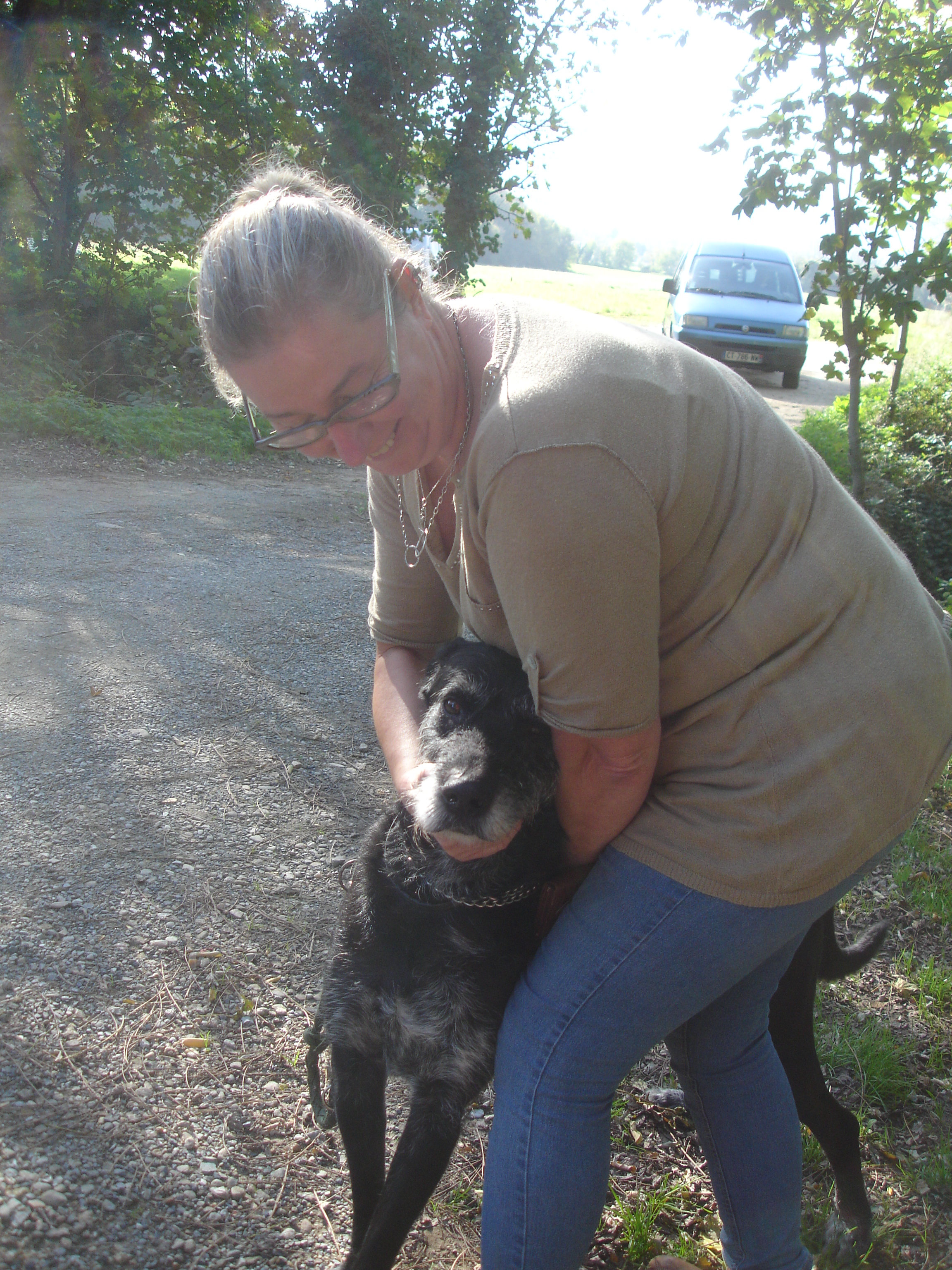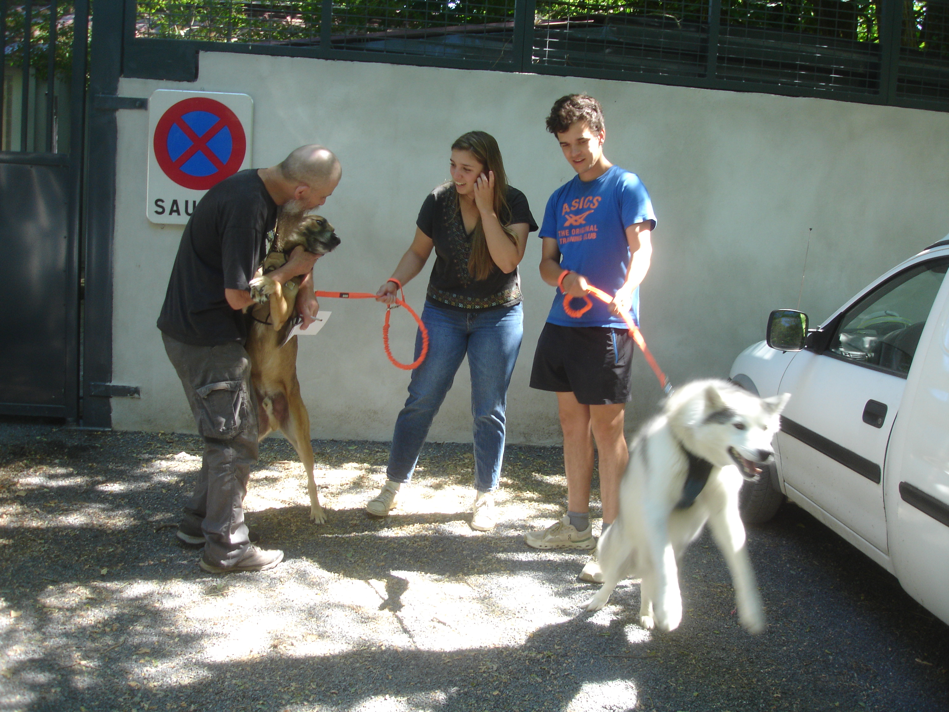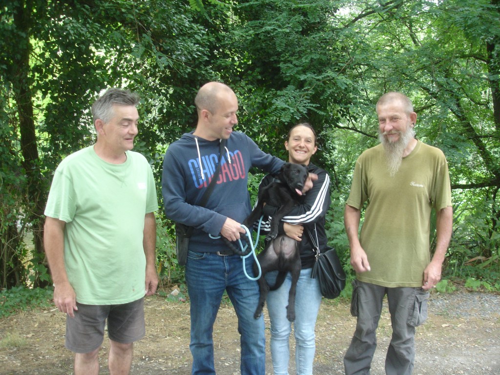 Voici le départ de Leïko qui était arrivé la veille au refuge. Sa maîtresse a téléphoné à la mairie de Saint-Amans Valtoret qui l’a prévenue que son chien était au refuge. Quelle effusion de joie ! Maintenant, vite, à la maison !