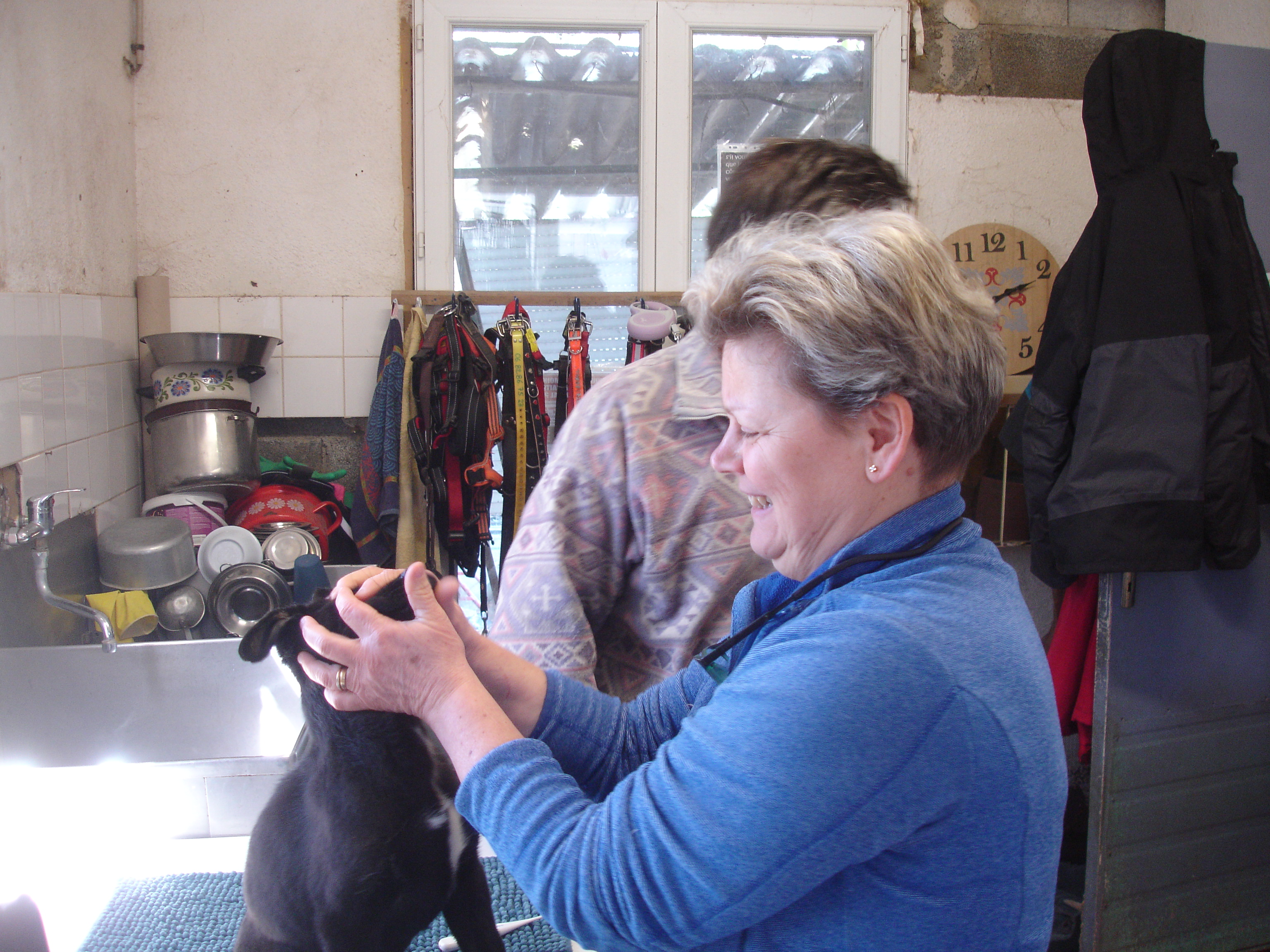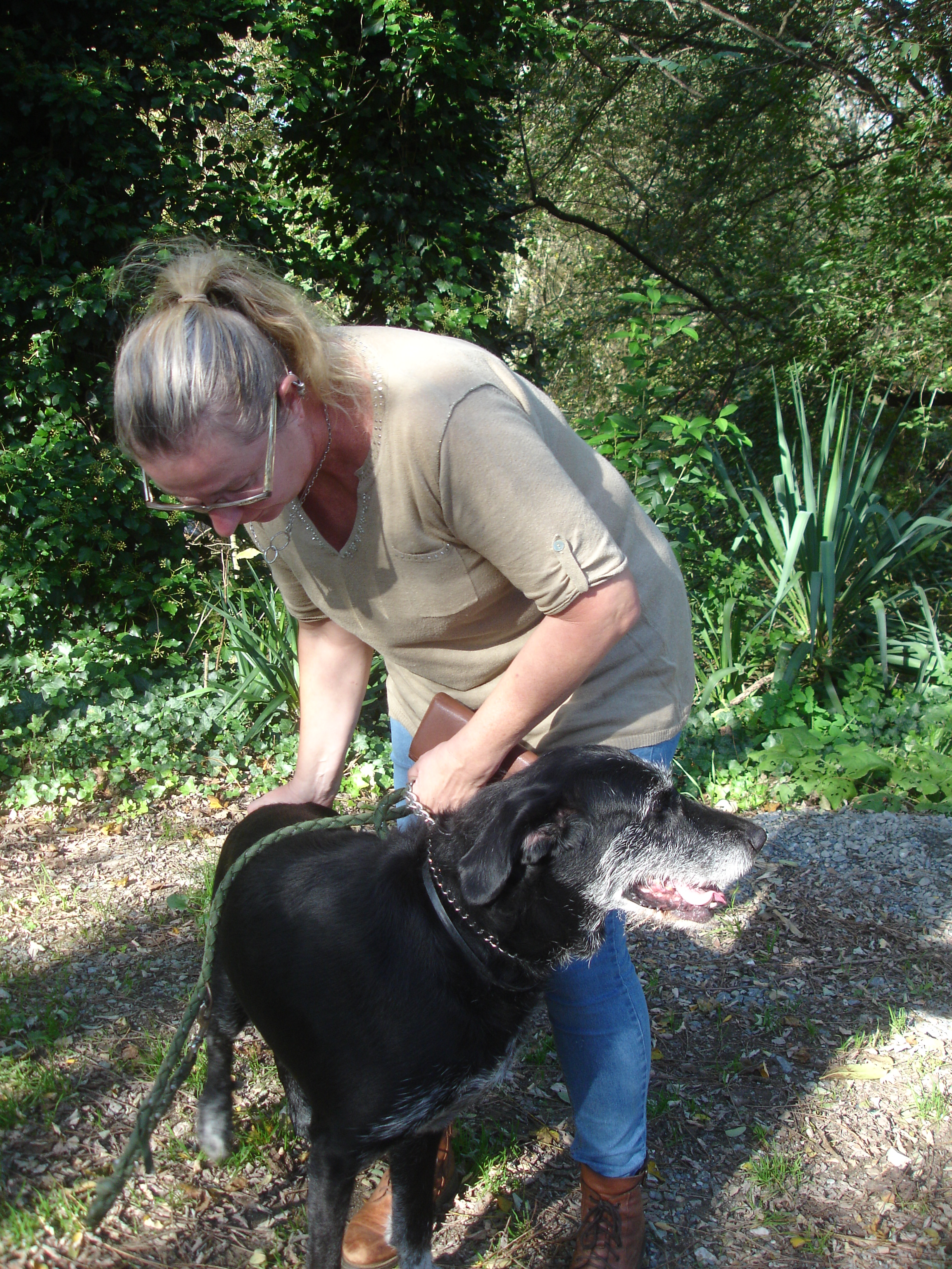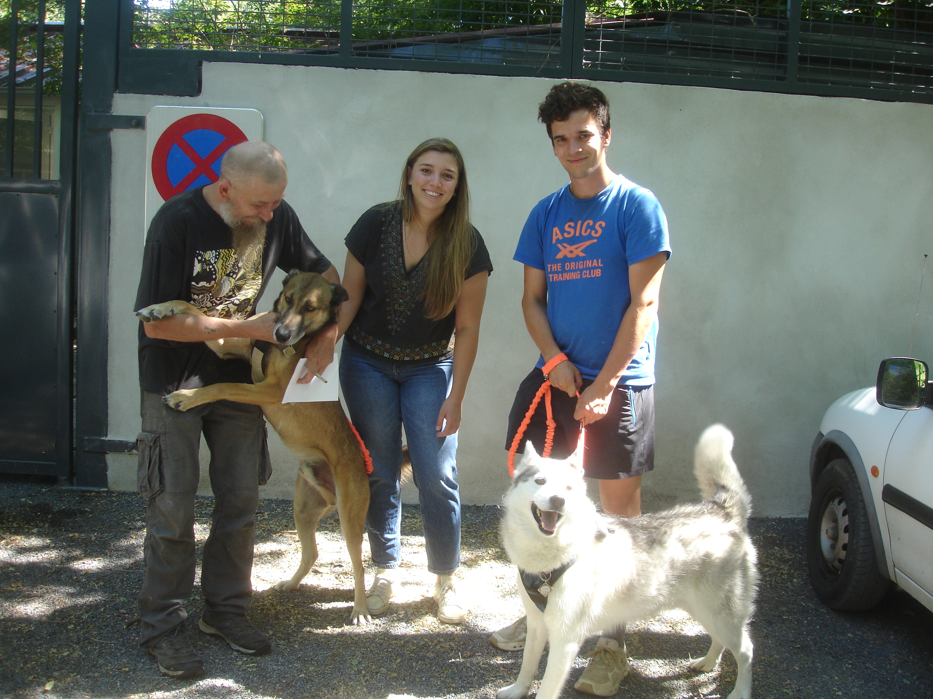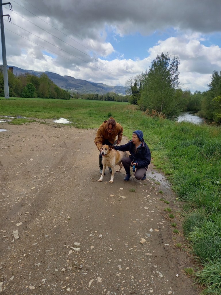 Voici le départ de Leïko qui était arrivé la veille au refuge. Sa maîtresse a téléphoné à la mairie de Saint-Amans Valtoret qui l’a prévenue que son chien était au refuge. Quelle effusion de joie ! Maintenant, vite, à la maison !