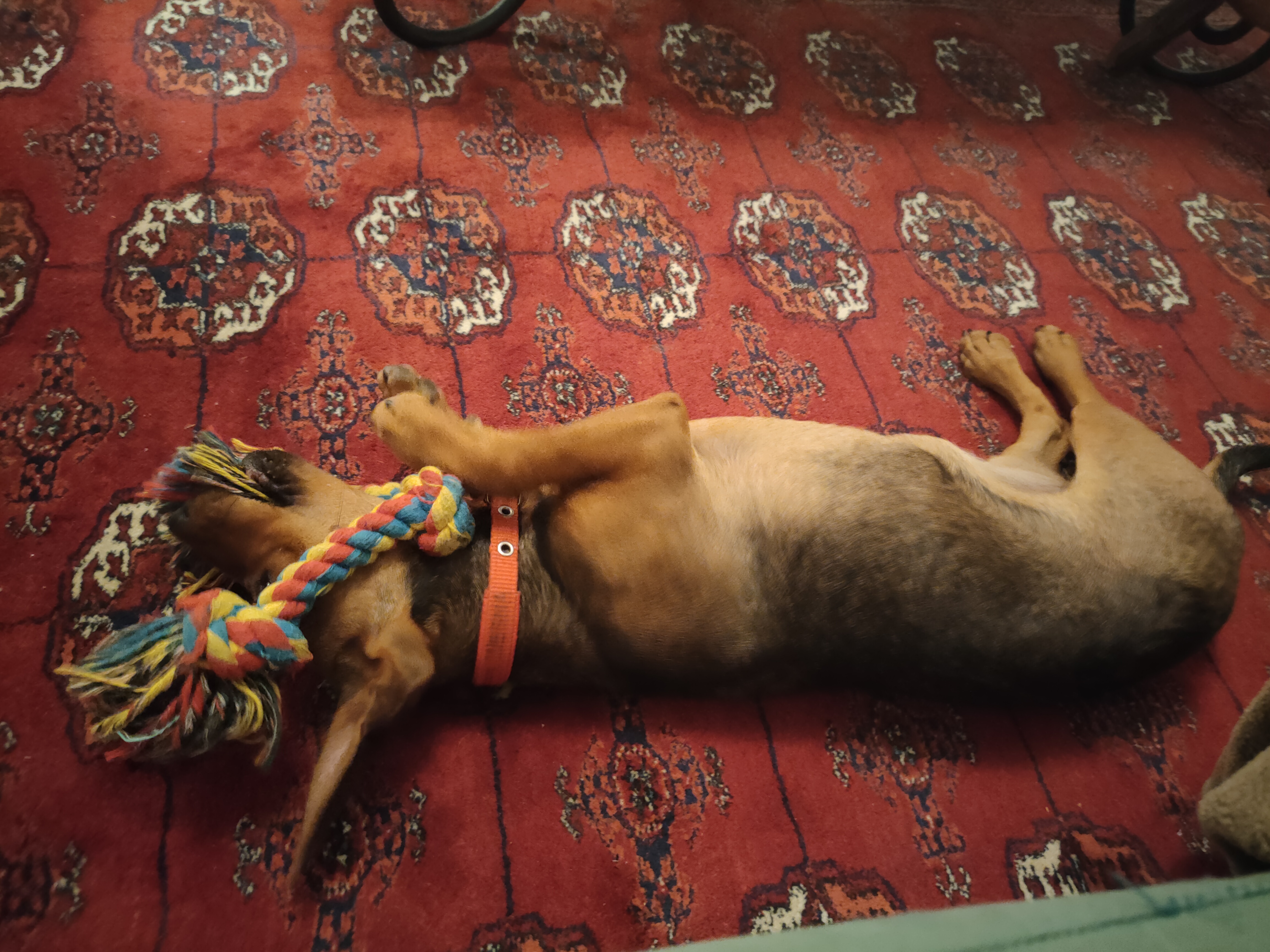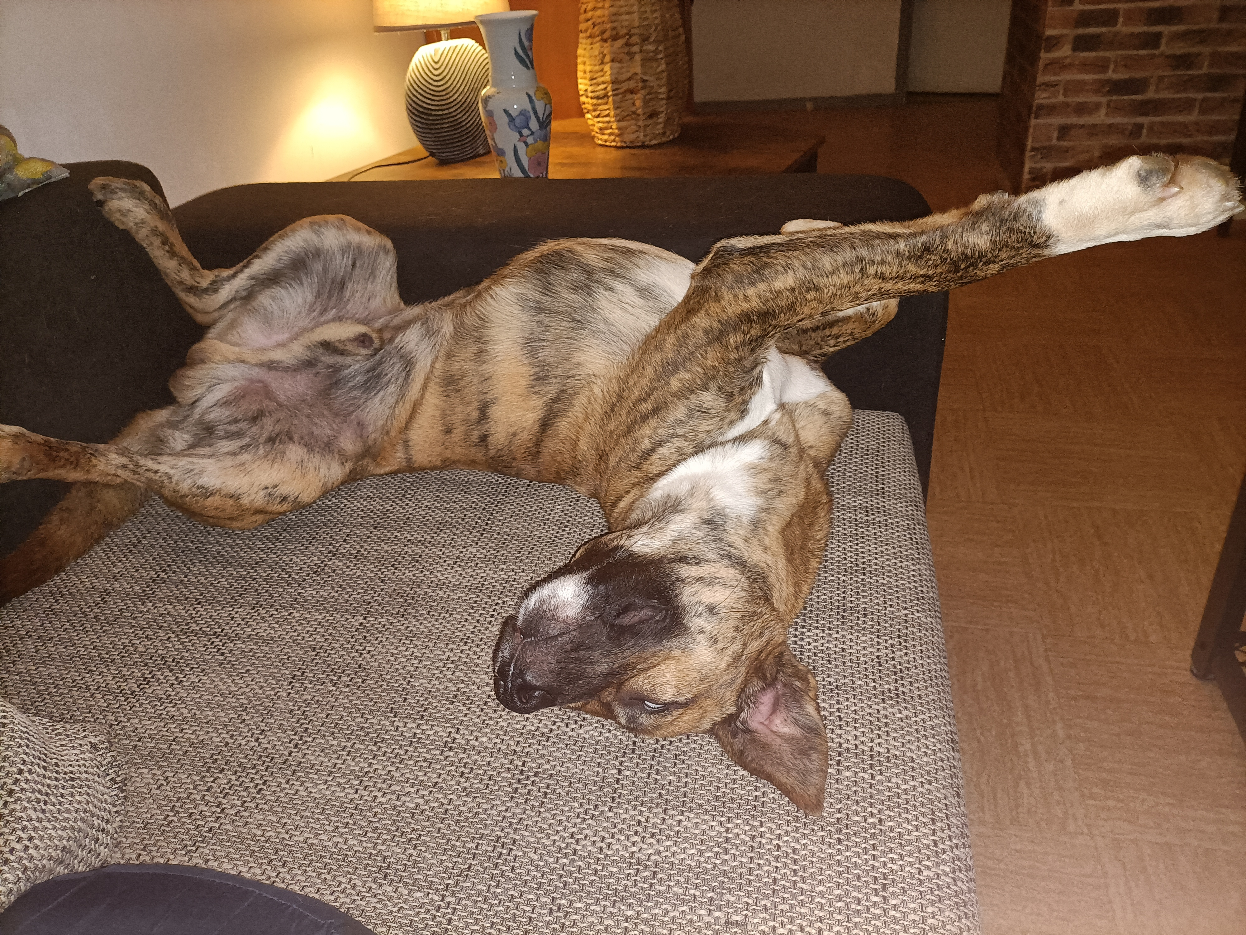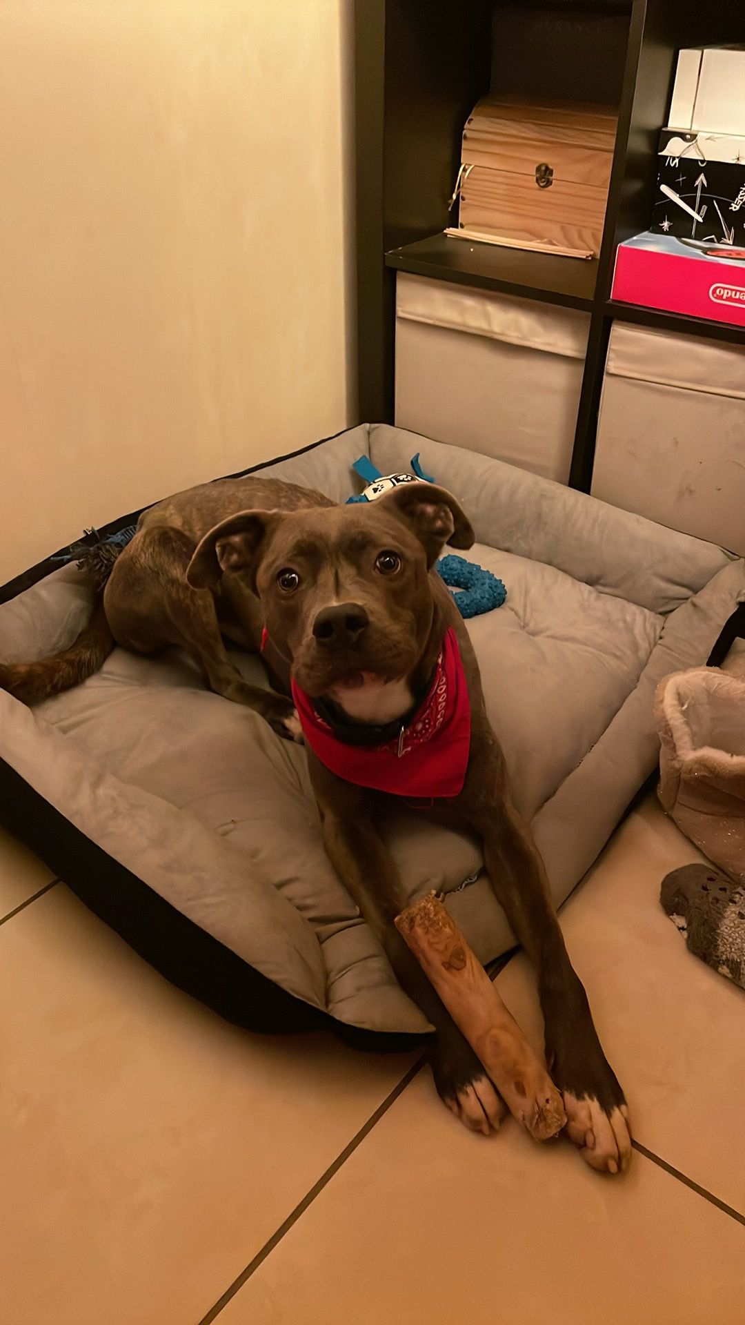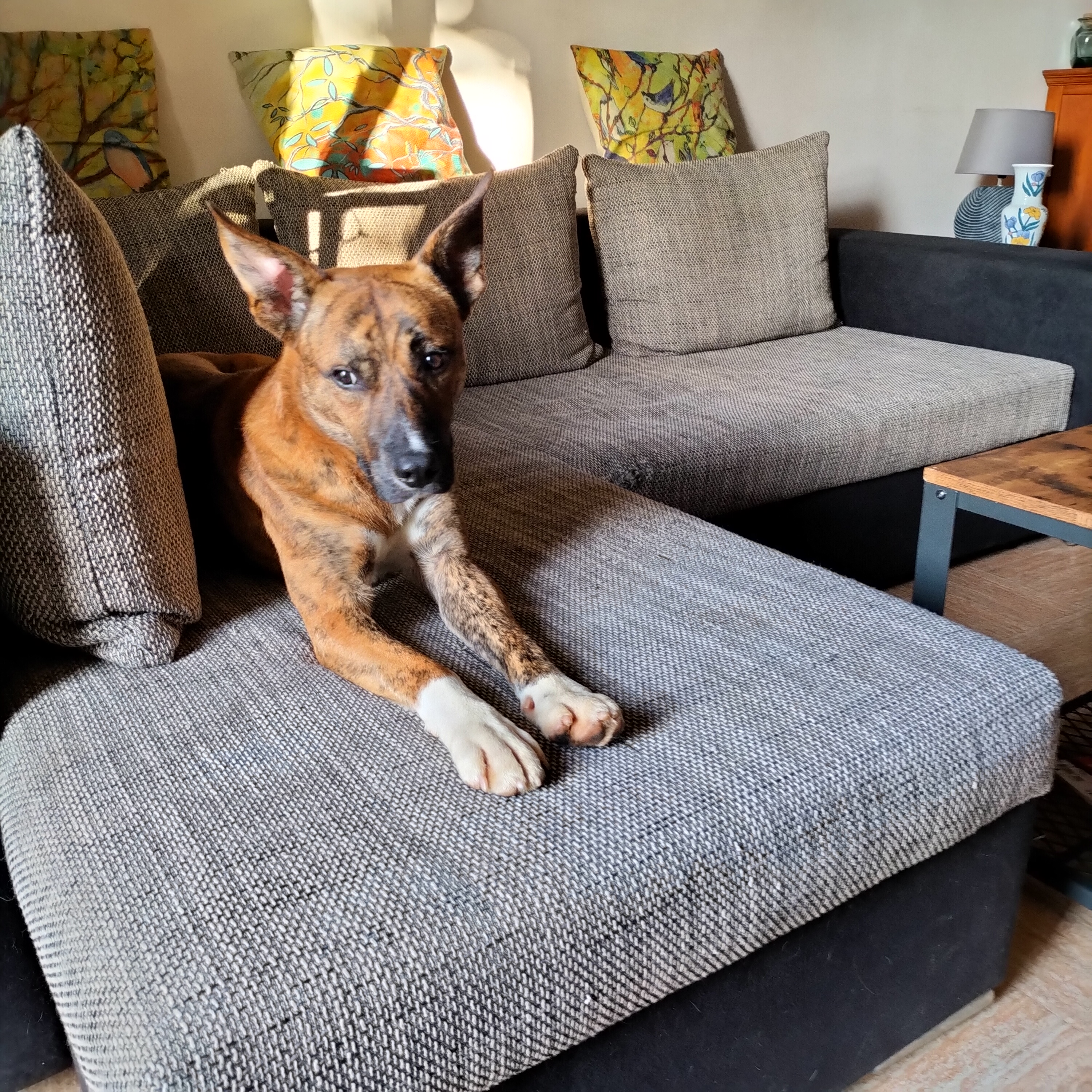 Pepsi a bien grandi depuis son adoption en mars 2024 ! Pepsi se porte bien et comble de bonheur ses maîtres, tous les jours ou presque