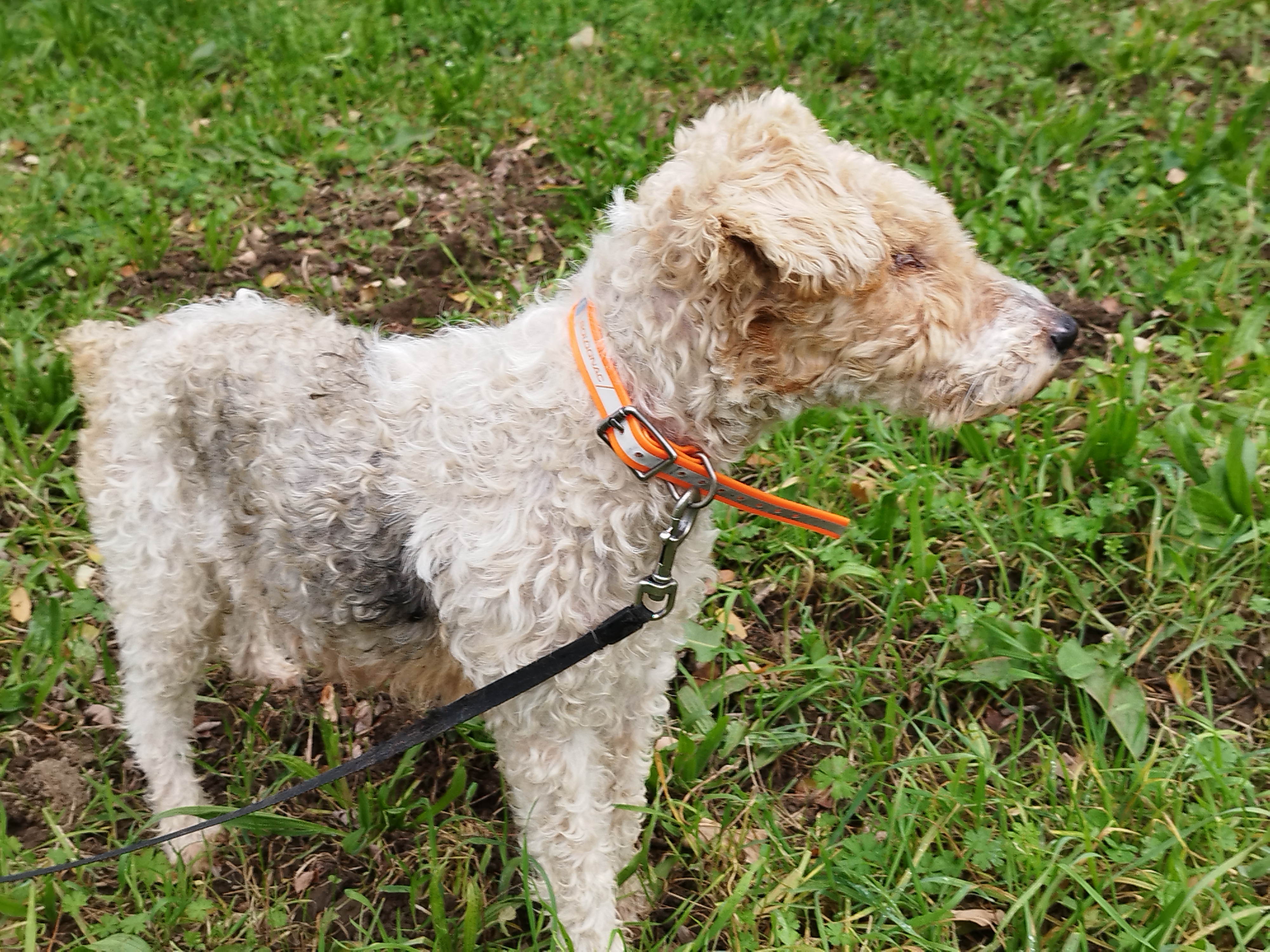 Rita est une chienne Fox Terrier de 4 ans. Elle est calme, confiante, obéissante et se promène tranquillement. Elle ne s’entend pas avec tous ses congénères.