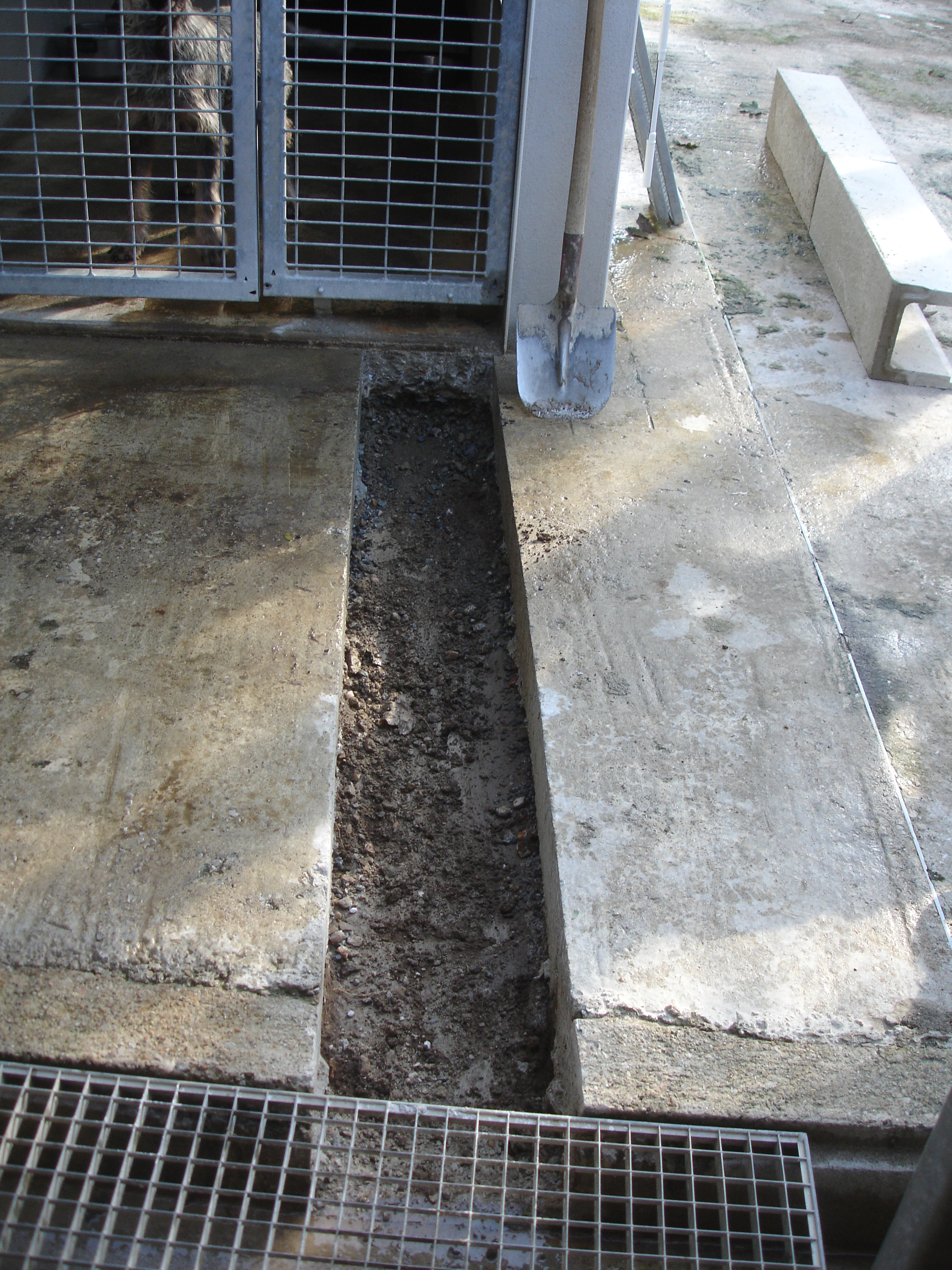 L’équipe maçonnerie de la mairie d’Aussillon est venue mercredi pour mettre en place une rigole d’évacuation des eaux des nouveaux box de la cour. Elle en a aussi profité pour faire deux saignées dans une margelle afin que l’eau s’évacue plus facilement et ne stagne pas dans la cour. Merci beaucoup pour votre aide précieuse et efficace !