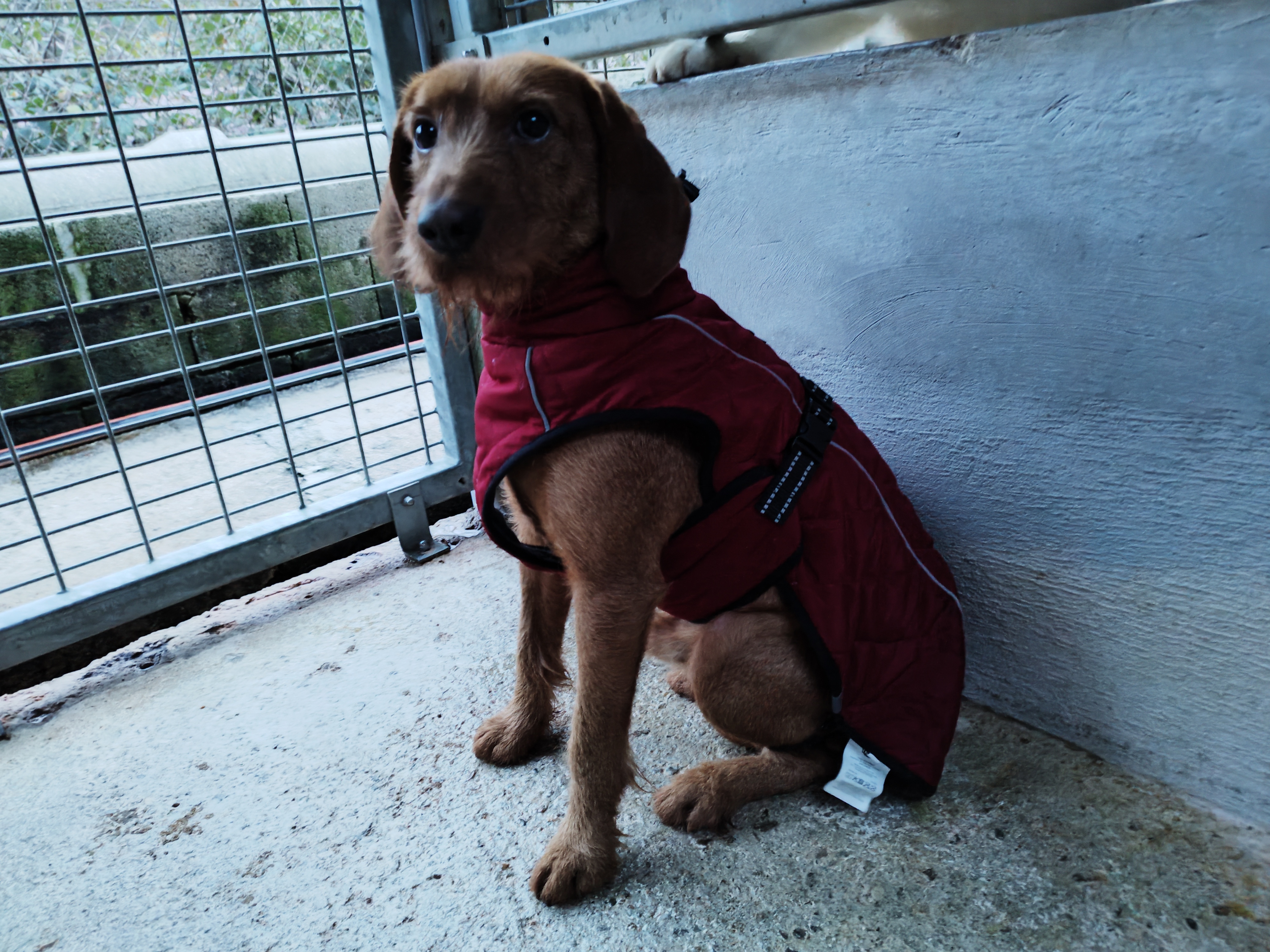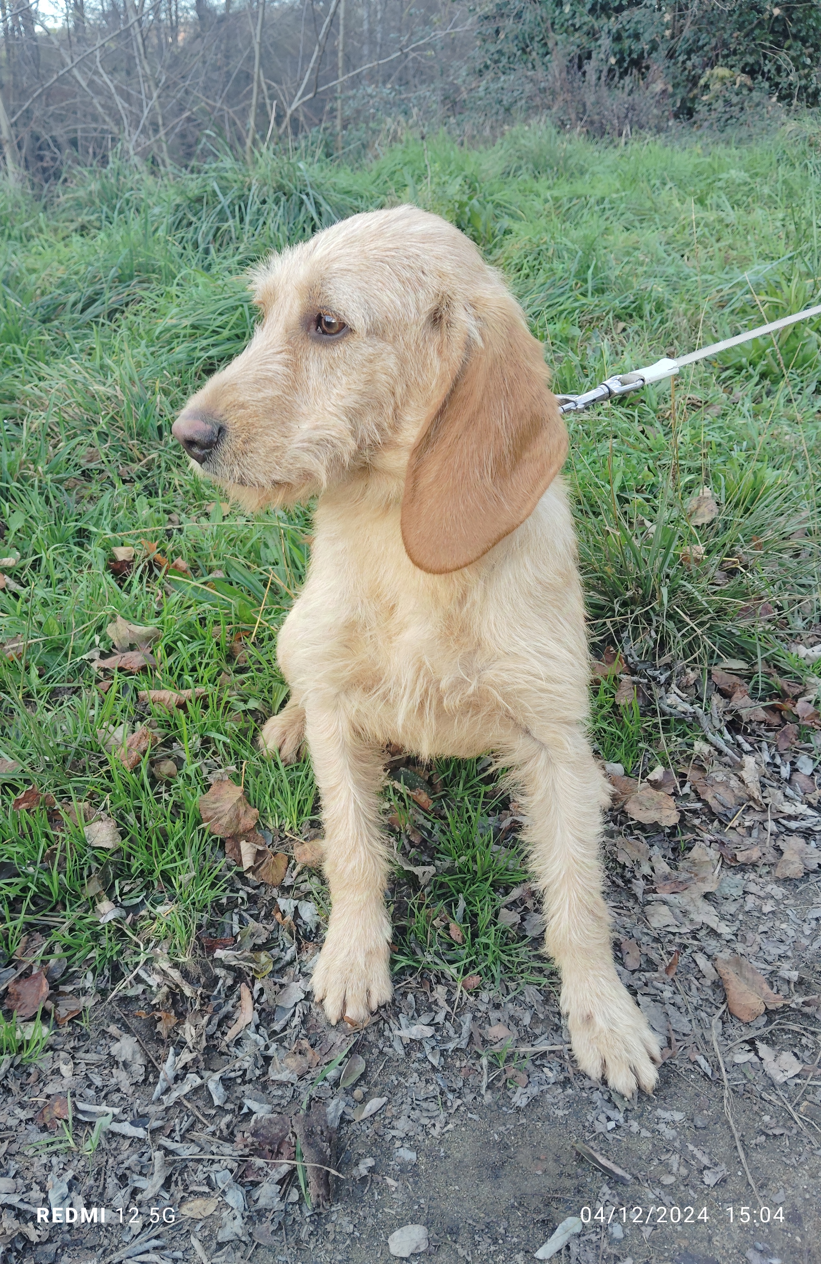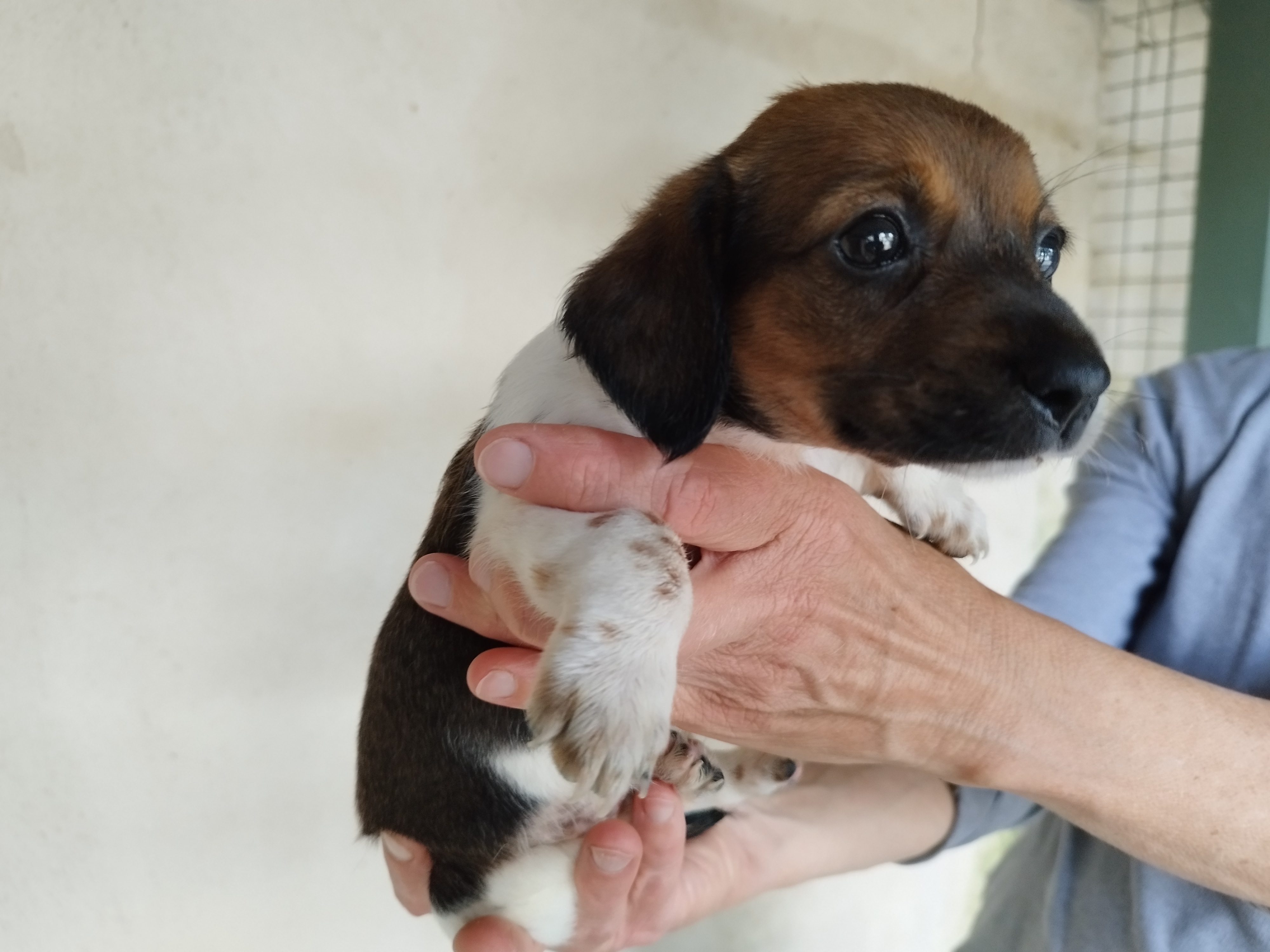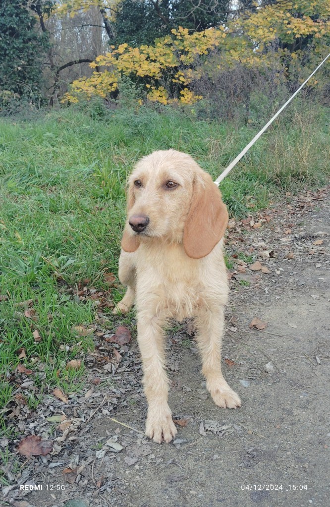 Rox est un chiot de 11 mois, croisé Basset Fauve de Bretagne. Il est gentil et se promène facilement. Rox est encore craintif dans son box ; il lui faut beaucoup de douceur.