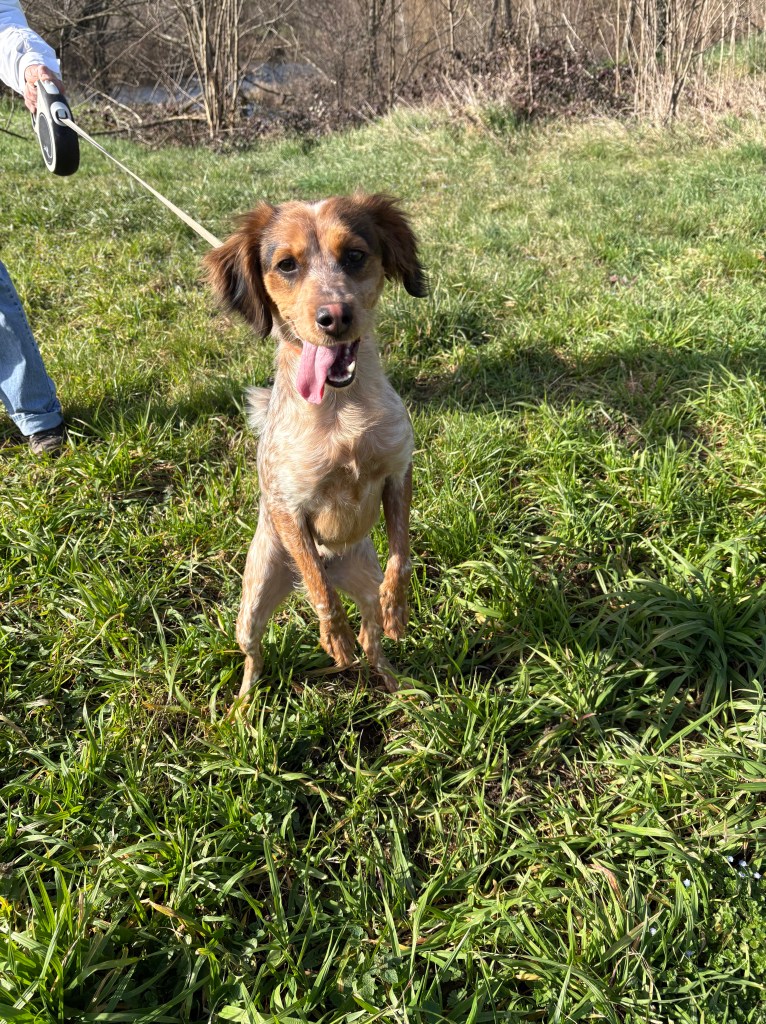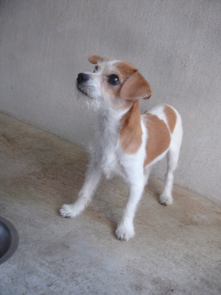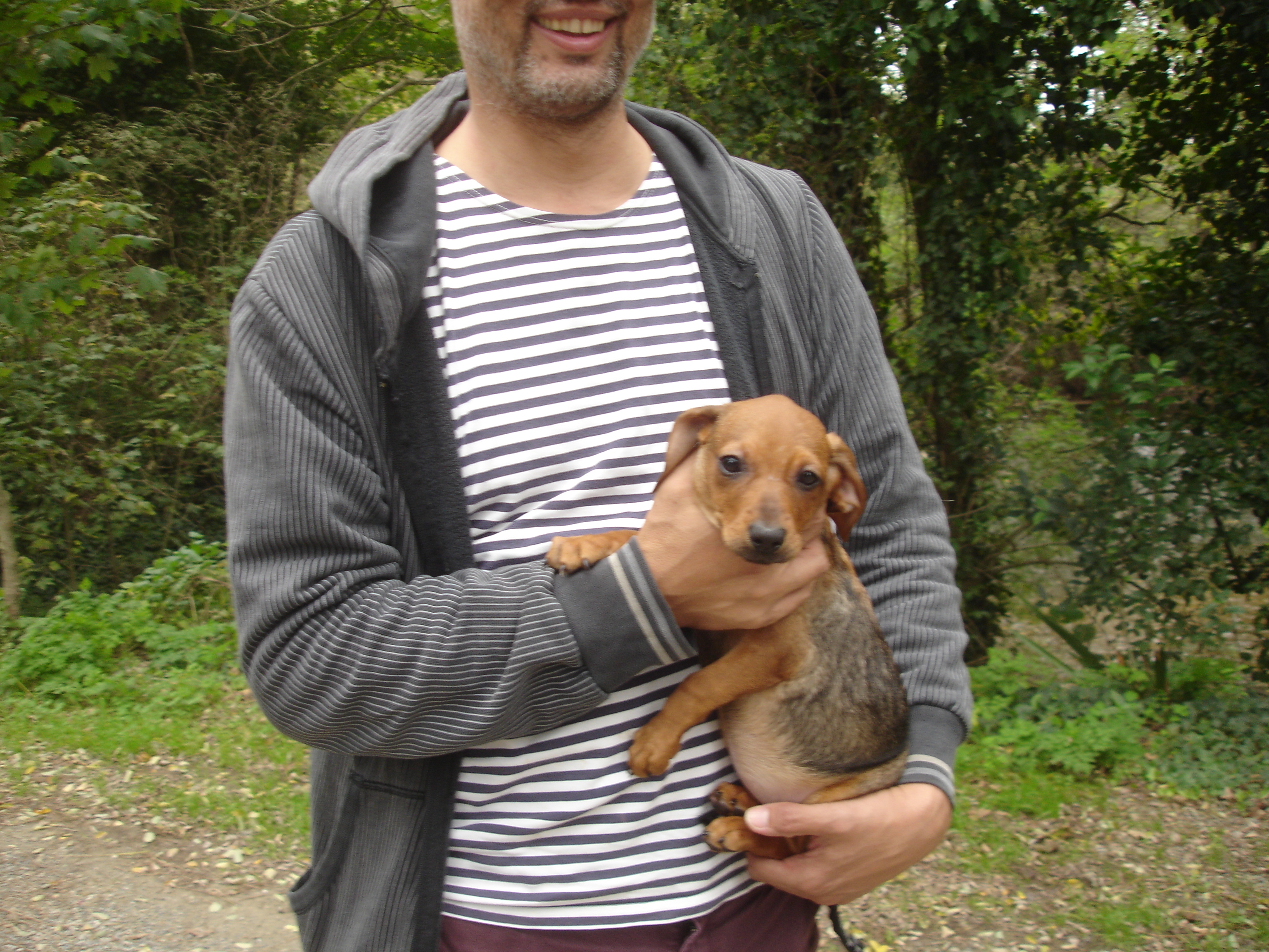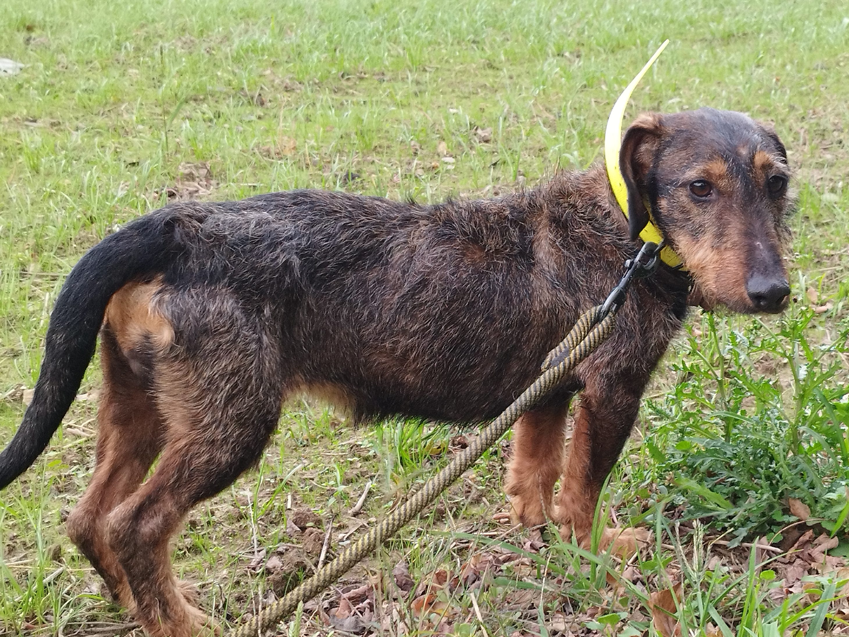 Rox est un chiot de 11 mois, croisé Basset Fauve de Bretagne. Il est gentil et se promène facilement. Rox est encore craintif dans son box ; il lui faut beaucoup de douceur.