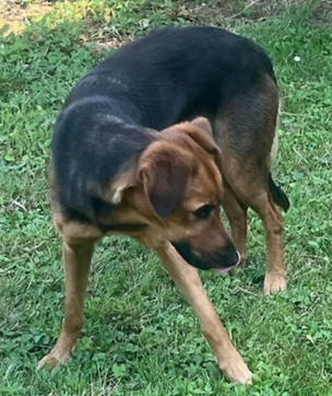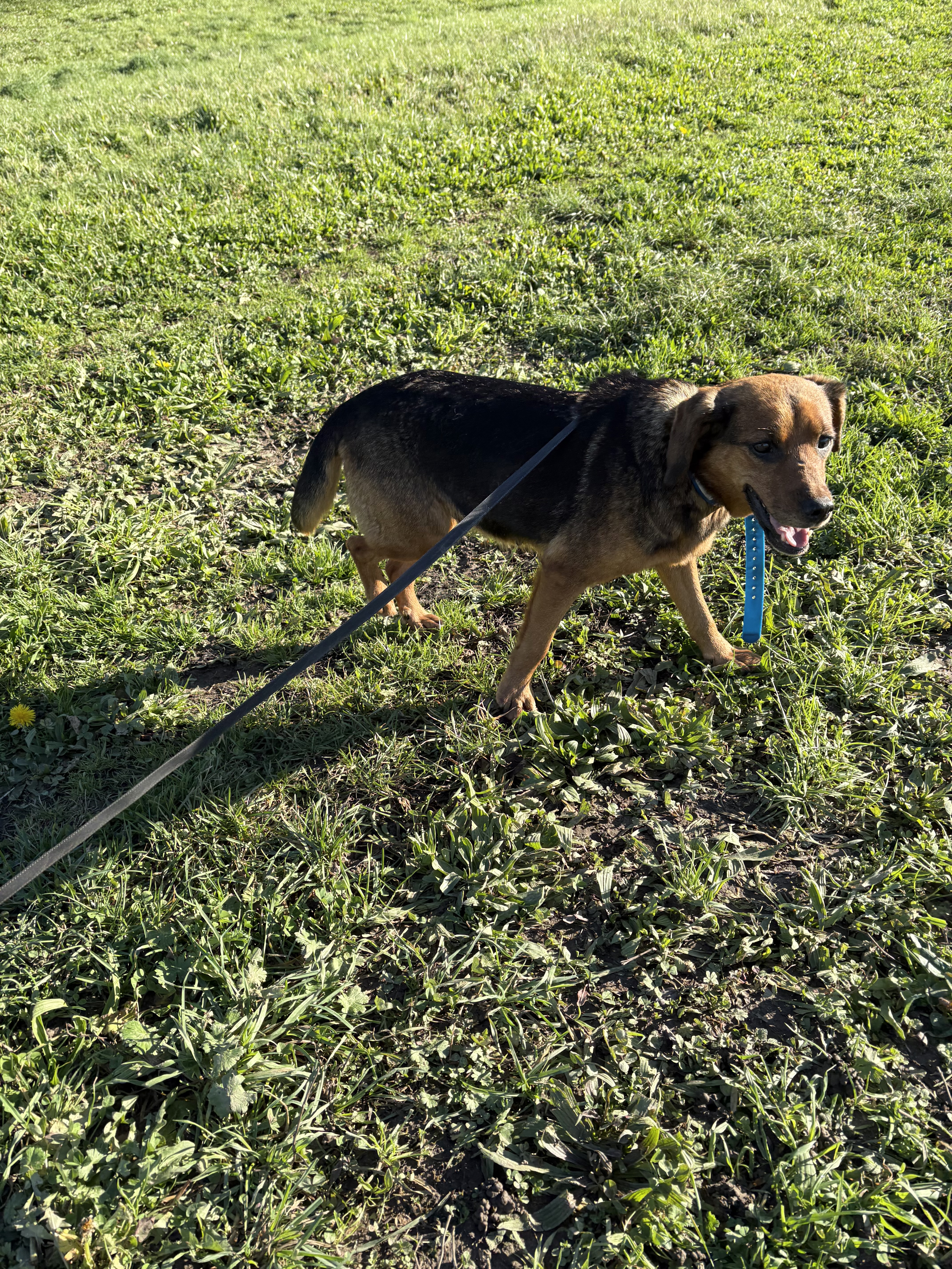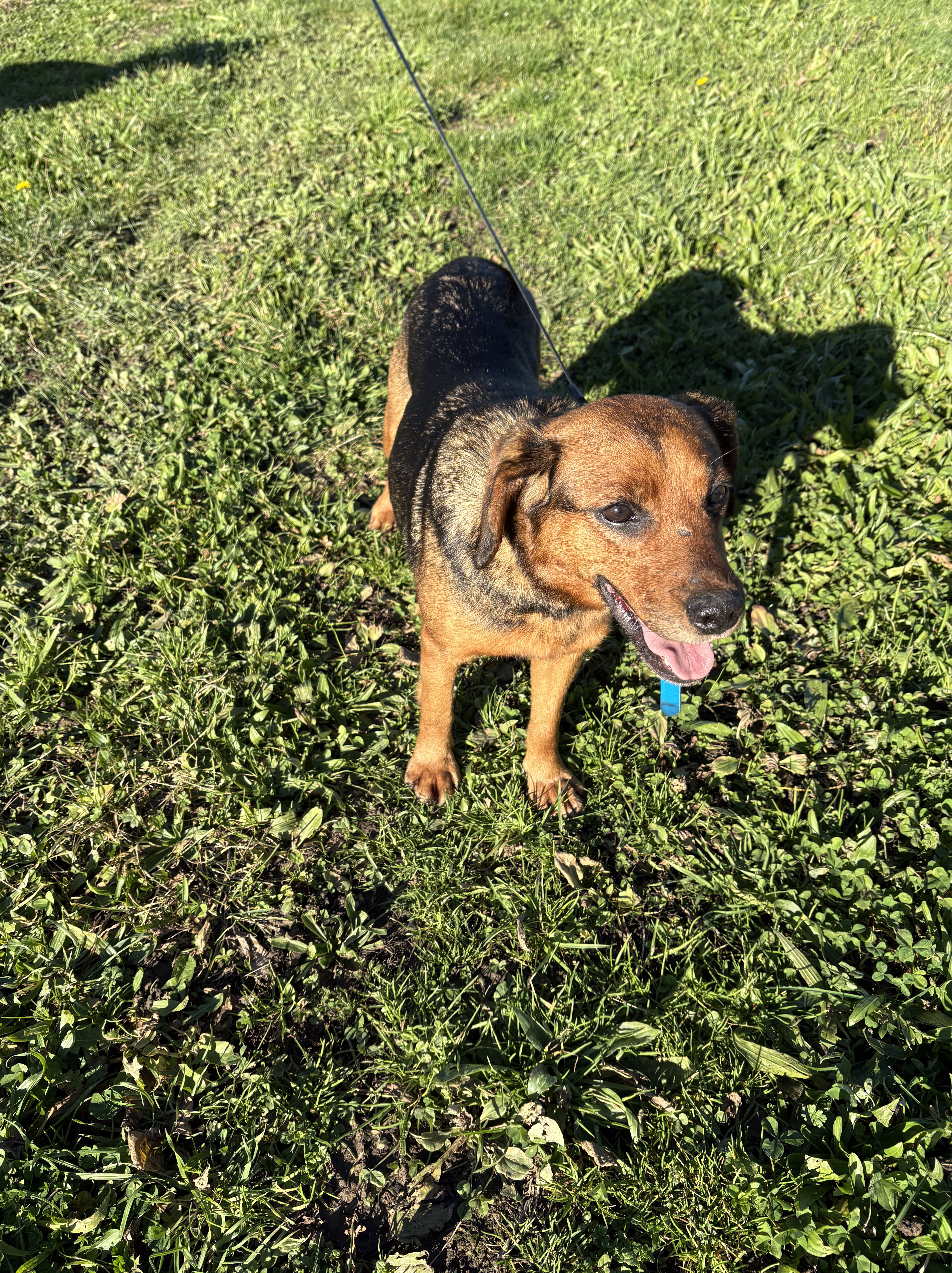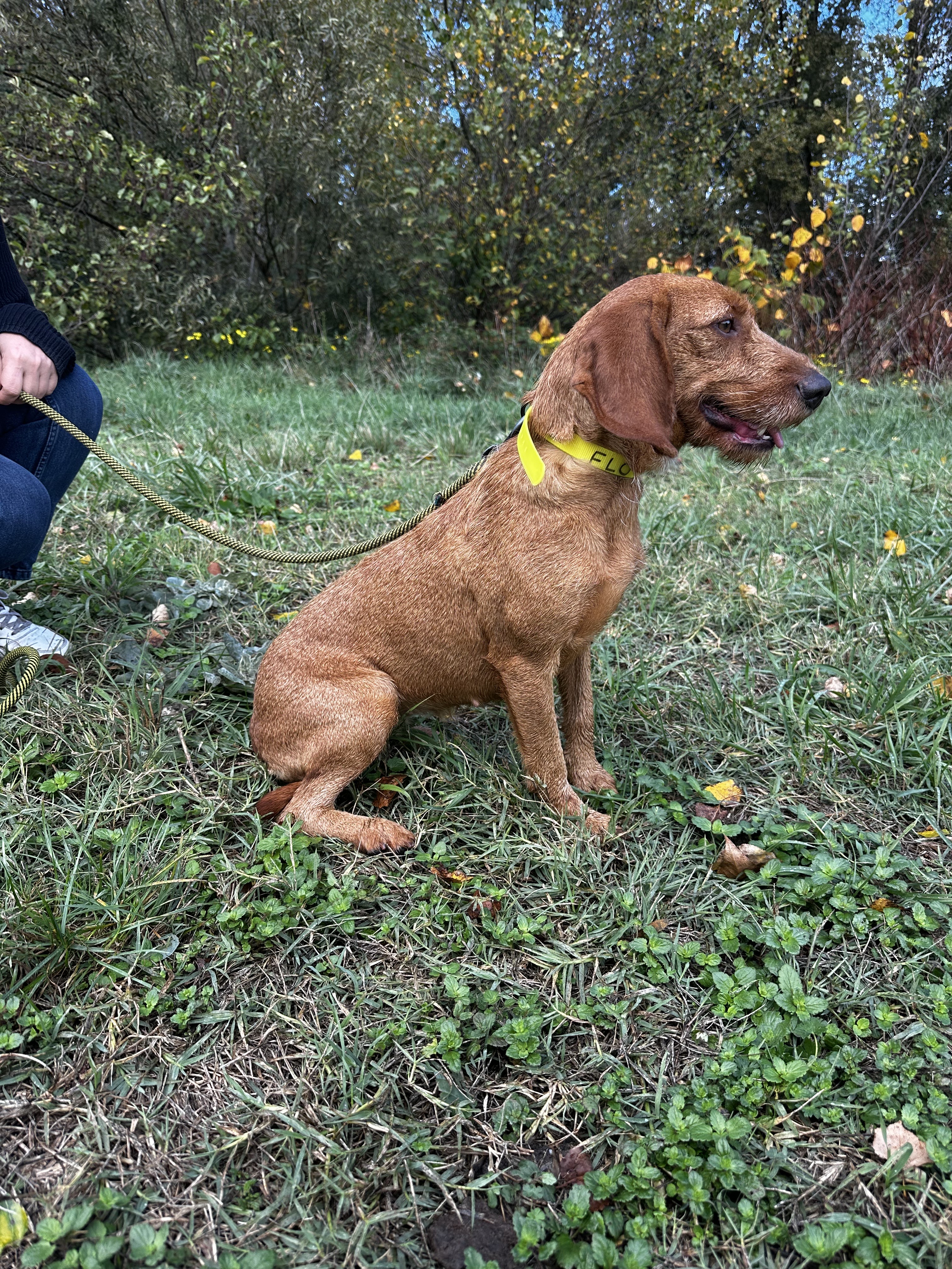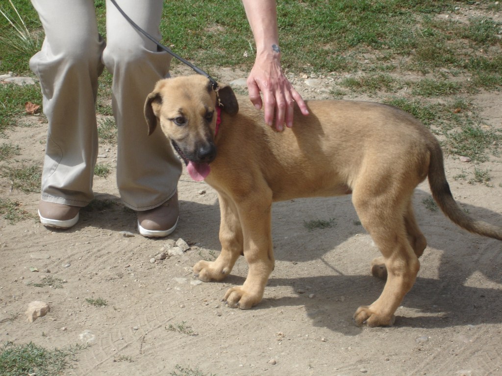Rox est un chiot de 11 mois, croisé Basset Fauve de Bretagne. Il est gentil et se promène facilement. Rox est encore craintif dans son box ; il lui faut beaucoup de douceur.