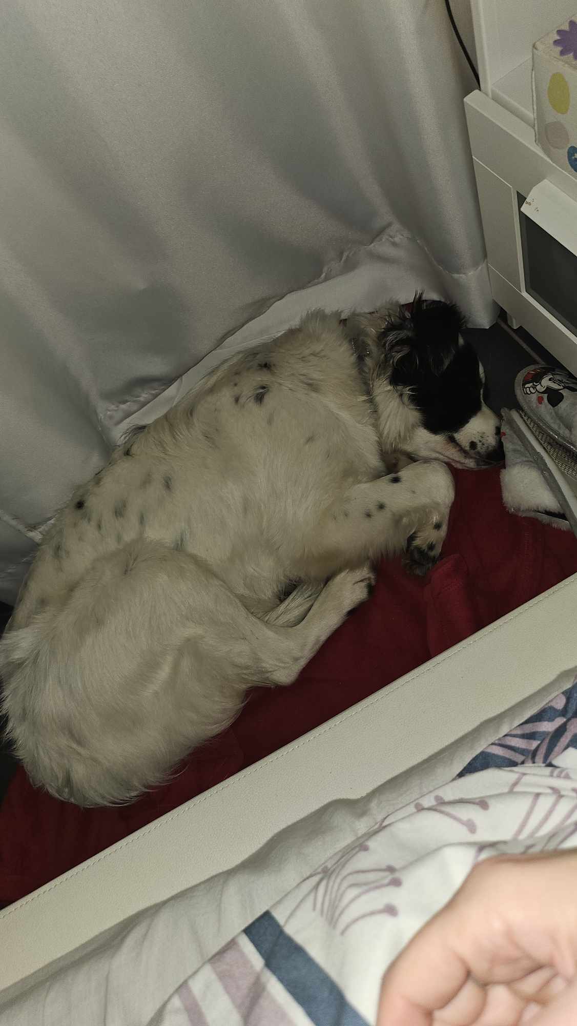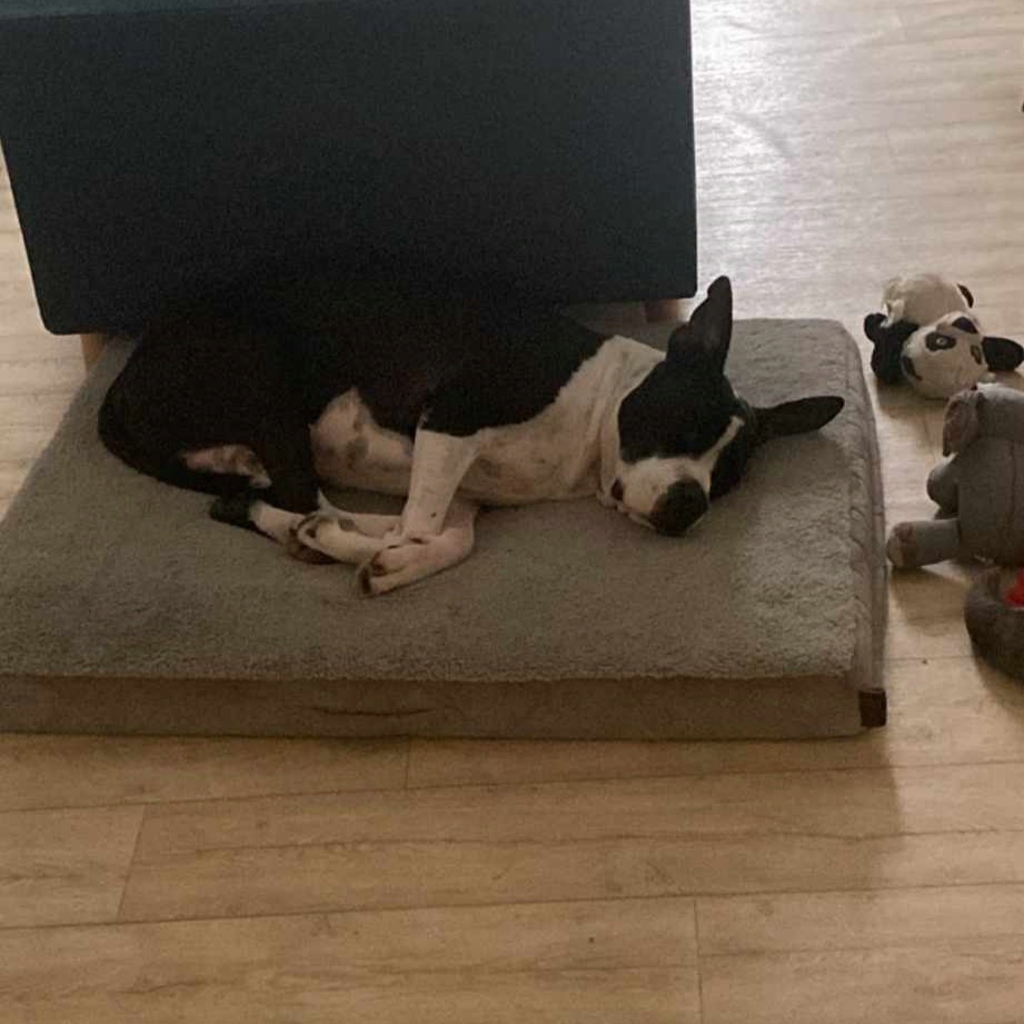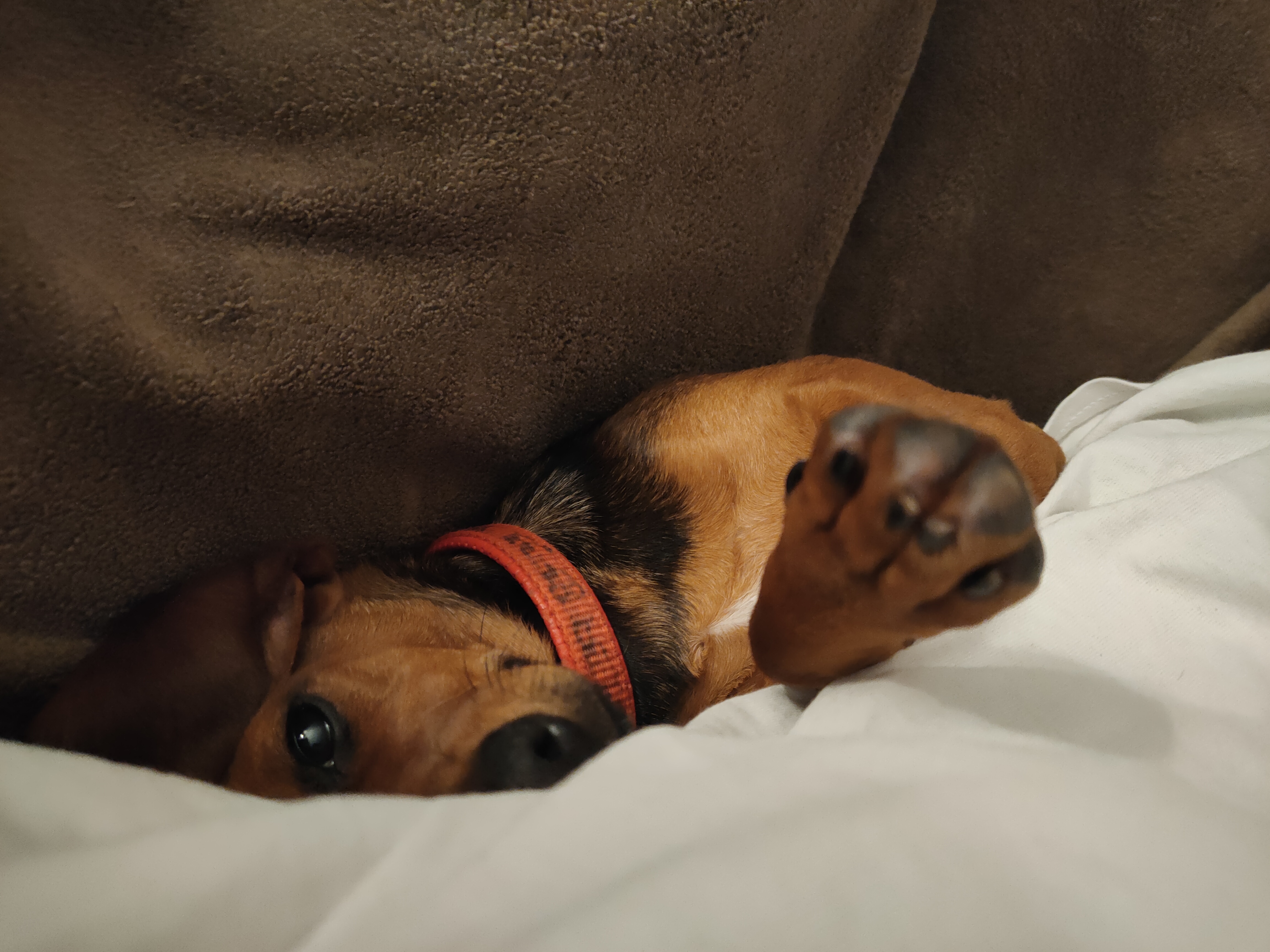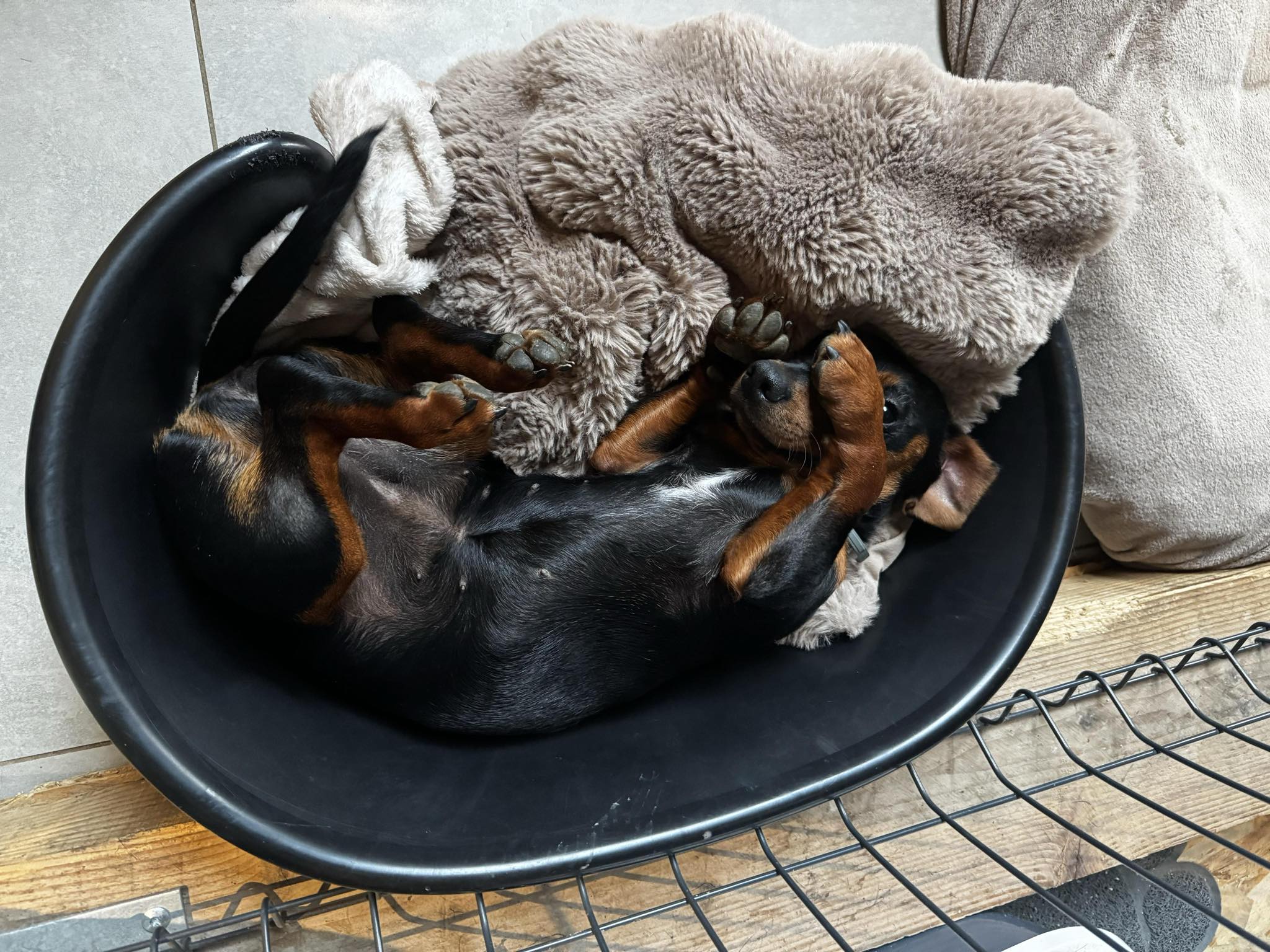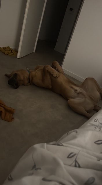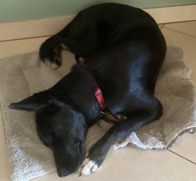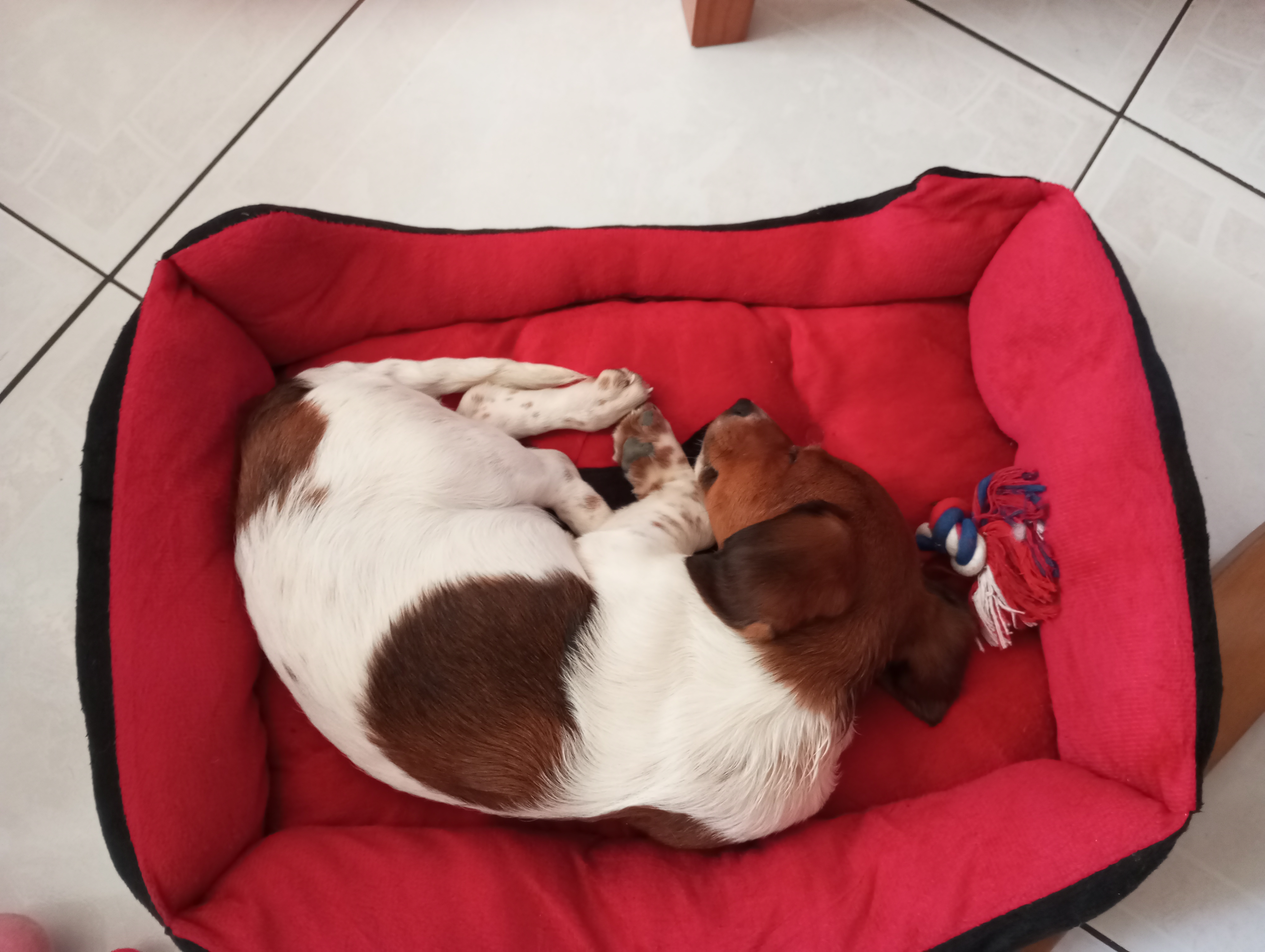 Le jeune Rox ne sera pas resté longtemps au refuge ! Tout se passe bien, il a même le droit de dormir avec son maître ! Quel veinard !