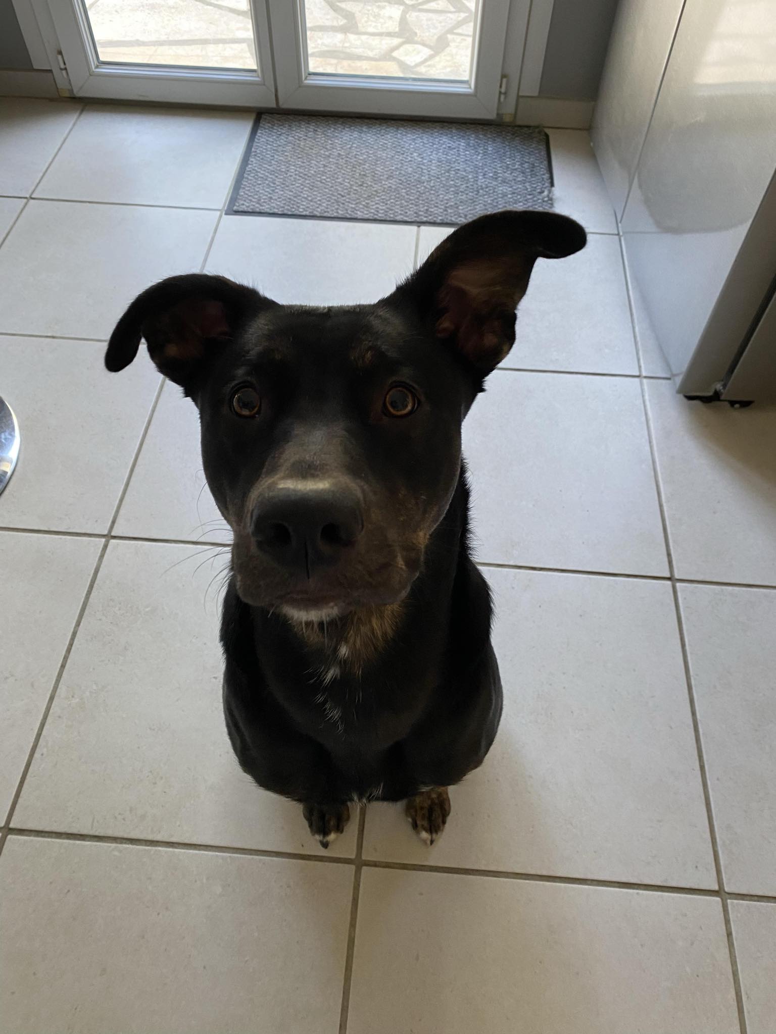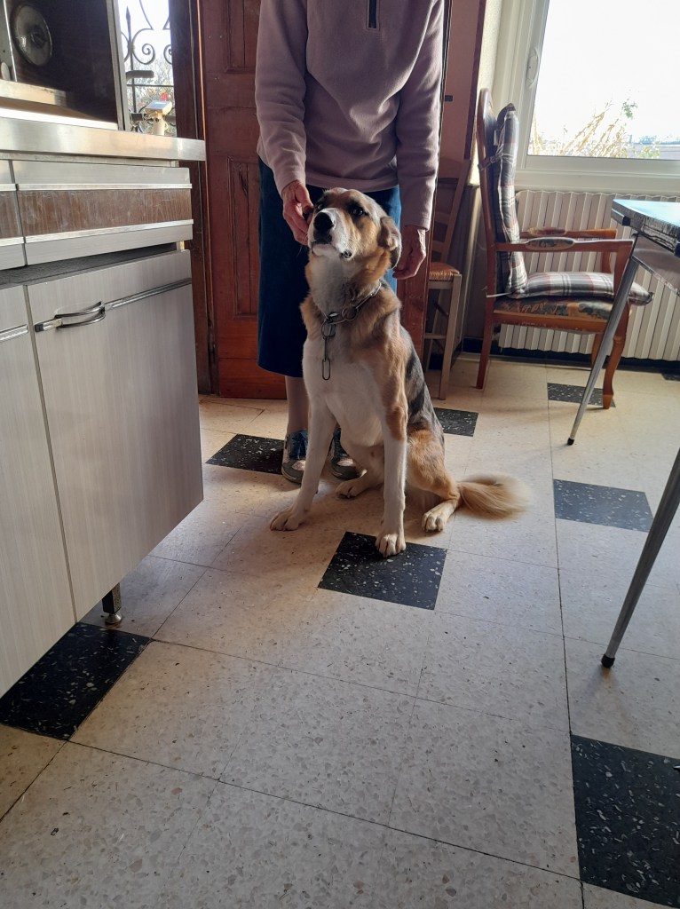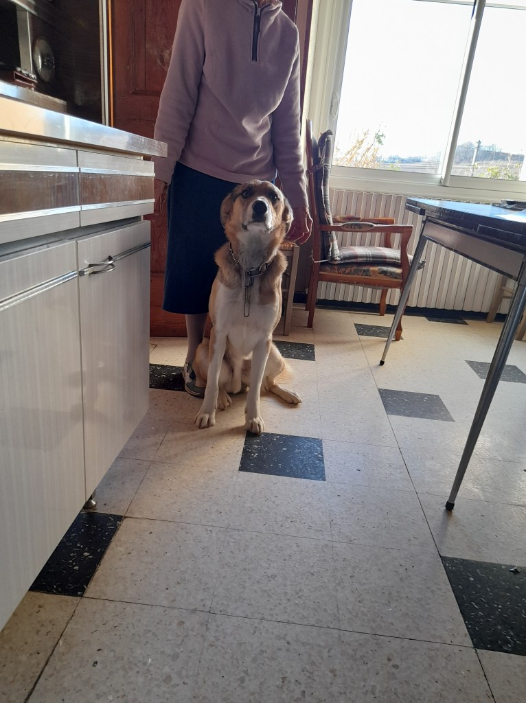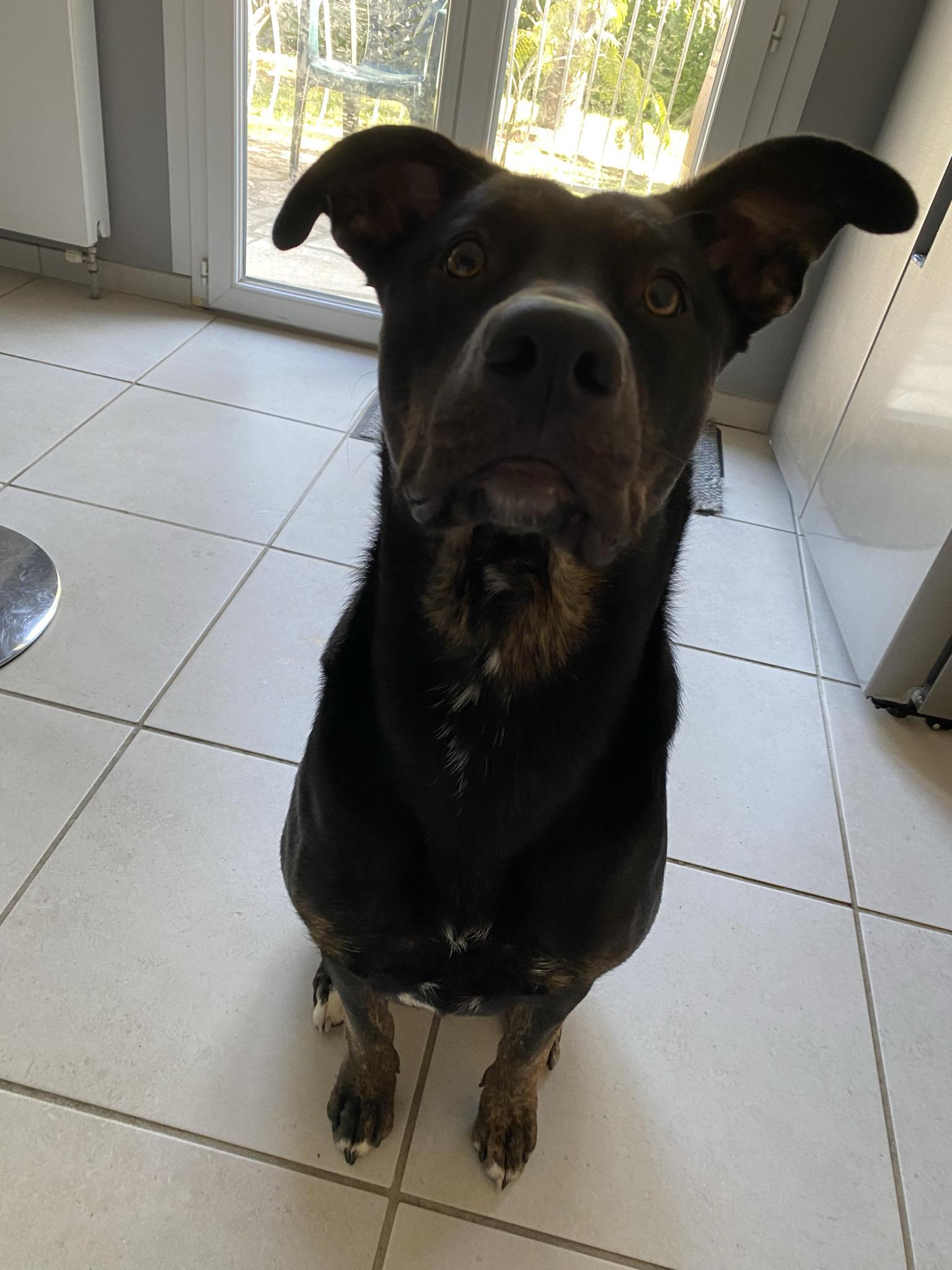 Nous attendions impatiemment des nouvelles de Nikita ! Elle va très bien, un amour, juste un peu têtue parfois ! Elle fait un peu de la protection de ressources et montre un peu les dents dès qu’un autre chien s’approche de trop près des membres de la famille ! Nikita est partie du refuge avec 18kg et en fait maintenant 22 ! Comme Madame boudait les croquettes, elle a droit à un savoureux mélange croquettes + alimentation ménagère. Et Madame adore ! La petite veinarde !