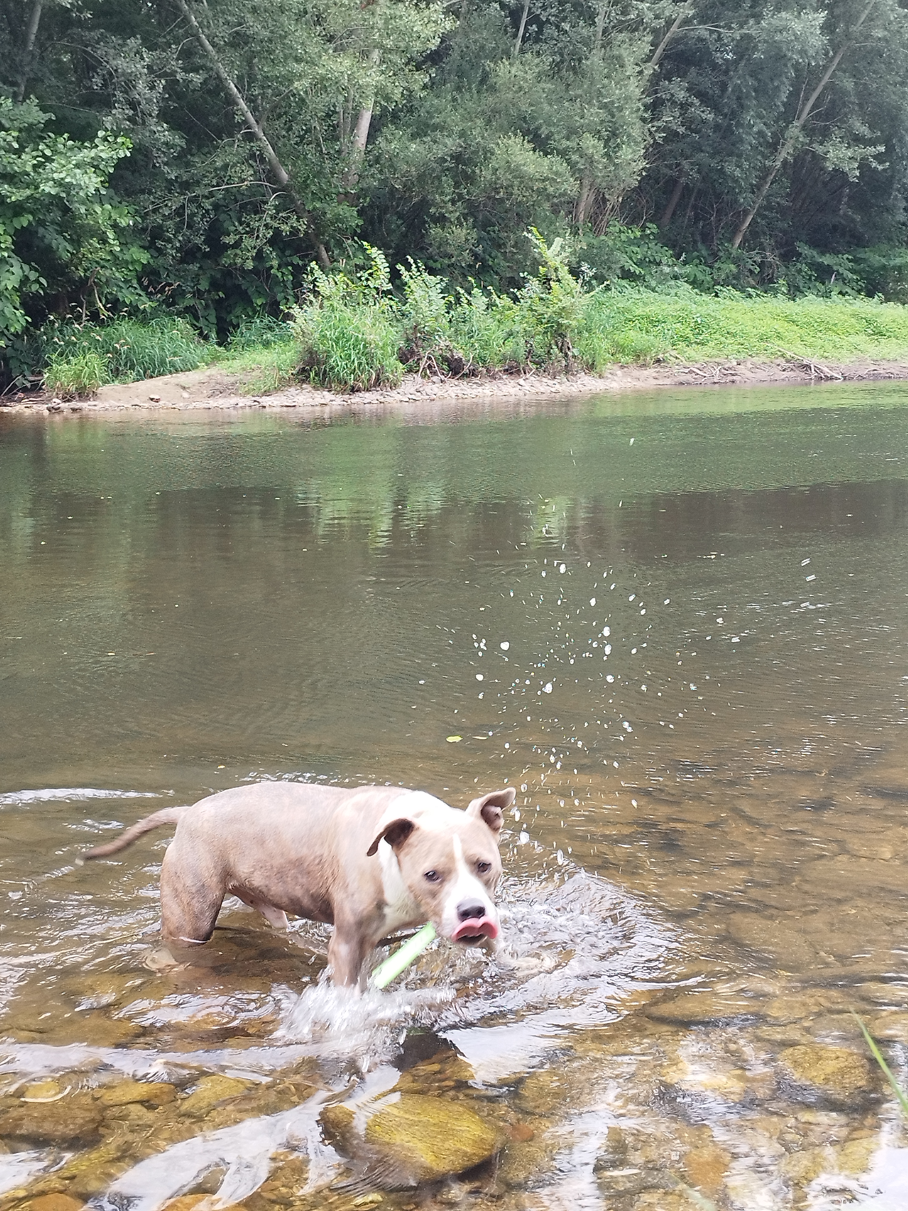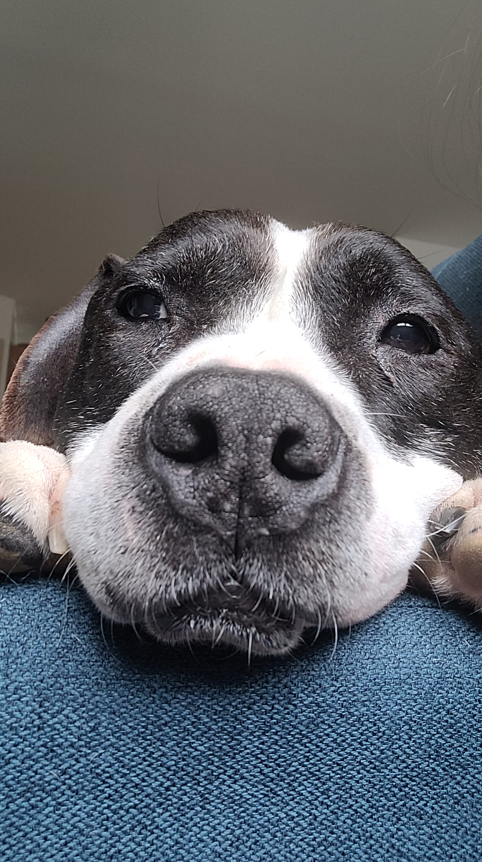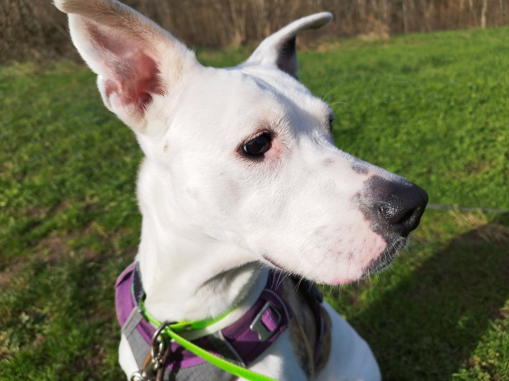Nous attendions impatiemment des nouvelles de Nikita ! Elle va très bien, un amour, juste un peu têtue parfois ! Elle fait un peu de la protection de ressources et montre un peu les dents dès qu’un autre chien s’approche de trop près des membres de la famille ! Nikita est partie du refuge avec 18kg et en fait maintenant 22 ! Comme Madame boudait les croquettes, elle a droit à un savoureux mélange croquettes + alimentation ménagère. Et Madame adore ! La petite veinarde !