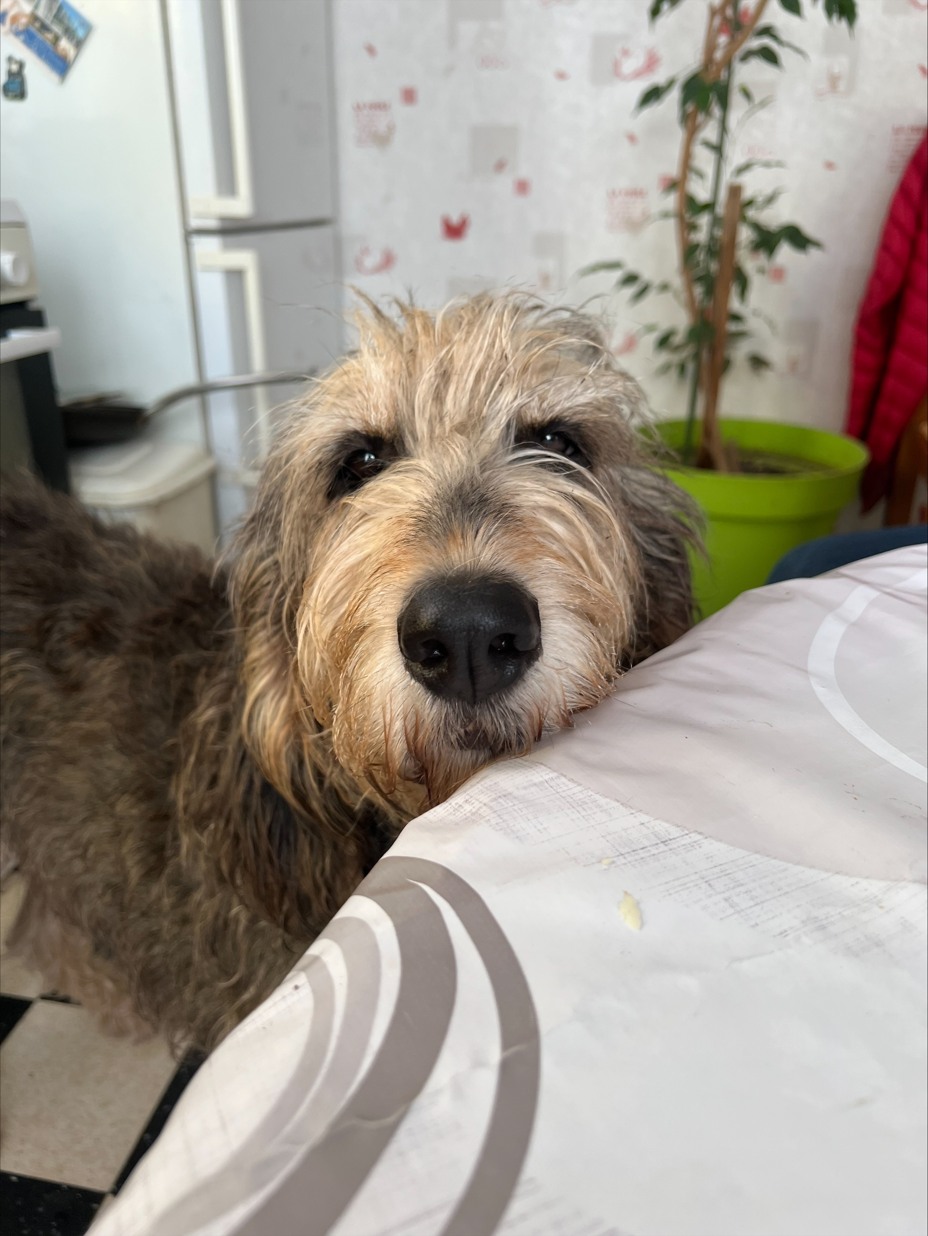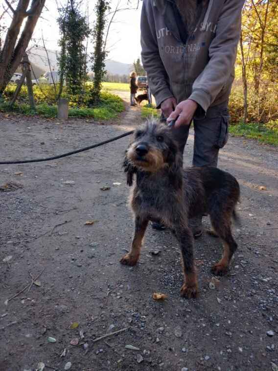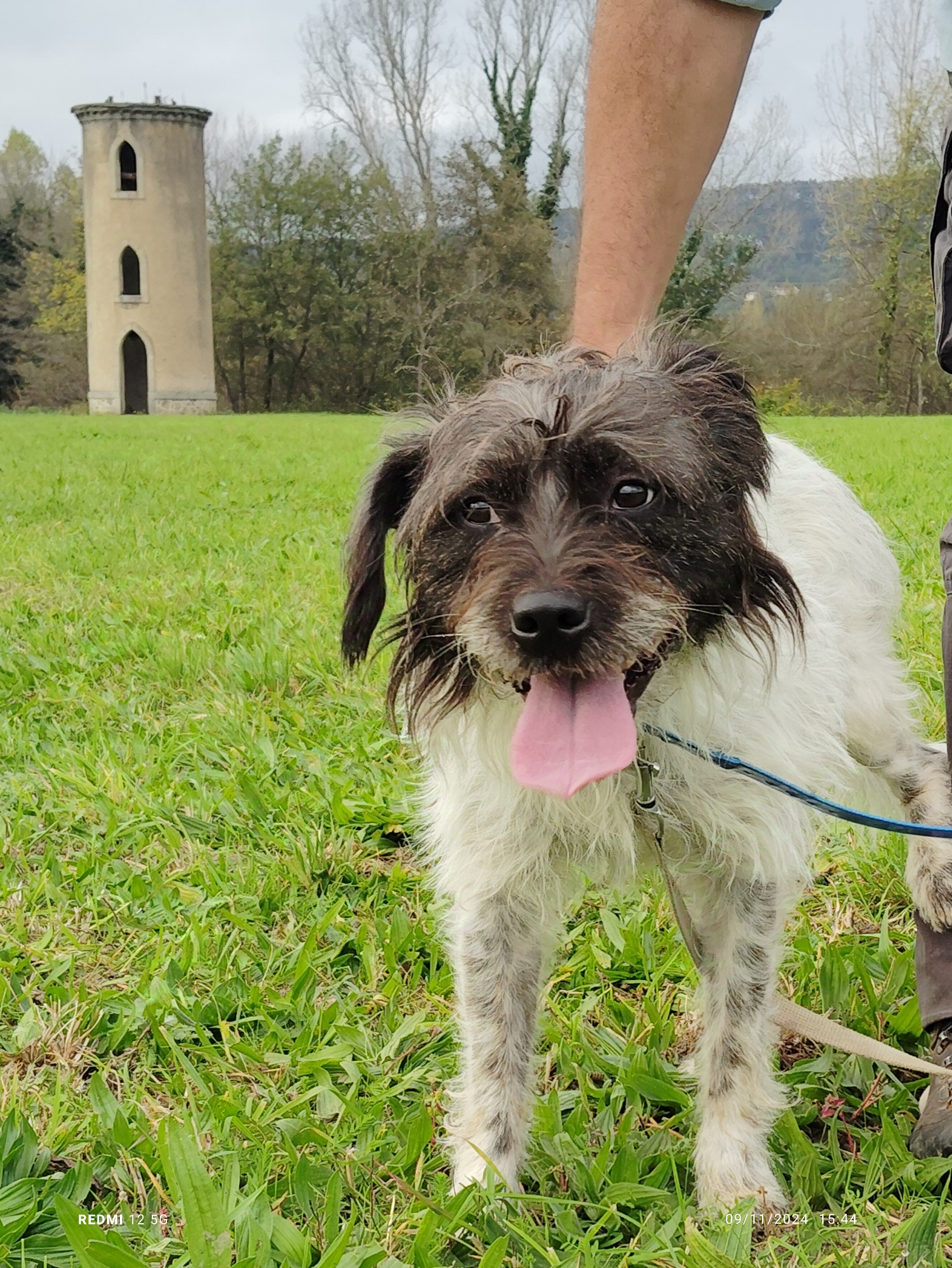 Mila est une jeune croisée Griffon (1,5 an), arrivée il y a quelques mois. Elle est gentille, sociable et se promène facilement.