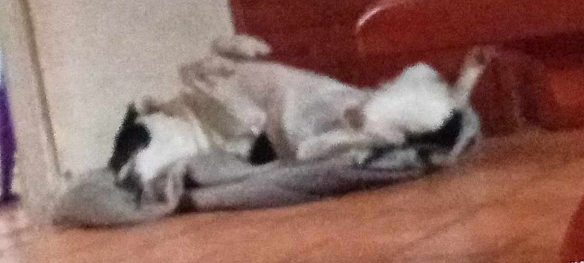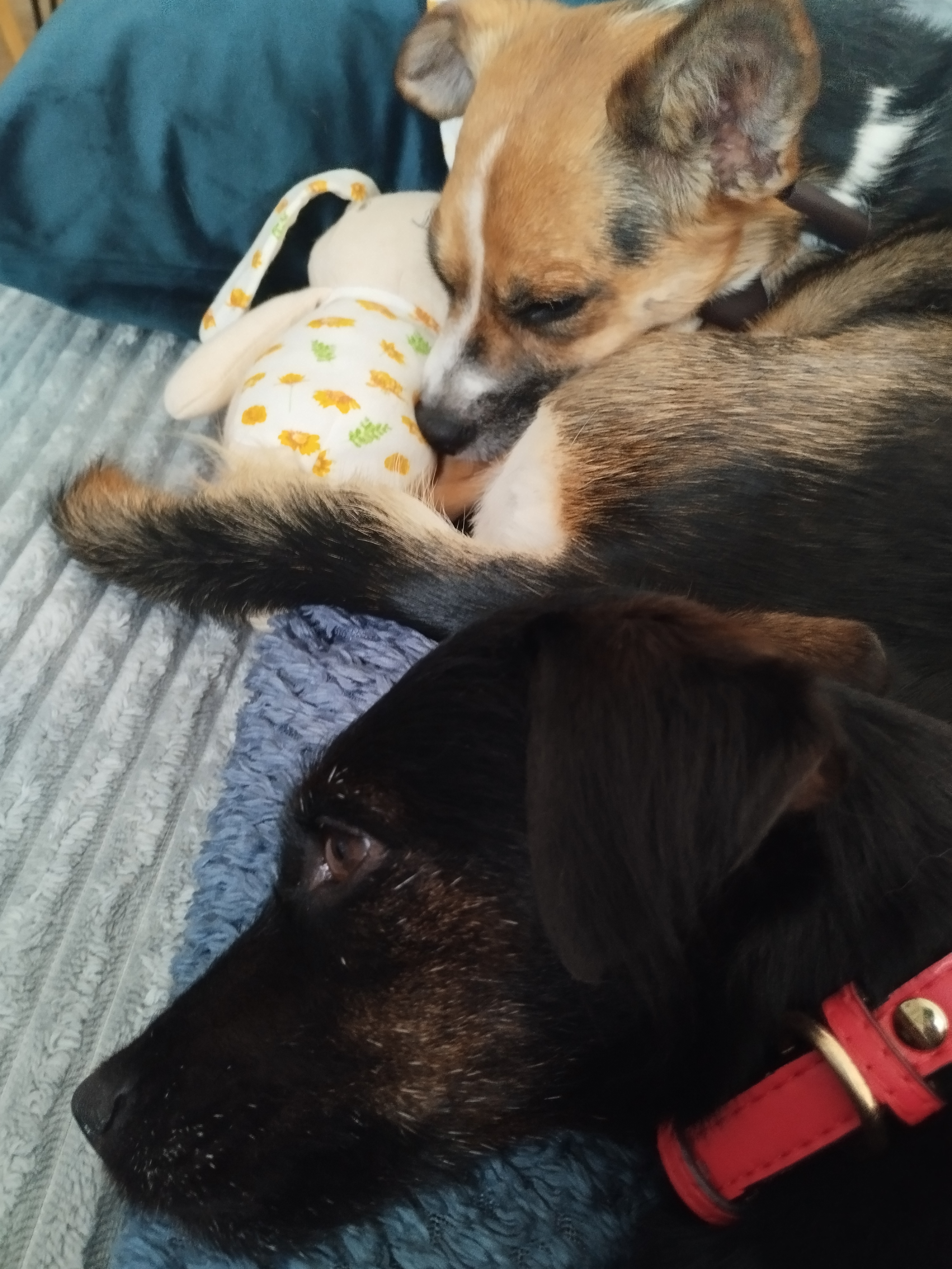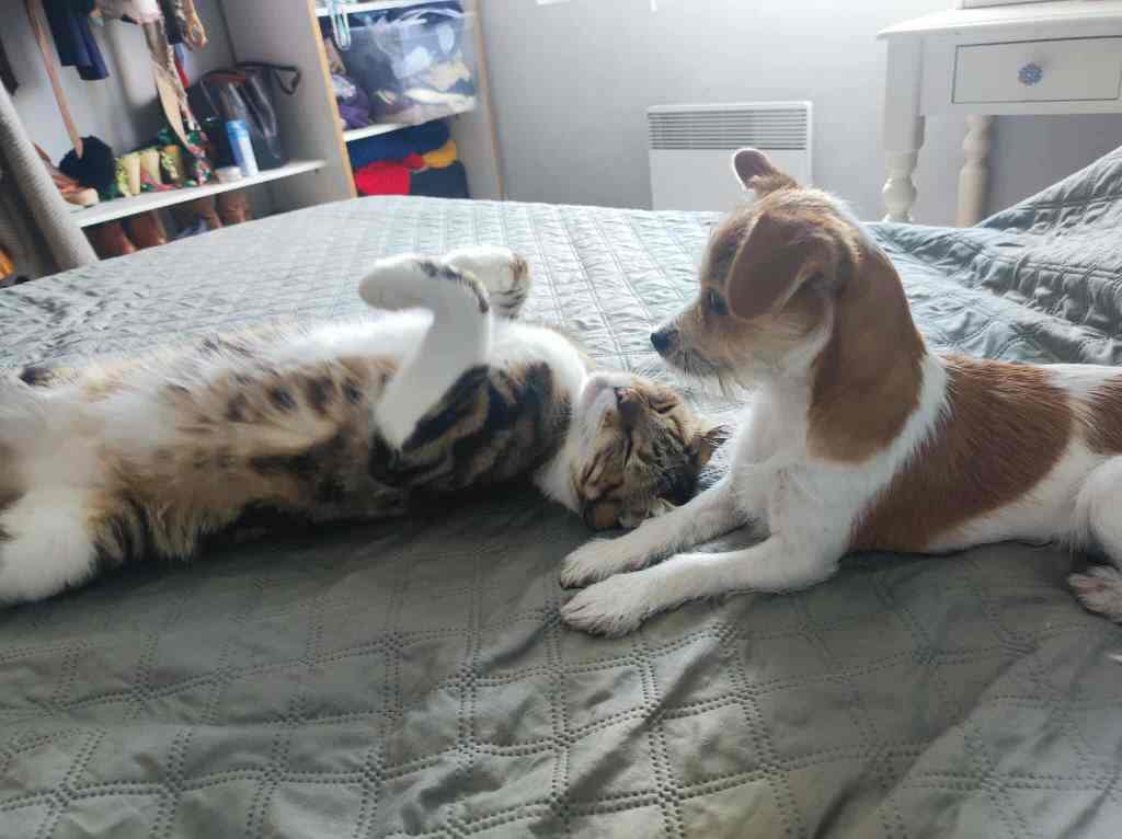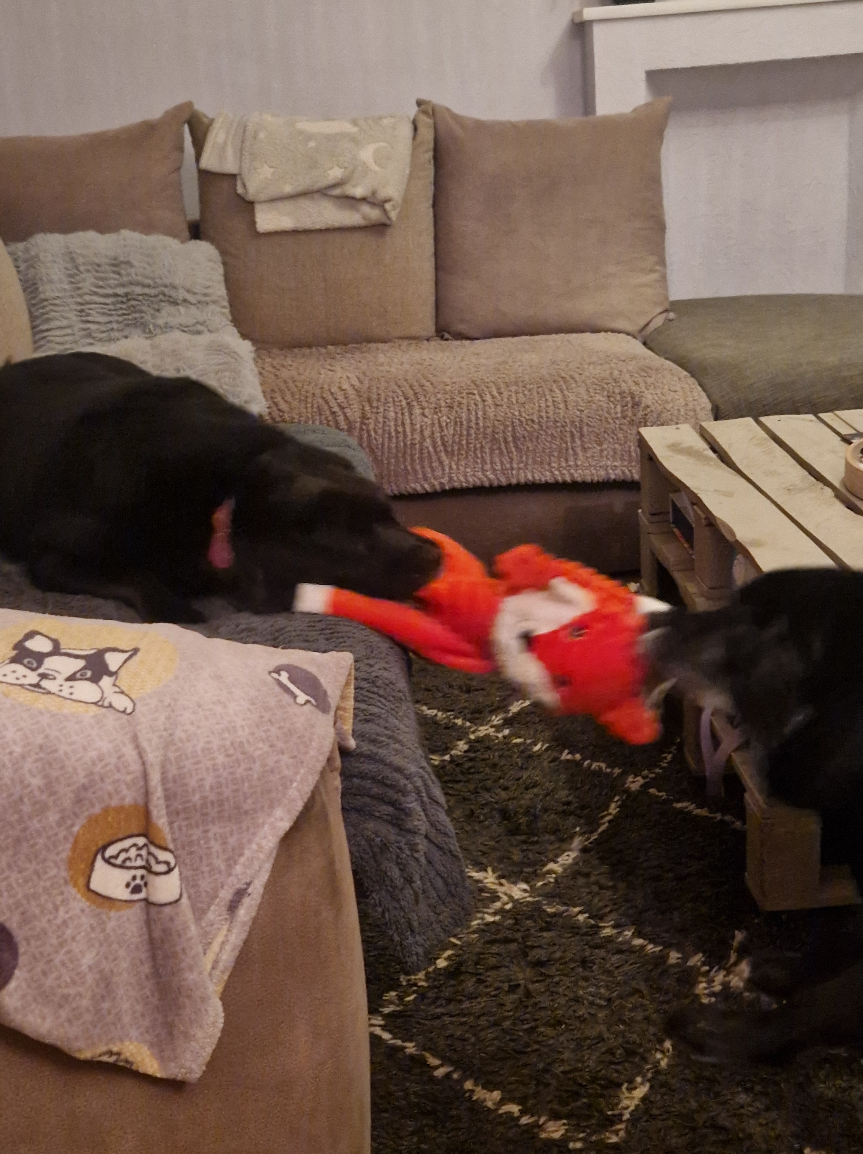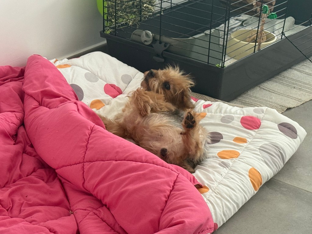 Quel bazar ! Après avoir joué et démonté les jouets, tout le monde se repose ! Bella et sa complice Téquila sont à l’origine de ce désordre ! Inséparables ces deux-là ! Jagger, Lola et Gaya ont surtout été spectateurs. Tout ce petit monde s’entend parfaitement bien, malgré les différences d’âge. Leurs points communs ? Ils viennent du refuge (sauf Gaya), sont très câlins, pots de colle et gourmands !