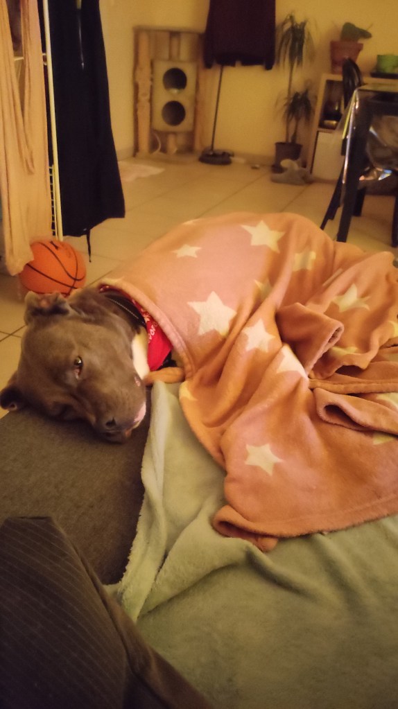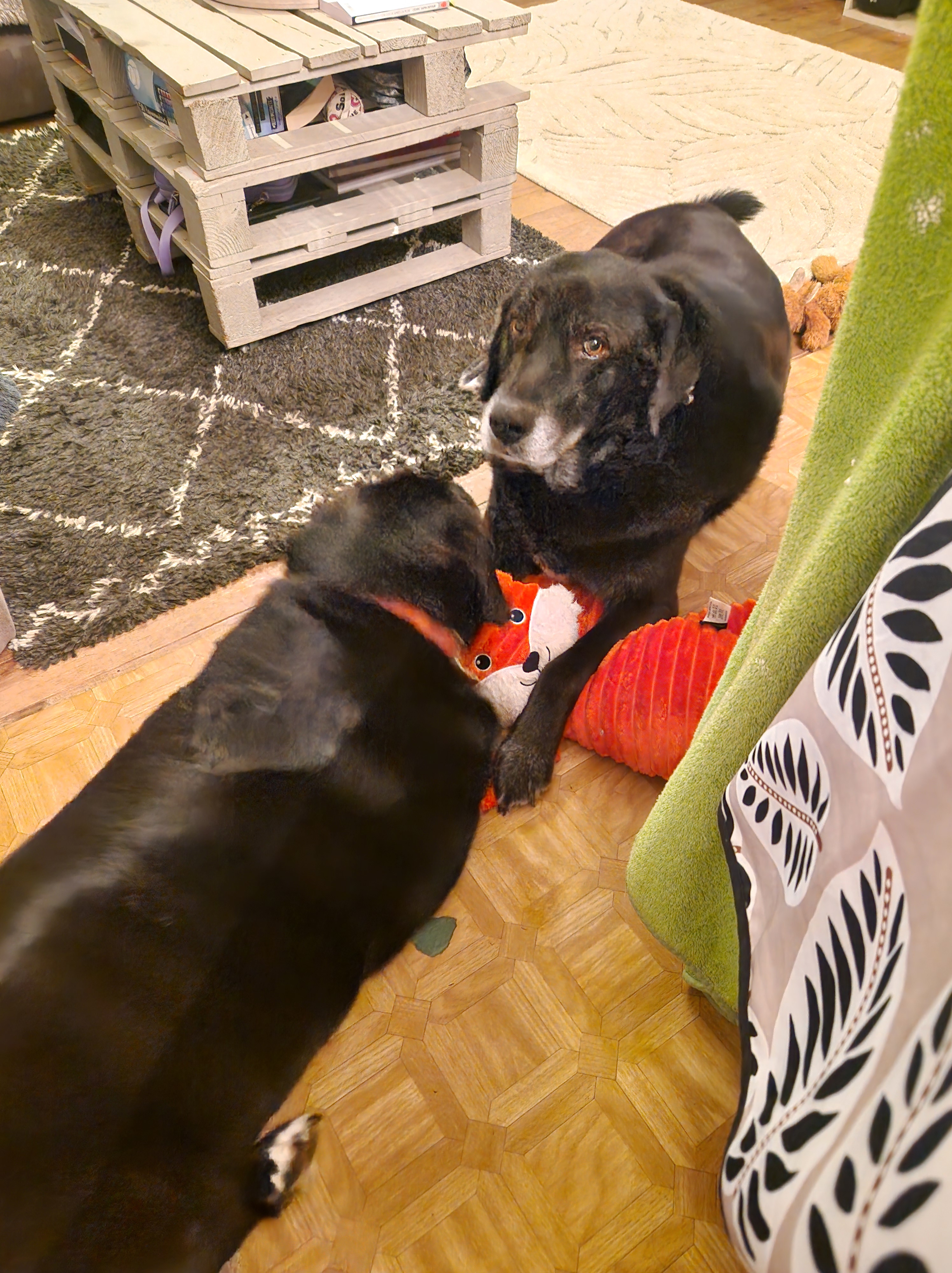 . Mais les deux sont des petits braquous d’amour, très doux avec nos fils, et toujours aussi câlins. La belle vie