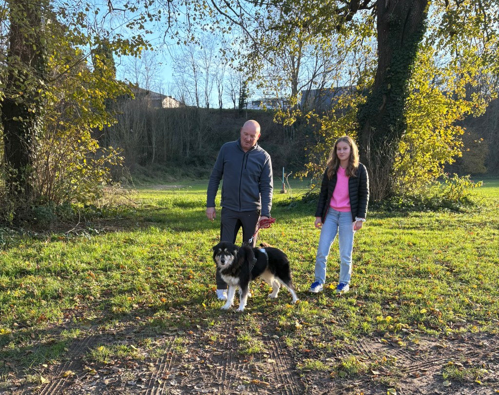 Notre gentil et dynamique Falco vient de rejoindre sa nouvelle famille dans le Lot ! Une belle adoption pour ce toutou qui n’est plus tout jeune (8 ans et demi).