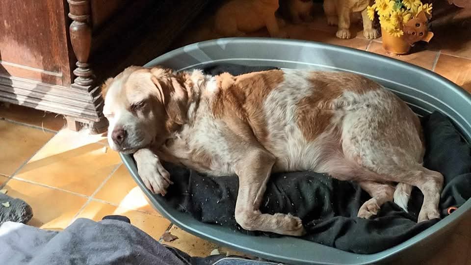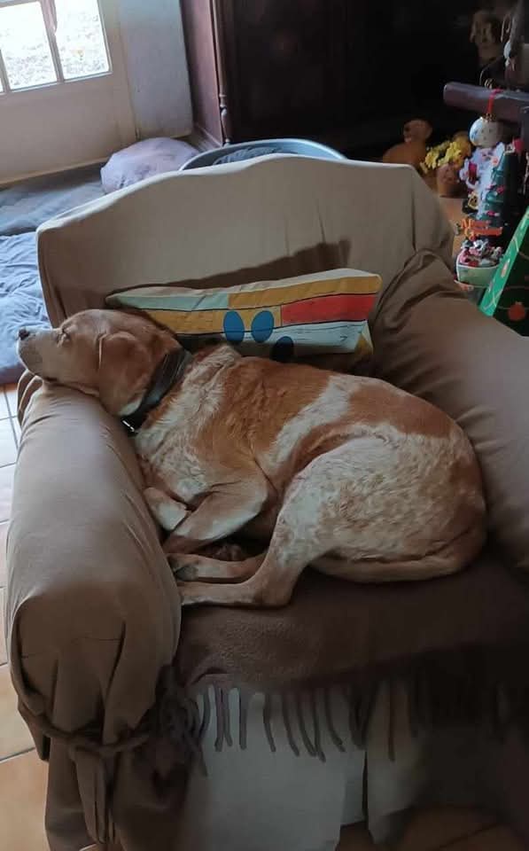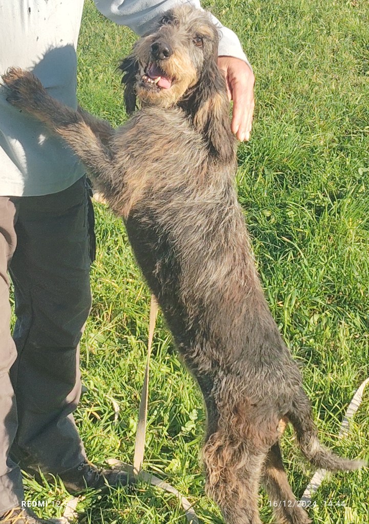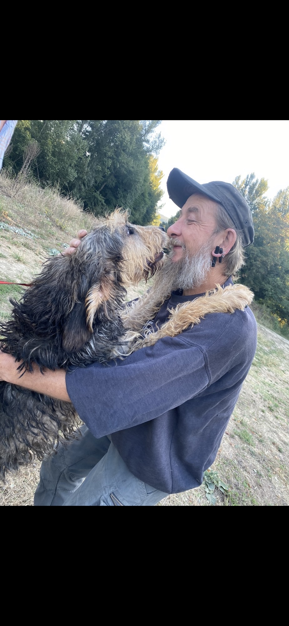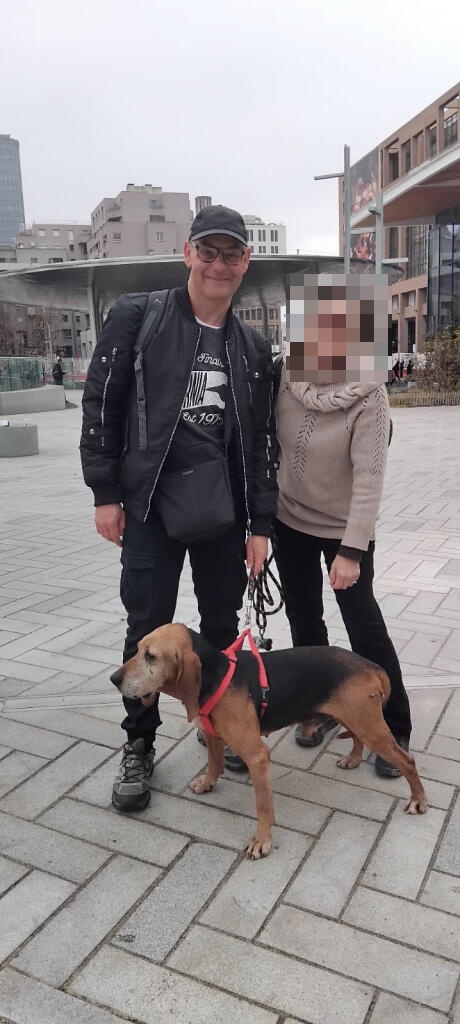 Bruno est arrivé au refuge en mars 2025, suite à un transfert avec la fourrière de Béziers, par le biais de l’association S.O.S. 34 Adoptions. Il était depuis de nombreux mois en fourrière. Il était déjà largement diffusé sur les réseaux sociaux. Cela a continué pendant son séjour au refuge. Mais aucune touche pour notre gentil loulou, même pas un regard lors des visites de potentiels adoptants… Invisible… En décembre 2025, à un jour d’intervalle, deux familles se sont manifestées pour Bruno ! Et ceci, grâce aux larges diffusions et partages de tout le monde, dont S.O.S. 34 Adoptions ! Mille mercis à tous ! Bruno a été dans le « collimateur » de l’association « Vieux Cœurs Battants » qui lui a ainsi trouvé sa famille définitive. A partir de ce moment, tout s’est accéléré en quelques jours :