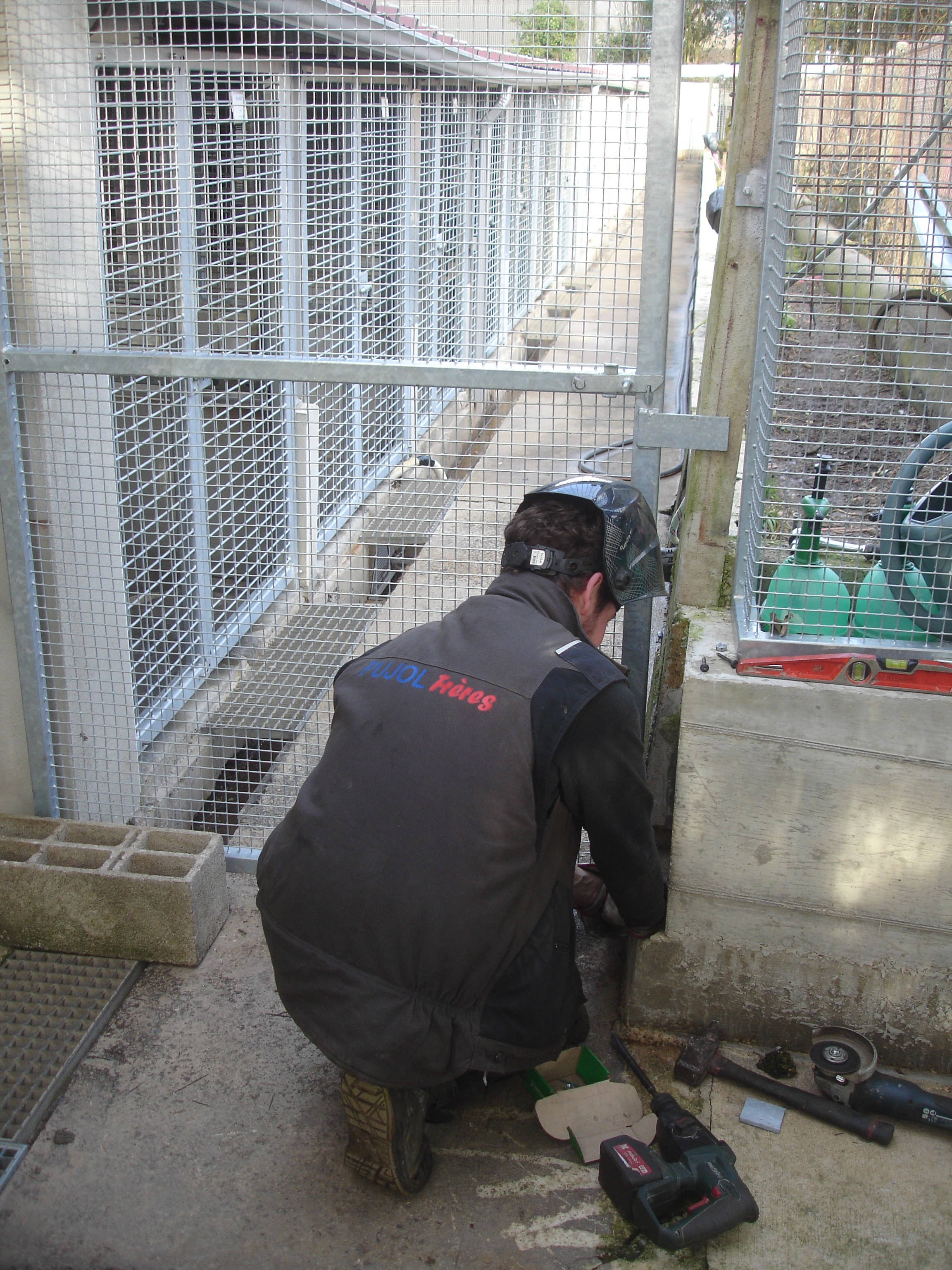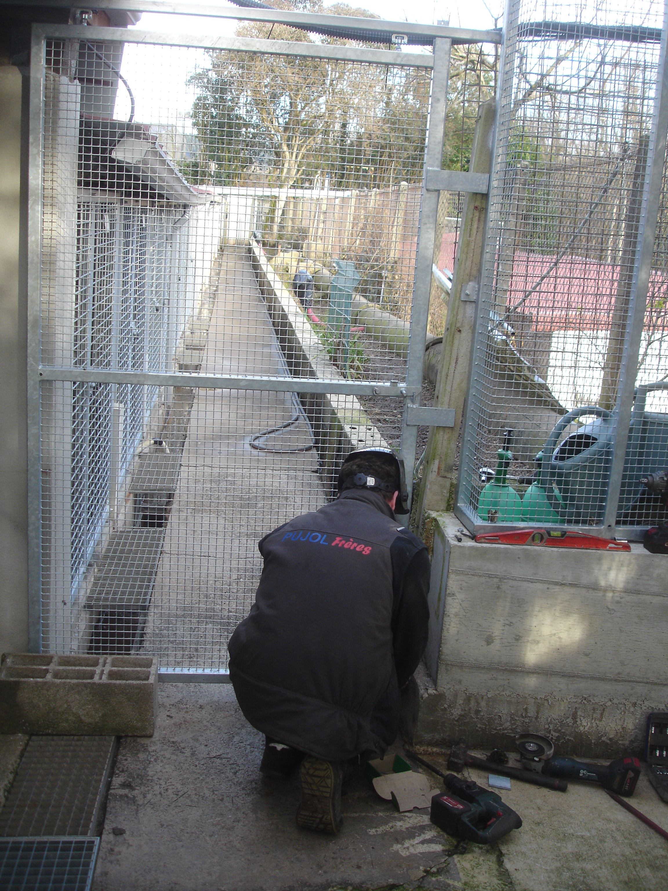 Ça y est, c’est réalisé : la cour intérieure du refuge qui remplace de vieux box vétustes et sombres. Désormais, cet espace permet aux chiens de se dégourdir les pattounes pendant le nettoyage de leur box, le matin. Le grillage a été changé et surélevé. Le sol a été bétonné. Pour cela, à l’aide d’un camion nacelle, les branches qui gênaient l’accès à la pompe à béton du camion toupie ont été coupées. Nous remercions la mairie d’Aussillon et ses équipes pour cette belle réalisation !