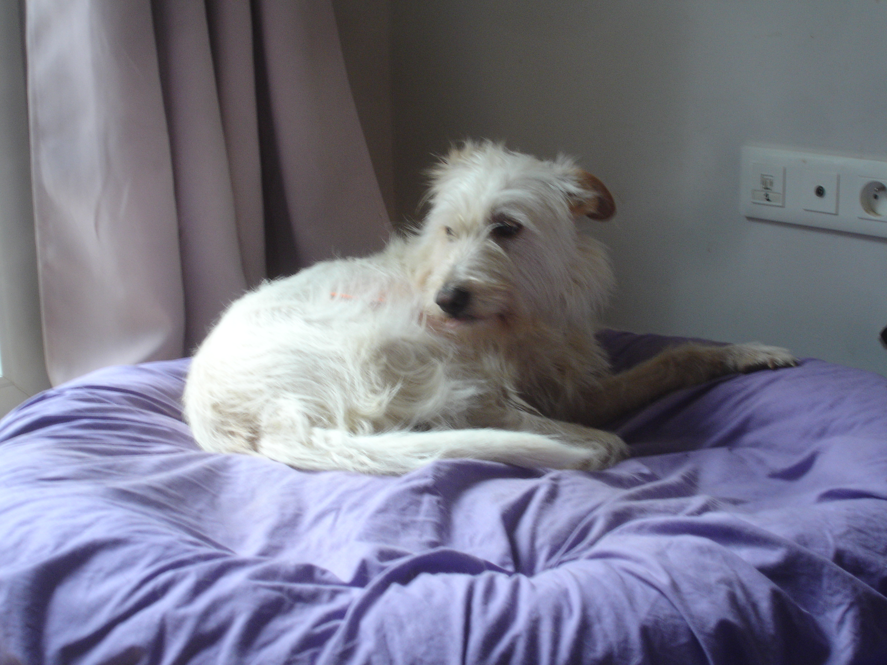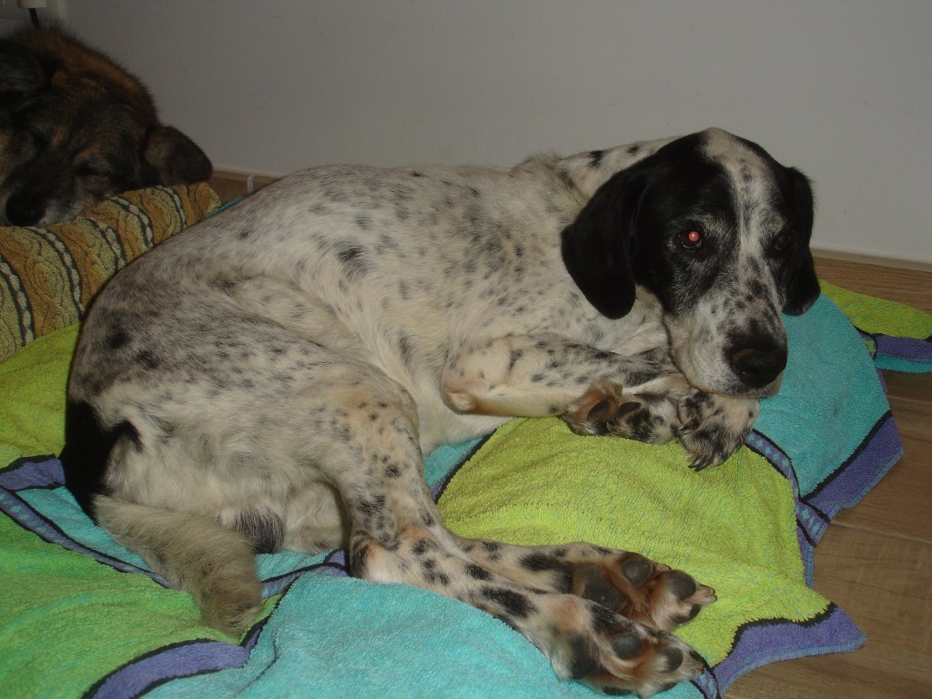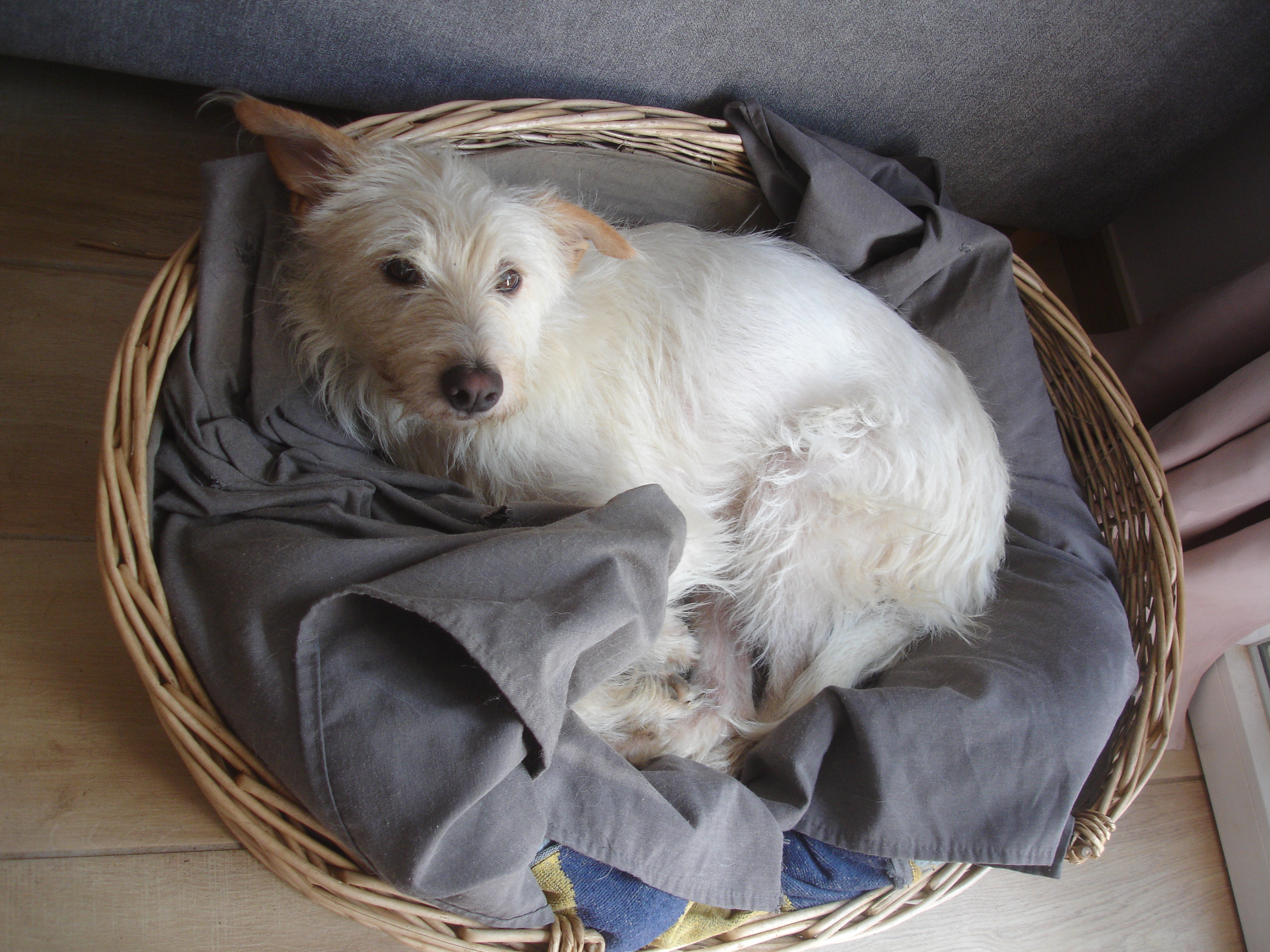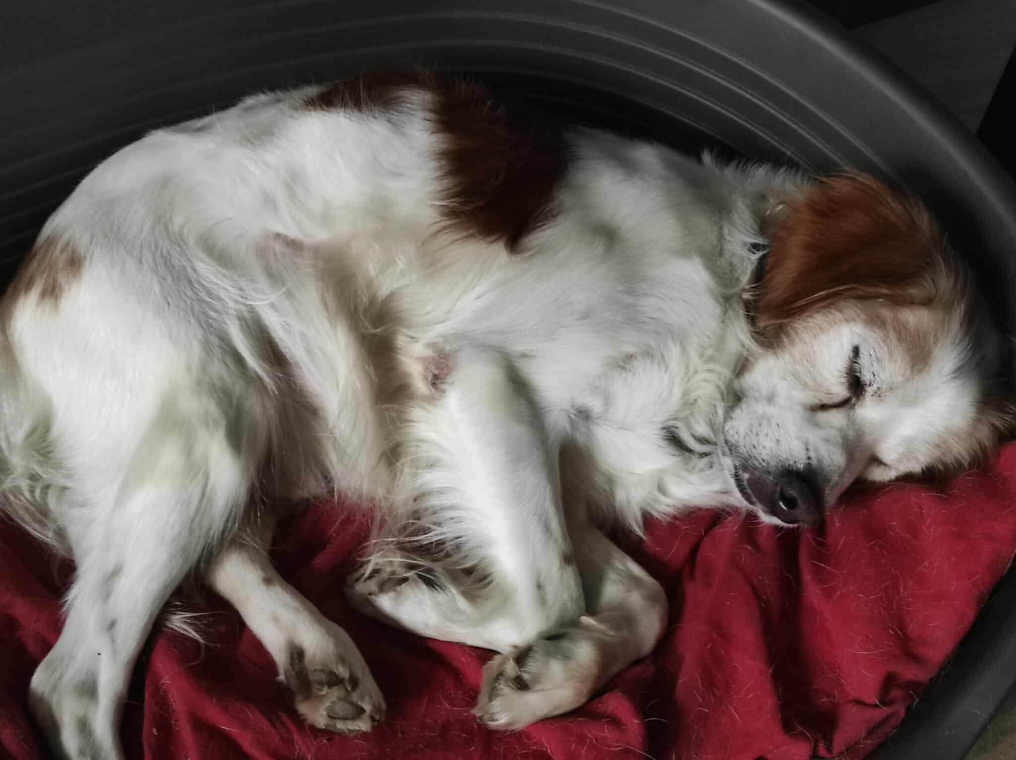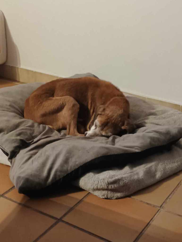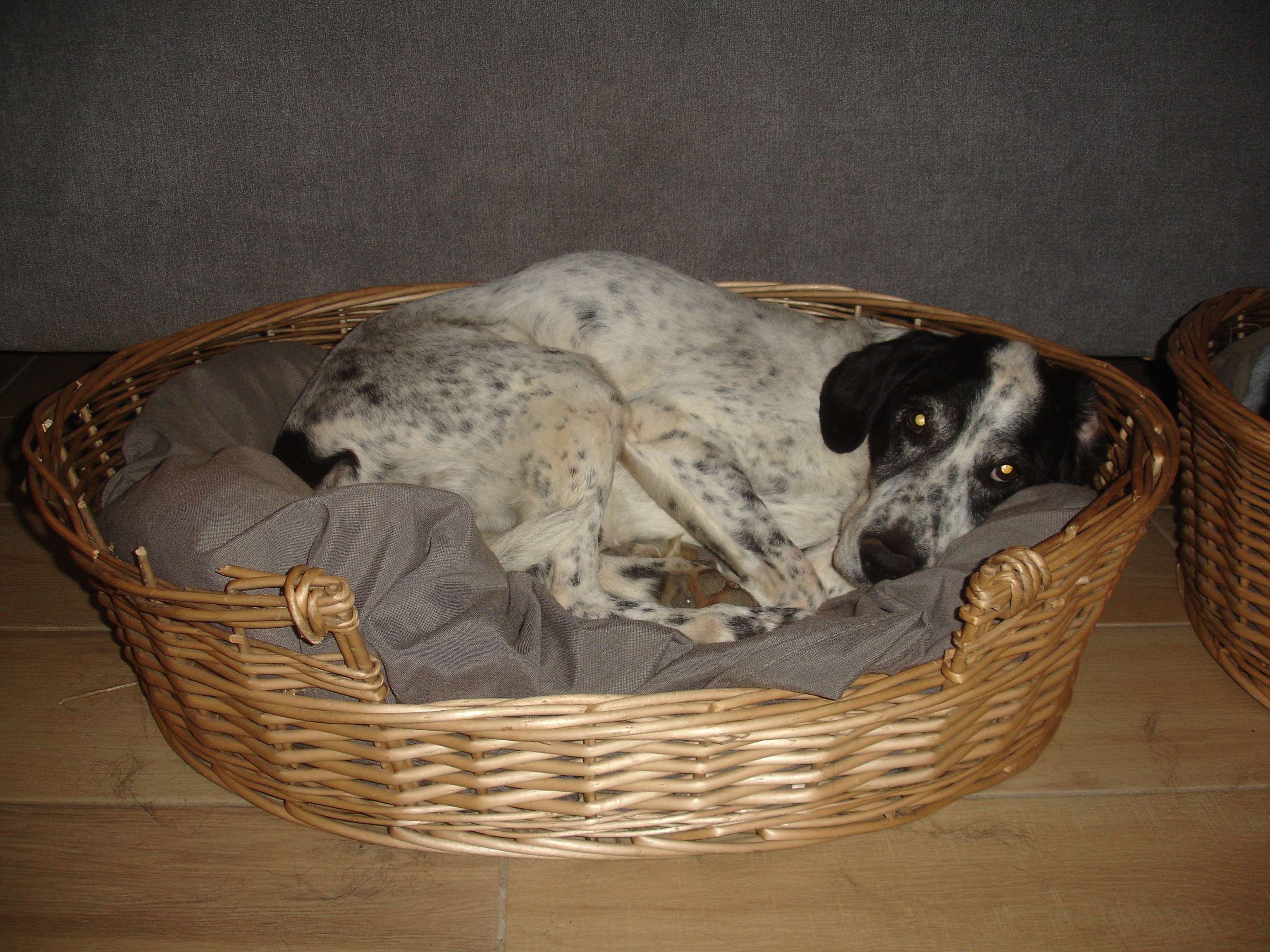 Avec ses 14 ans, Paco était le doyen des doyens du refuge. Il découvre la joie de vivre avec une famille ! Première gamelle et promenade nocturne, à son arrivée. Test du coussin qui s’avère concluant (Monsieur a boudé la panière) ! Le lendemain, balade dans les bois : que de bonnes odeurs !