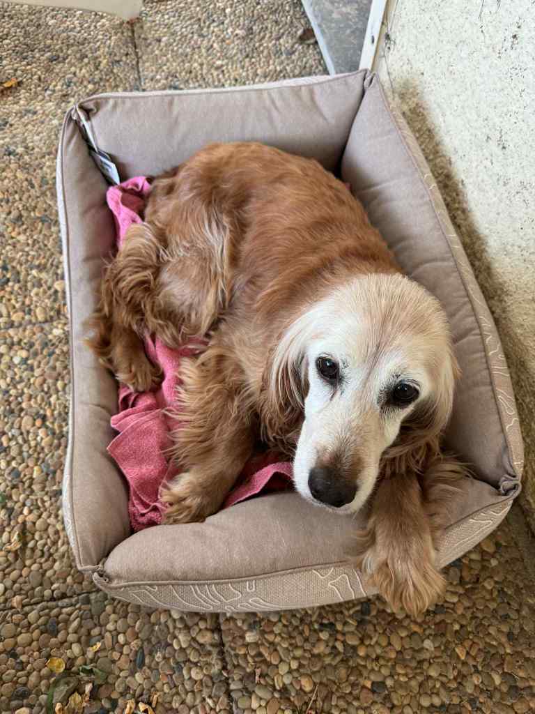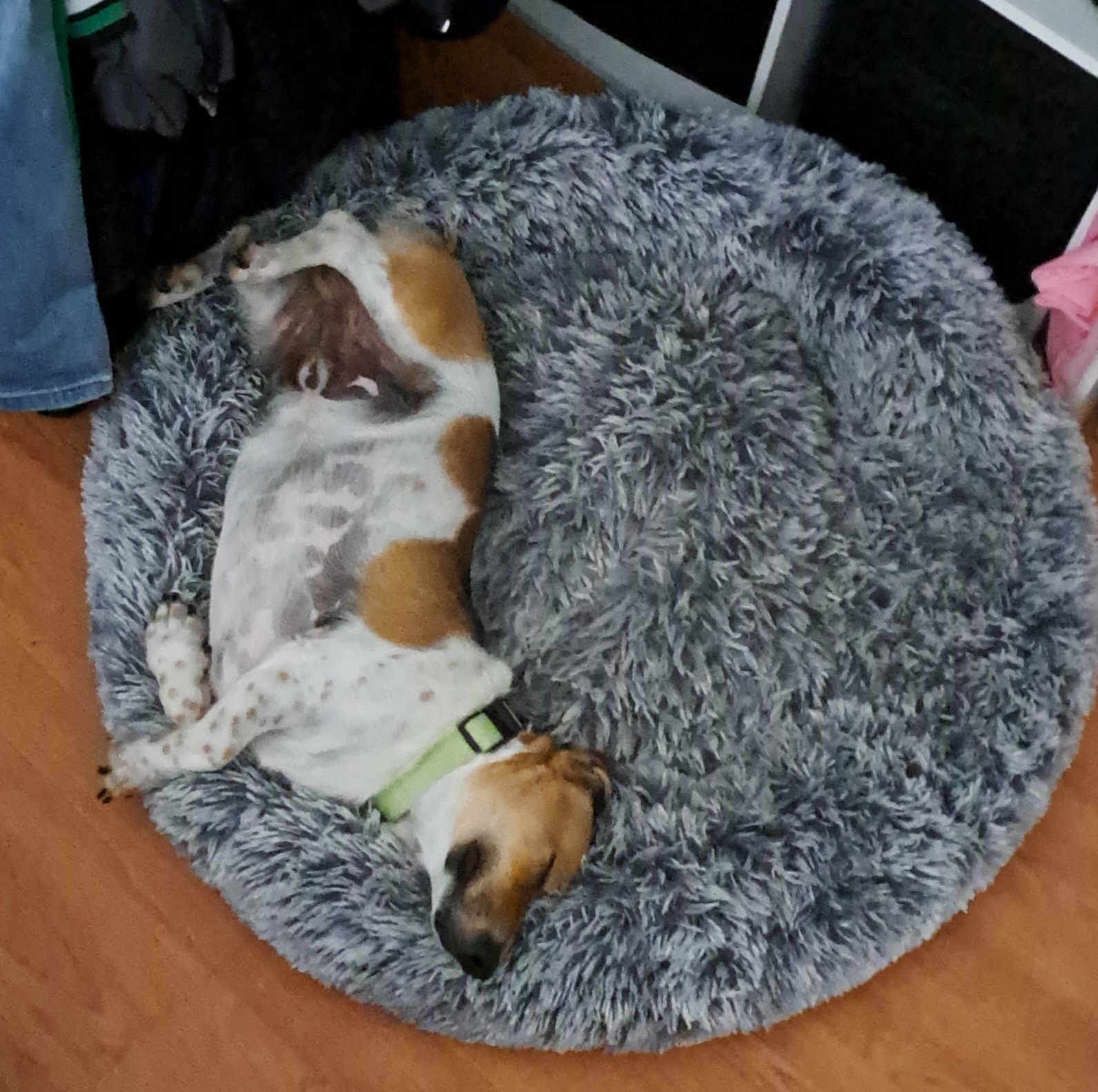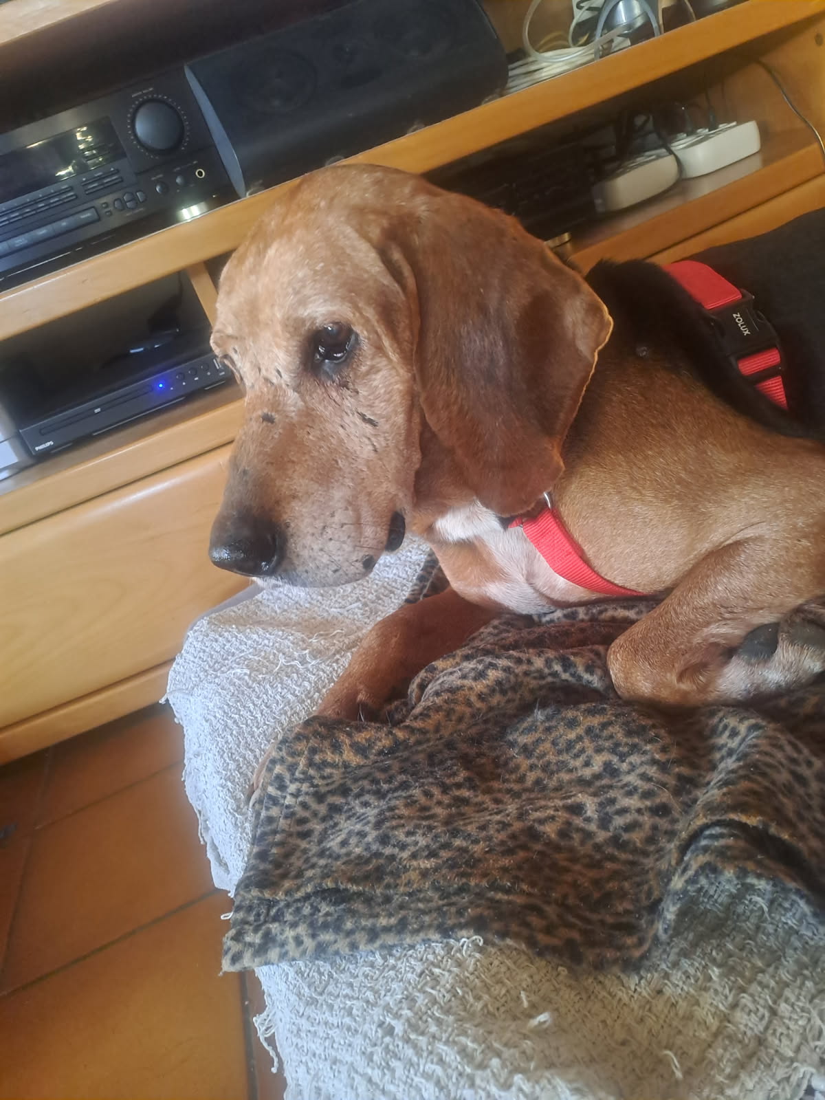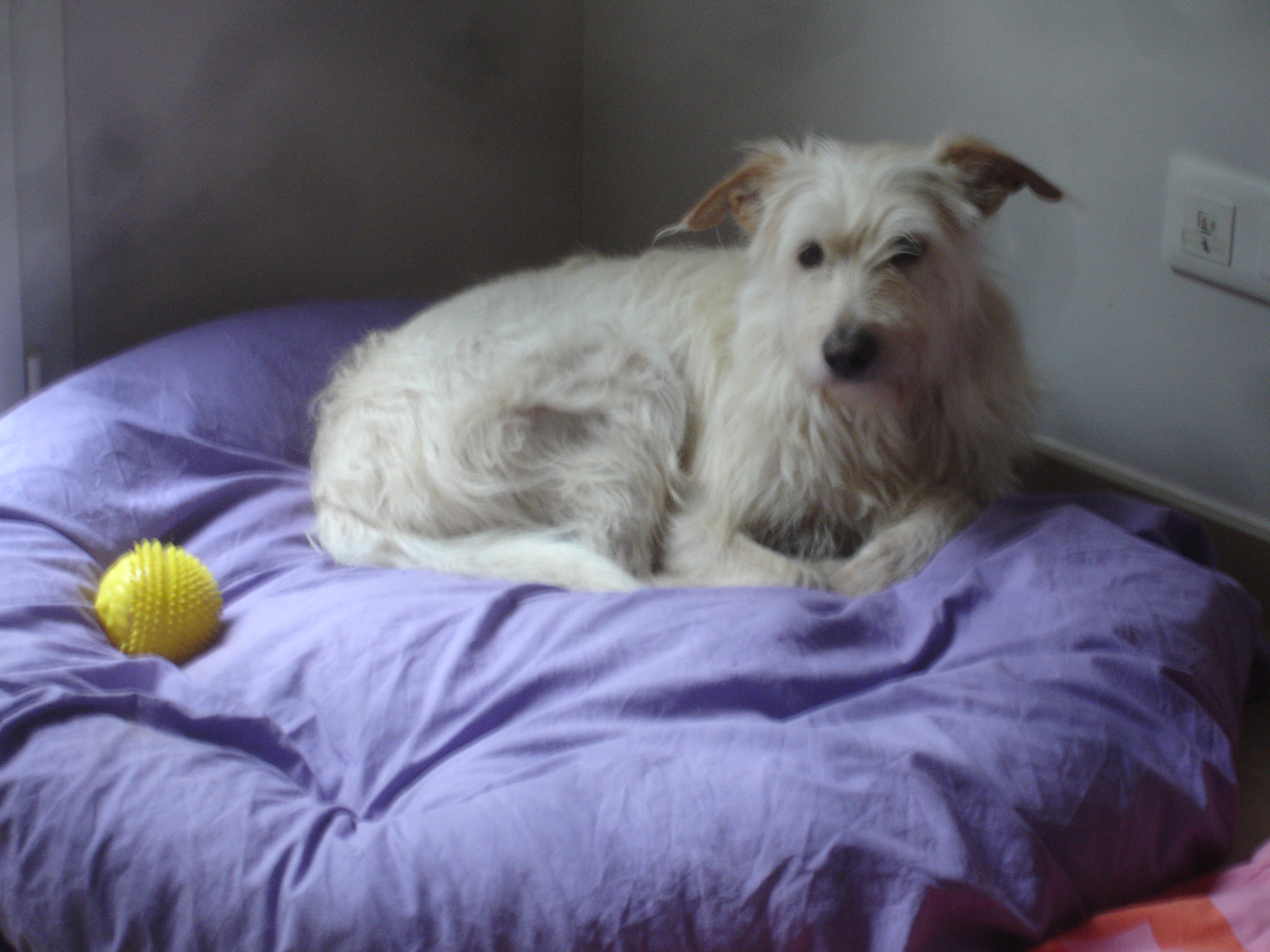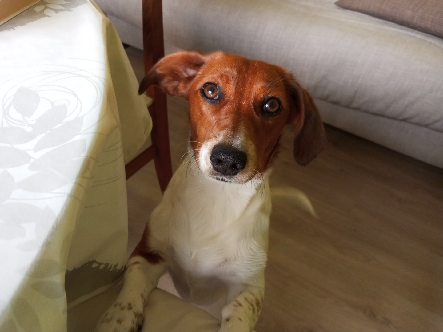 Avec ses 14 ans, Paco était le doyen des doyens du refuge. Il découvre la joie de vivre avec une famille ! Première gamelle et promenade nocturne, à son arrivée. Test du coussin qui s’avère concluant (Monsieur a boudé la panière) ! Le lendemain, balade dans les bois : que de bonnes odeurs !