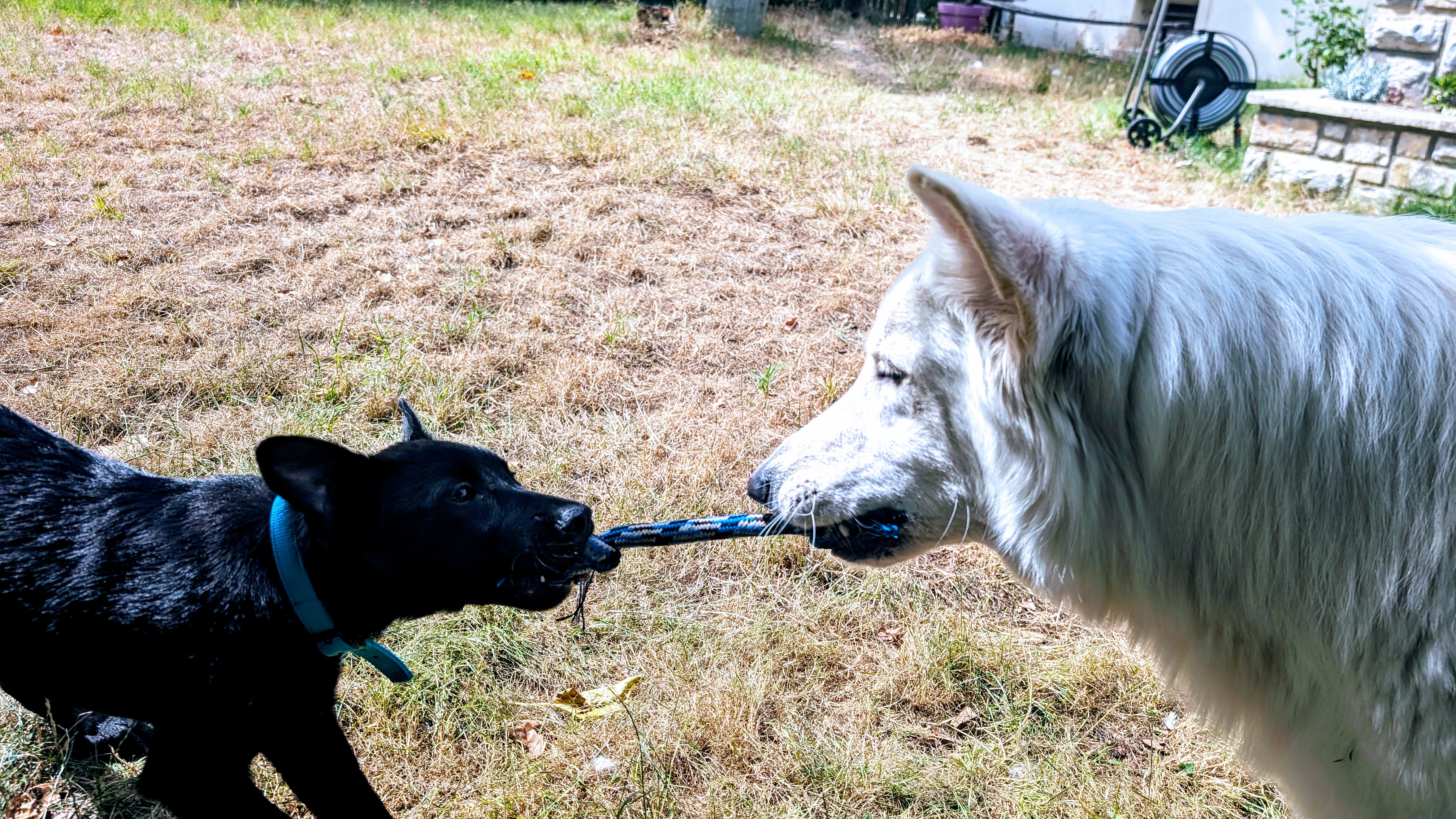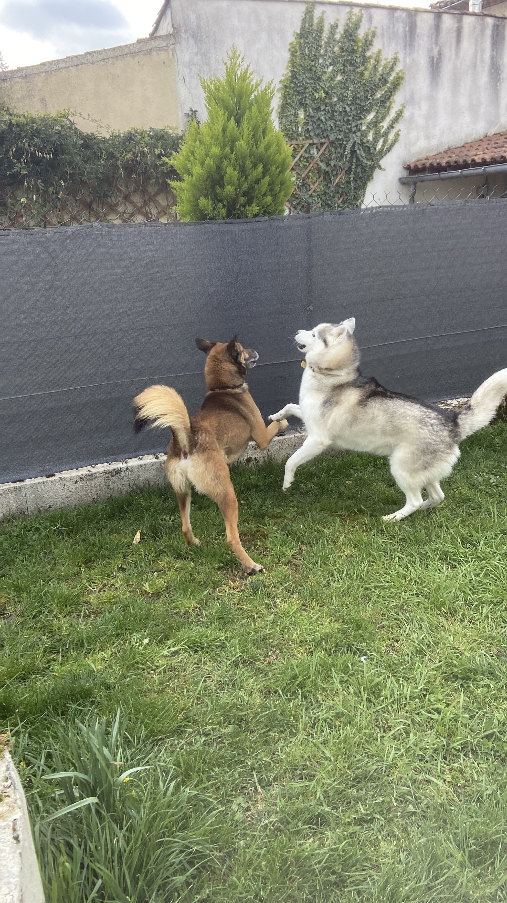 Des petites nouvelles d’Odin et de Fangio. Fangio devient un petit papy mais est toujours aussi dynamique, joueur. Et Odin continue de grandir, encore et encore, grandes pattes