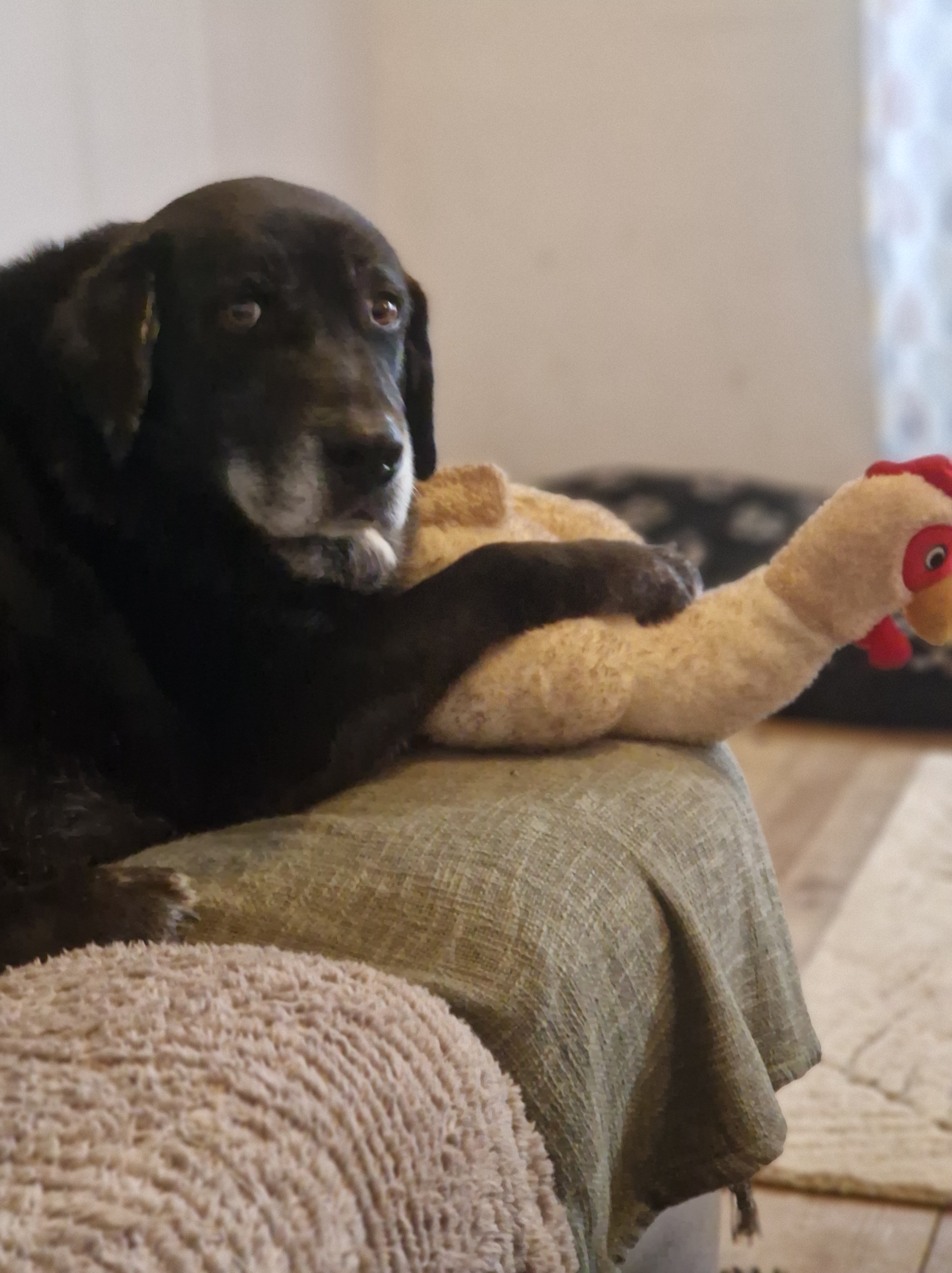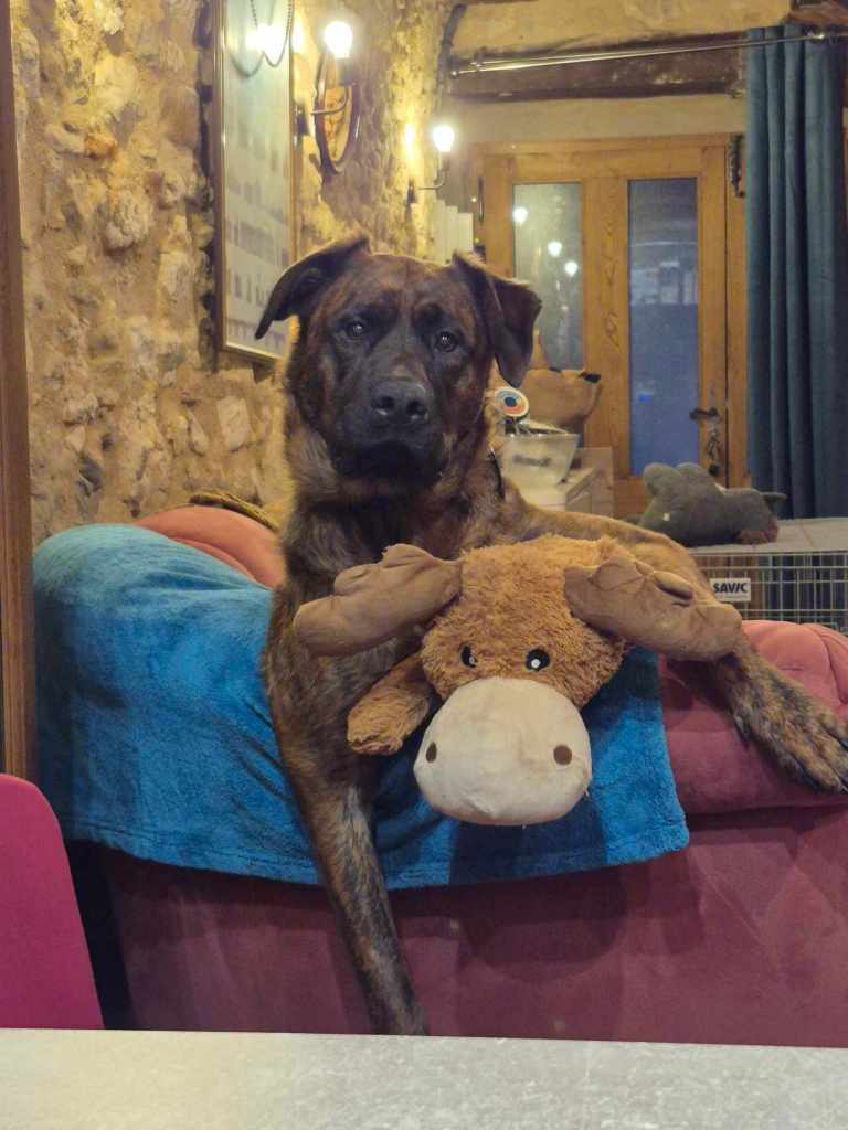 Coucou ! Des nouvelles du gros doudou Hoskar ! Il a fêté sa 2ème année d’adoption et ses 13 ans d’ici quelques mois.