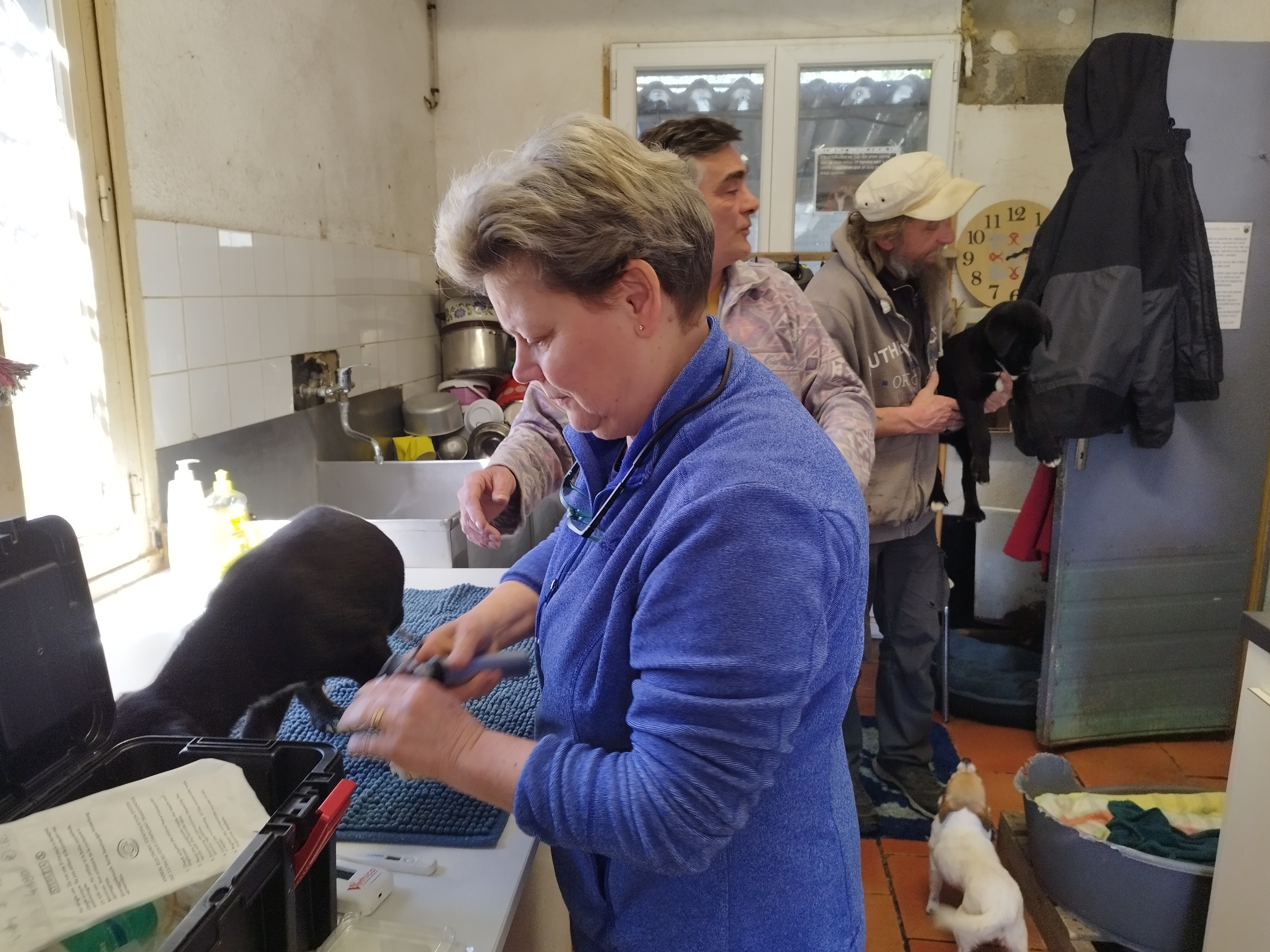 L’équipe des 4 pattounes est venue aider plusieurs fois au refuge. La dernière fois (avant la rénovation), « la team » a peint des box et rangé le local à couvertures. Voici quelques photos souvenirs du 1er avril 2023, journée très pluvieuse mais aussi très joyeuse ! Merci et bravo pour tout ce que vous faites !