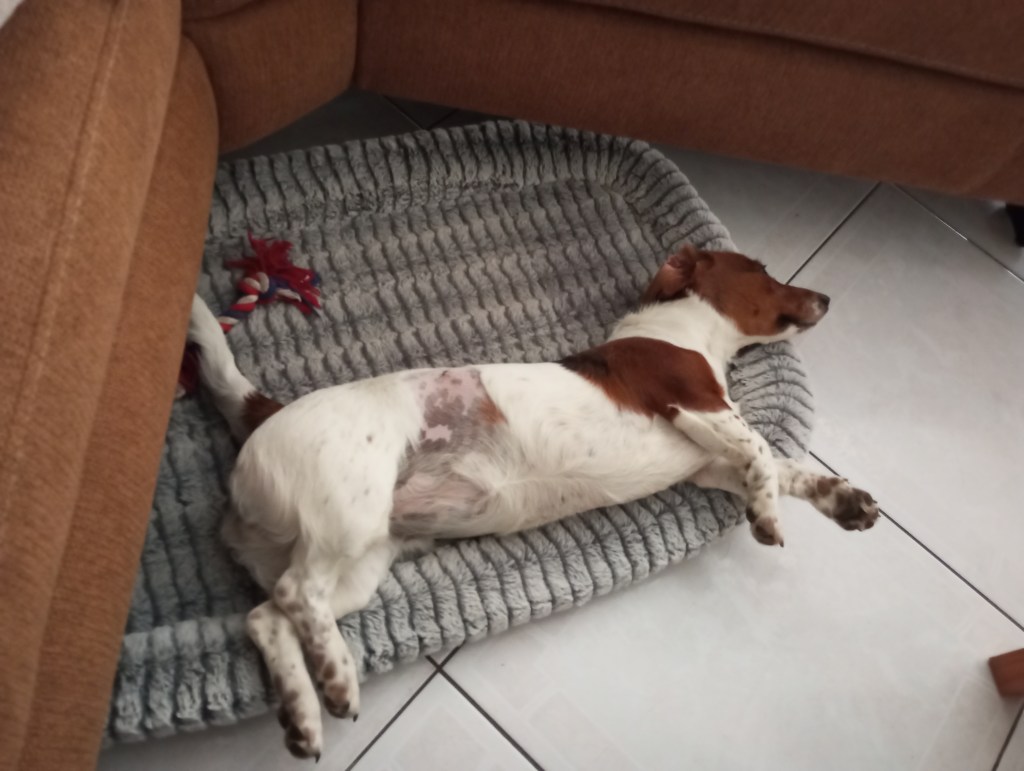 Lila n’a plus son pansement de stérilisation ! Elle apprécie sa nouvelle vie de famille et gambade dans le jardin de ses maîtres aimants !