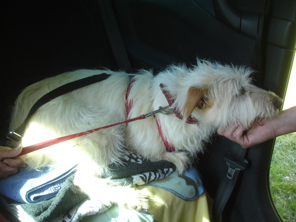 Floky a de nouveaux maîtres ! Il ne s’est pas fait prier pour monter dans la voiture ! Floky va pouvoir se dégourdir les pattounes car son jardin est immense !