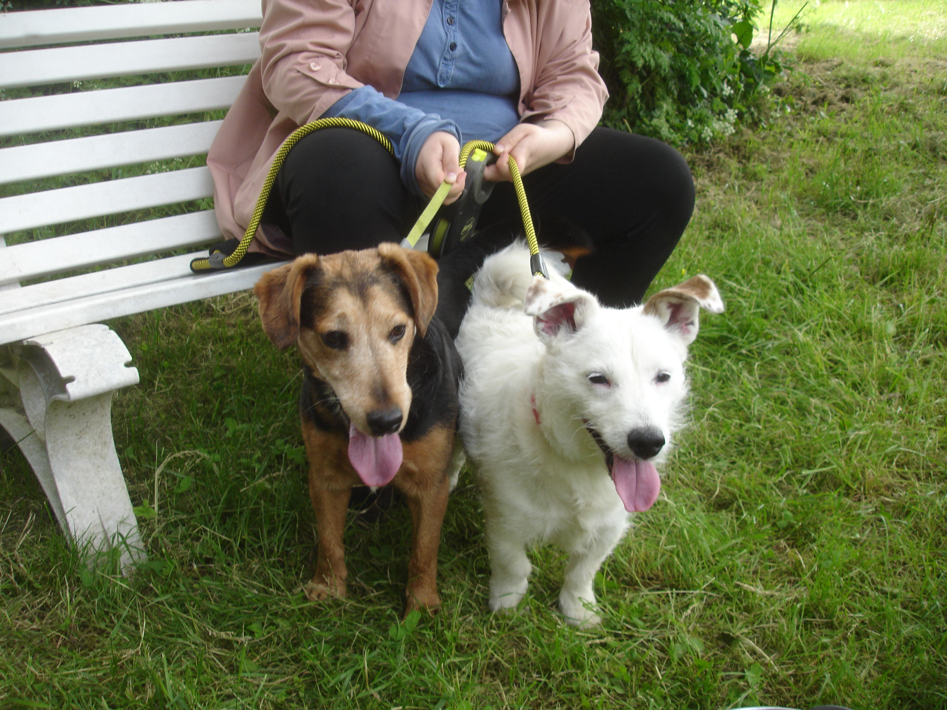 Rickette la craintive s’est laissée apprivoiser par ces douces personnes qui ont pris le temps de l’approcher, de la câliner et de la promener. Ses nouveaux maîtres avaient déjà adopté un chien au refuge, il y a longtemps. Celui-ci a eu une très belle vie mais il n’est plus là… Rickette aura pour compagnon un autre toutou. C’est chouette car elle adore se promener en compagnie de copains : au refuge, elle aimait se balader avec Rick ou Félix, eux aussi craintifs. Ces balades en duo les ont stimulés et leur ont donné un peu confiance en eux.