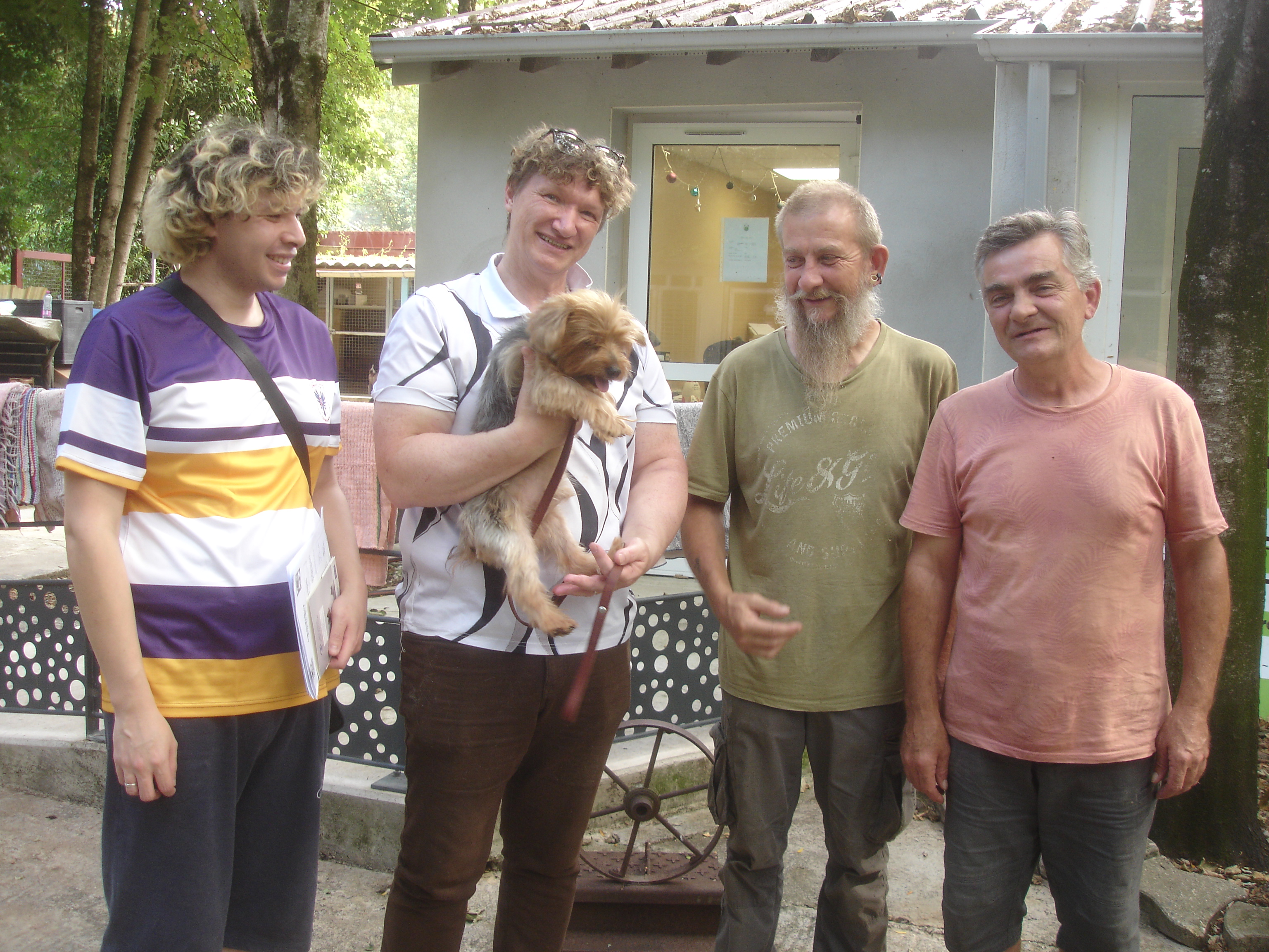 – Samedi, dernière balade autour du refuge, dernières papouilles avec Eric et Marco et en voiture jusqu’à Béziers, avec Marine qui a fait l’aller-retour exprès ! Bruno est déposé chez Valérie, présidente de SOS 34 Adoptions.