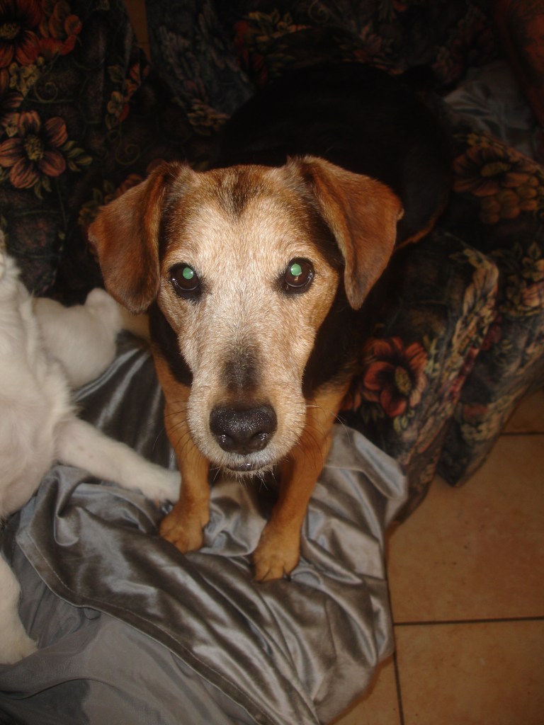 Filou a 15 ans. Il a été adopté au refuge, il y a bientôt 14 ans, avec sa maman Pénélope. Au départ de Pénélope, Filou a eu de nouvelles copines qui sont toujours là et qui partagent sa vie (Gaya et Téquila adoptée elle aussi au refuge). Filou a vieilli et n’a plus la force de suivre ses copines en balade. Par contre, il continue de se promener dans le jardin où il aime marquer son territoire ! Filou a toujours eu un très gentil caractère, offrant beaucoup d’amour et de réconfort.