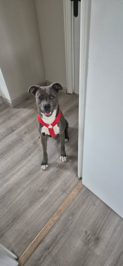 Poppy a été adopté au mois d’août 2024. Il est venu nous rendre visite et a rapporté son certificat de bonne santé ! Il est très gentil. Poppy apprend à se promener en laisse mais c’est encore difficile car il adore la mordiller !