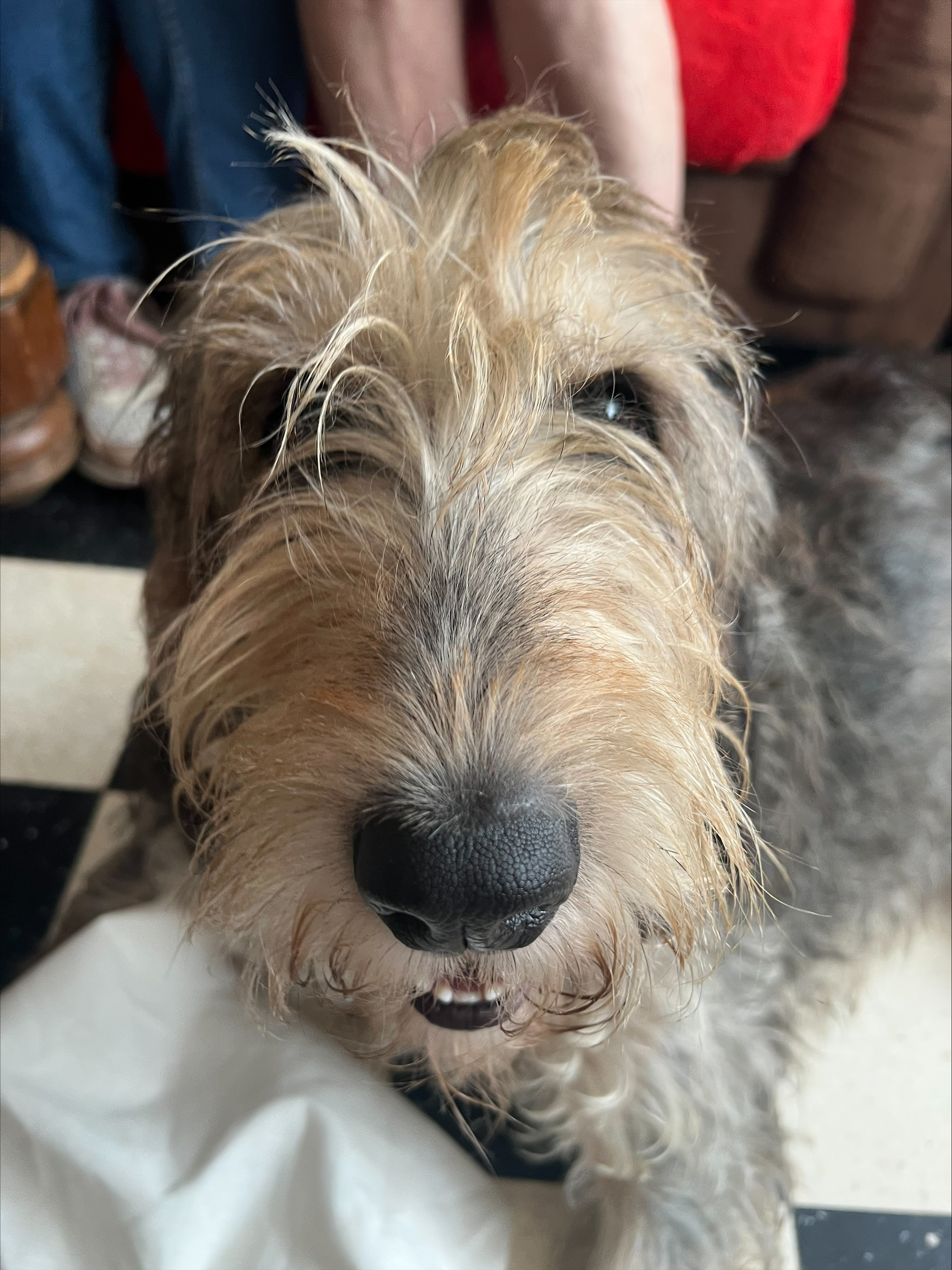 Juste quelques nouvelles de Joe : la campagne, la mer, la montagne, les restos, les réceptions et il s’adapte à tout ! Il est toujours en pâmoison devant son maître. Bref ! C’est un cadeau du ciel ! Joe et Rominé se joignent à nous pour vous souhaiter une soirée aussi douce que la nôtre (preuve à l’appui) !