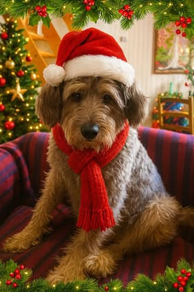 Décidément, ce gentil Tino a toujours un couvre-chef sur la tête ! Après la belle peinture de Tino à Paris, voici notre star en chair et en os, déguisée en Père Noël !
