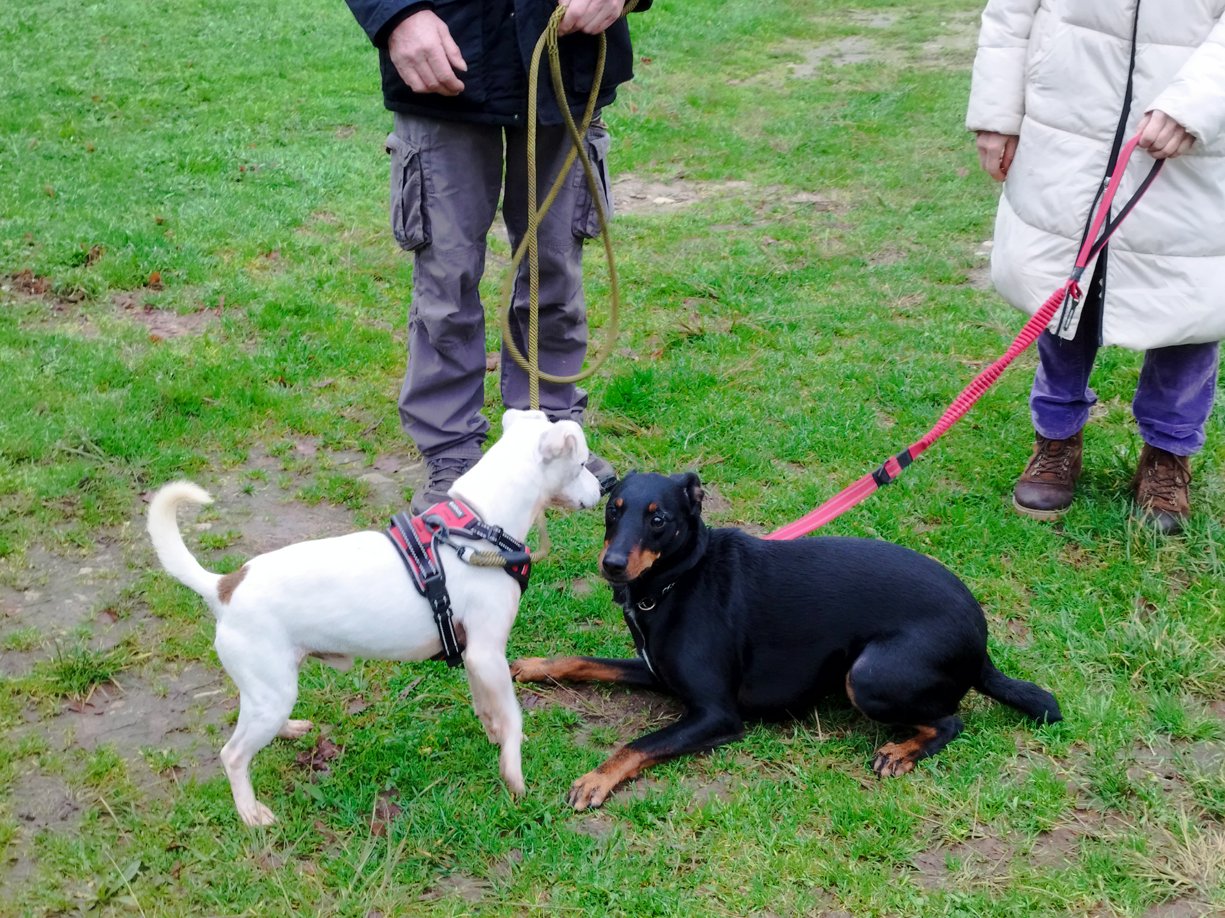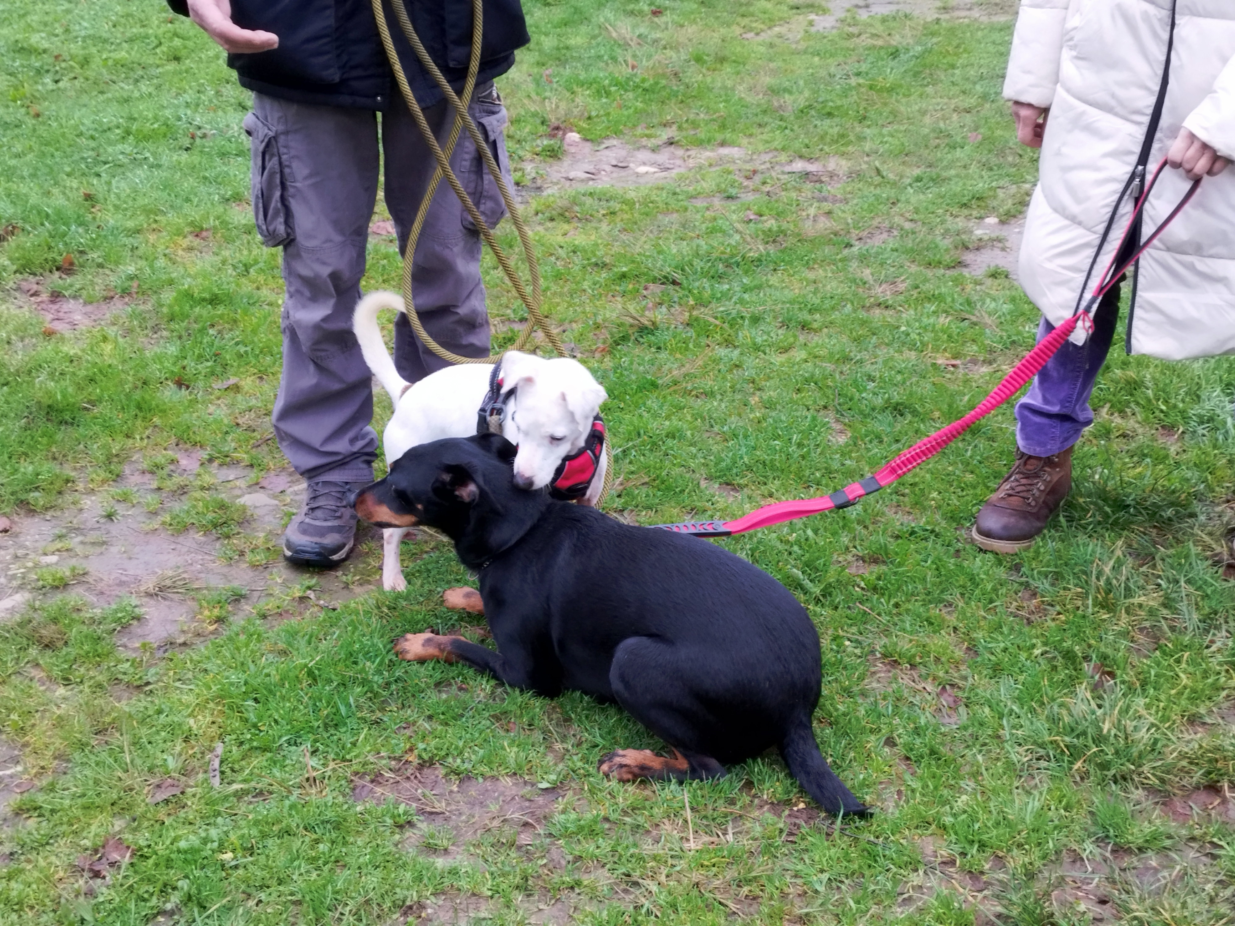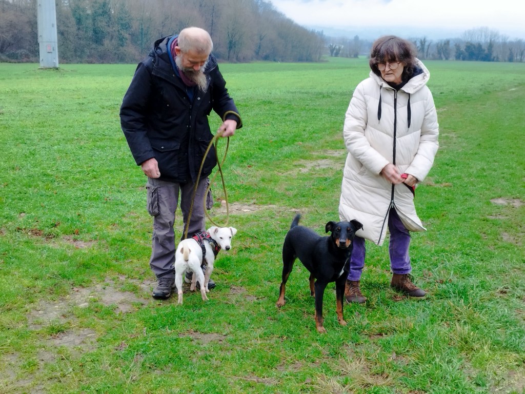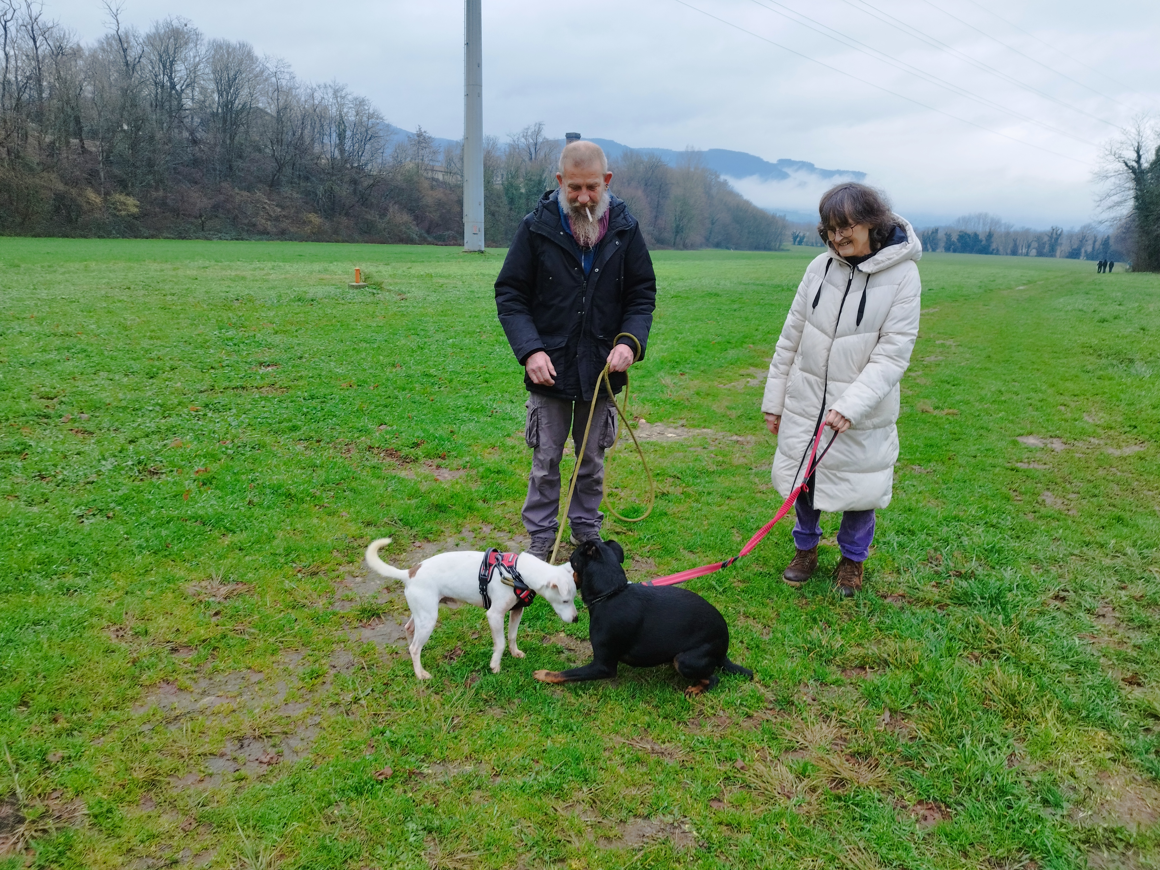 L’année 2025 a aussi été synonyme d’arrivée de chiens peureux, voire très craintifs. Impossible de les sortir de leur box, trop paniqués. Avec beaucoup de patience, de gentillesse et de friandises, quatre chiens ont retrouvé goût à la vie en pouvant se promener autour du champ, comme les copains ! Pour trois d’entre eux, l’aide de Monsieur Jean-François Holleville, éducateur canin expérimenté et extrêmement bienveillant, a été nécessaire.