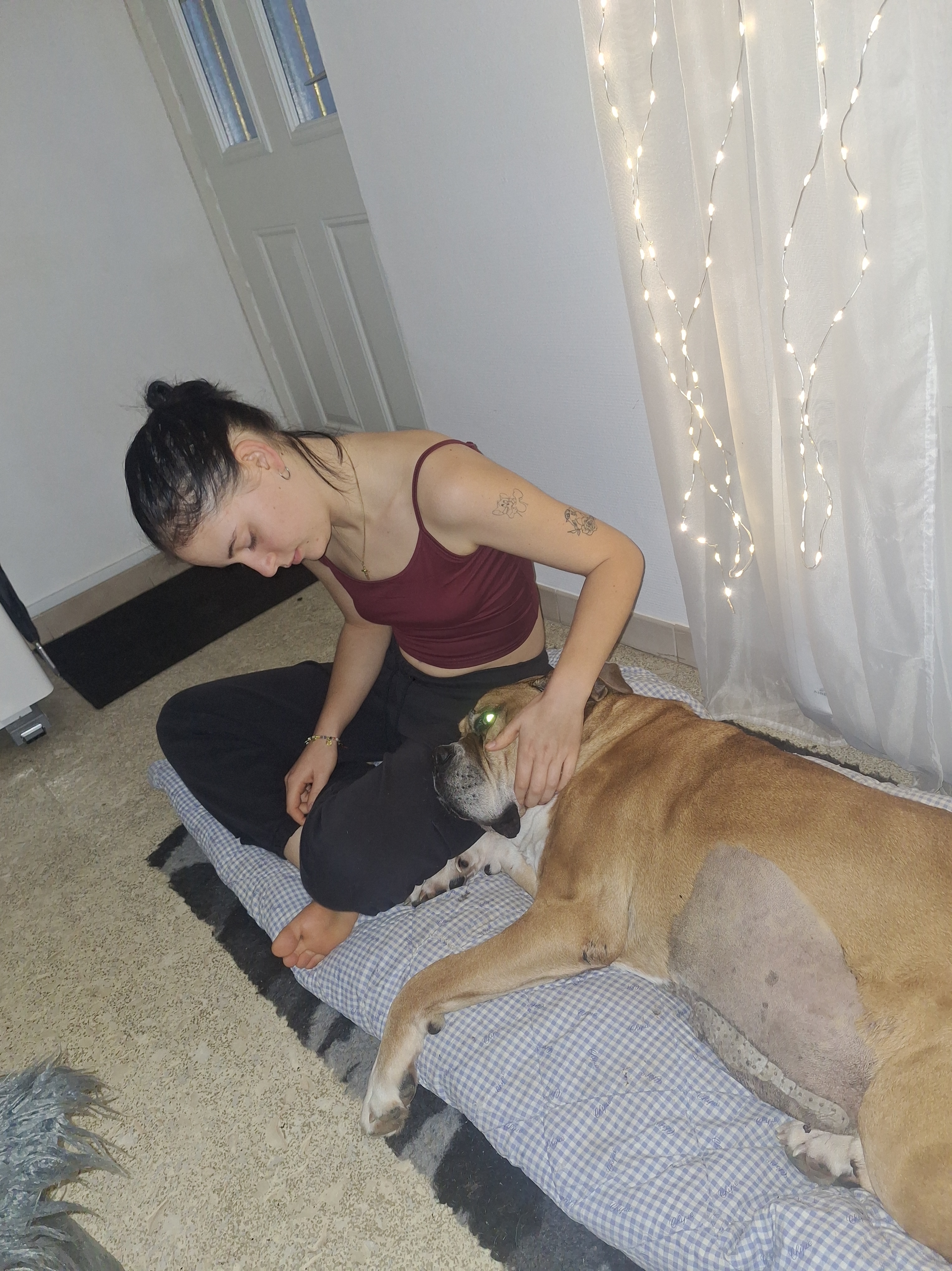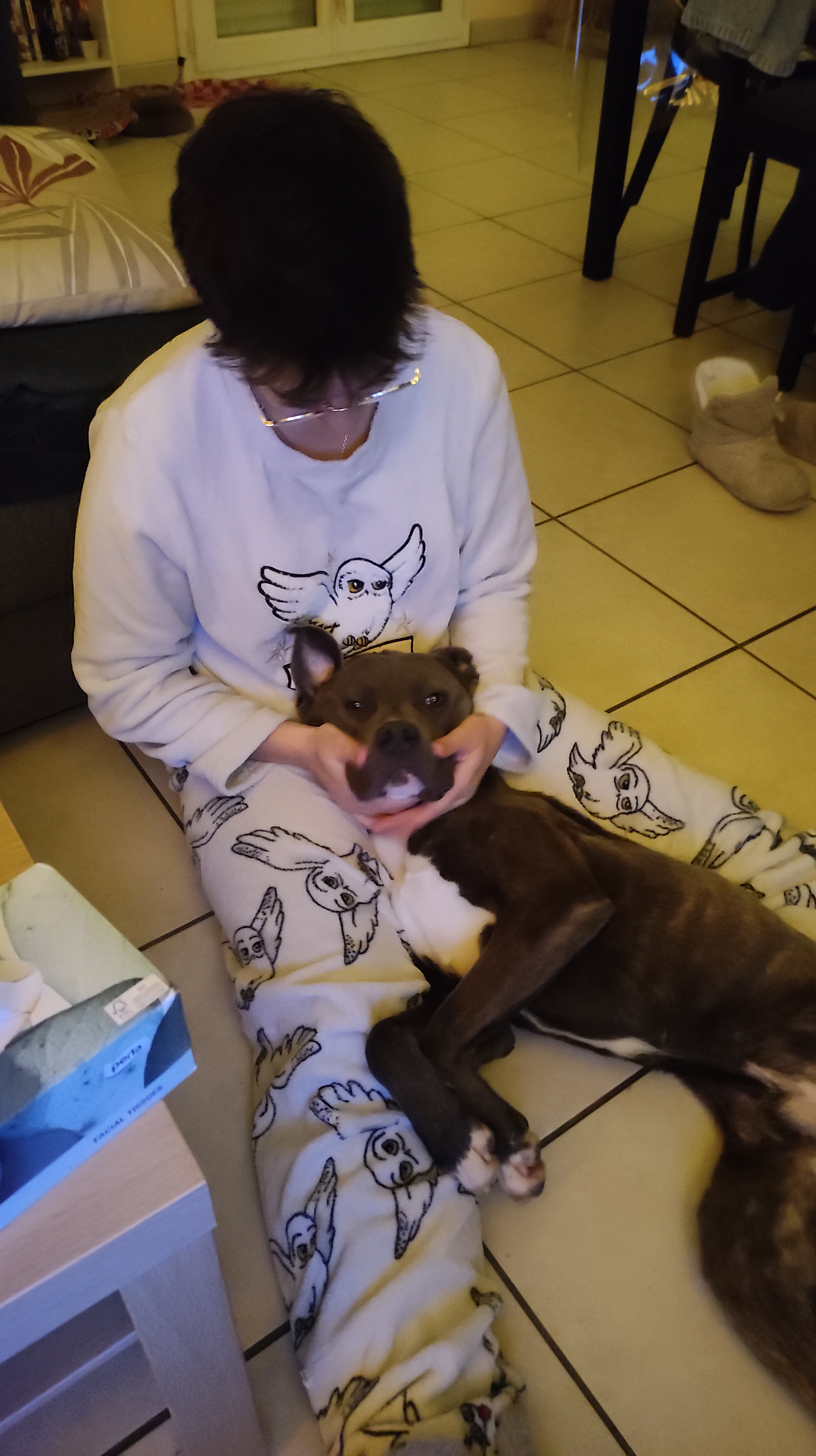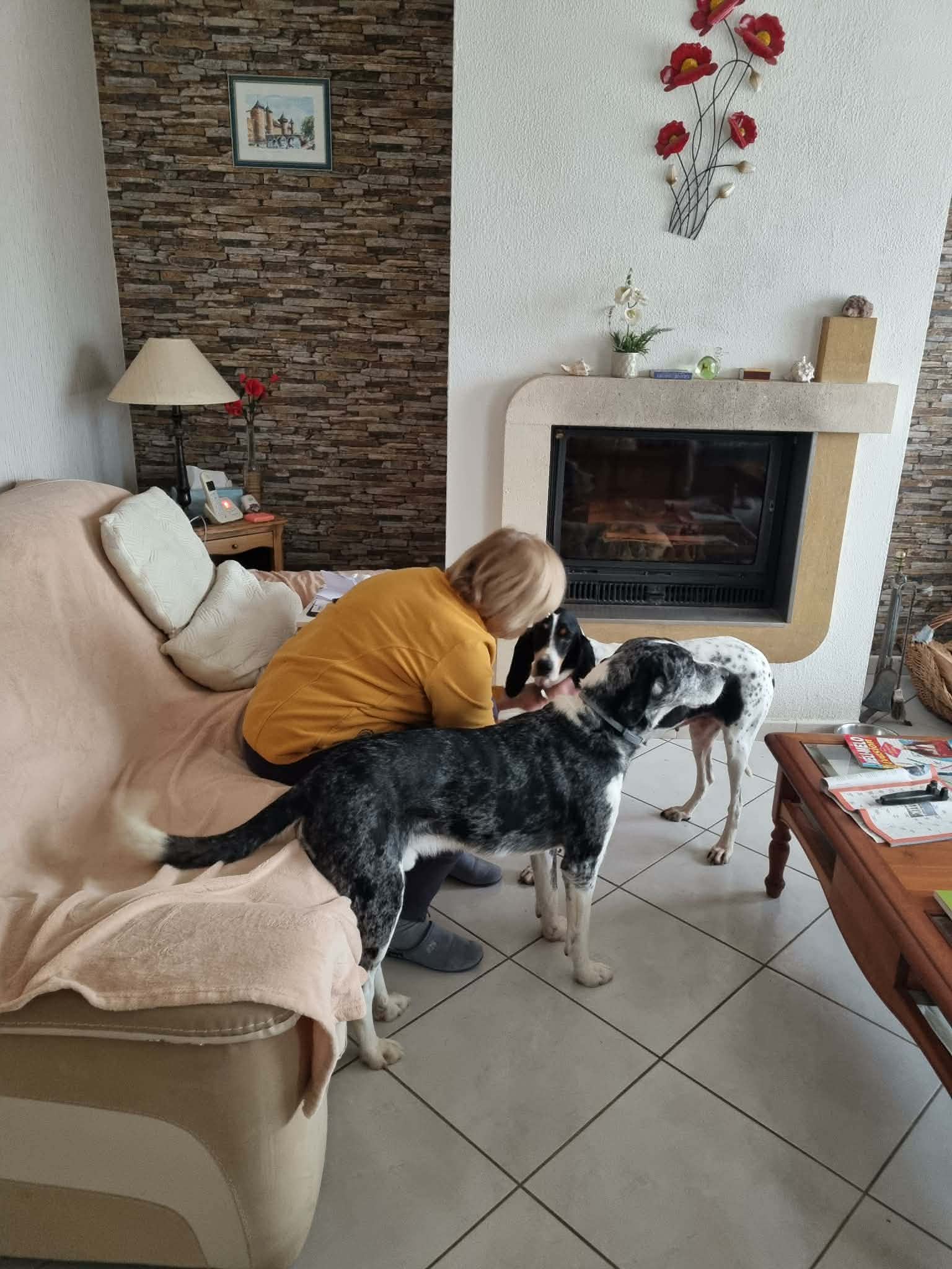 « Bonjour, Presque 2 semaines qu’Éva est chez nous, elle prendre confiance petit à petit même si c’est compliqué et que le chemin semble encore long.