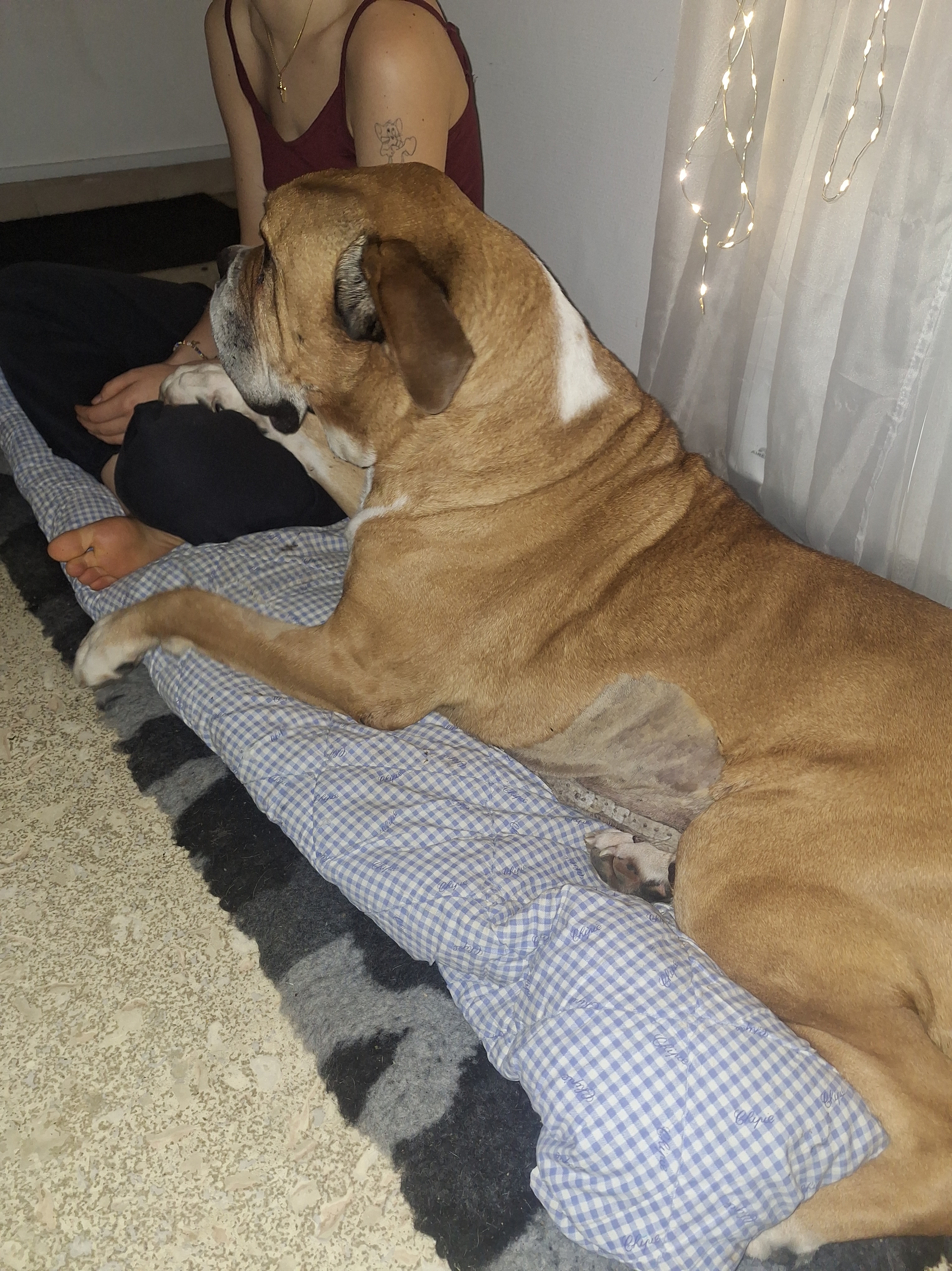 Léon (ex Néron) a été adopté en novembre 2025. En décembre, il a fait une dilatation-torsion de l’estomac. C’est une urgence vitale. Heureusement, ses maîtresses étaient là au début du syndrome. Vite, départ chez le vétérinaire qui a pris immédiatement Léon en charge. Ouf, le loulou a été sauvé, in extremis ! Ensuite, convalescence dorlotée entre ses deux maîtresses chéries. L’opération « Doyens » de 30 Millions d’Amis a permis aux adoptantes de ne pas payer la facture de l’intervention chirurgicale. Le cabinet vétérinaire a transmis sa facture à la fondation qui l’a ensuite payée. Désormais, ce mauvais souvenir est loin et Léon a repris ses petites promenades quotidiennes.