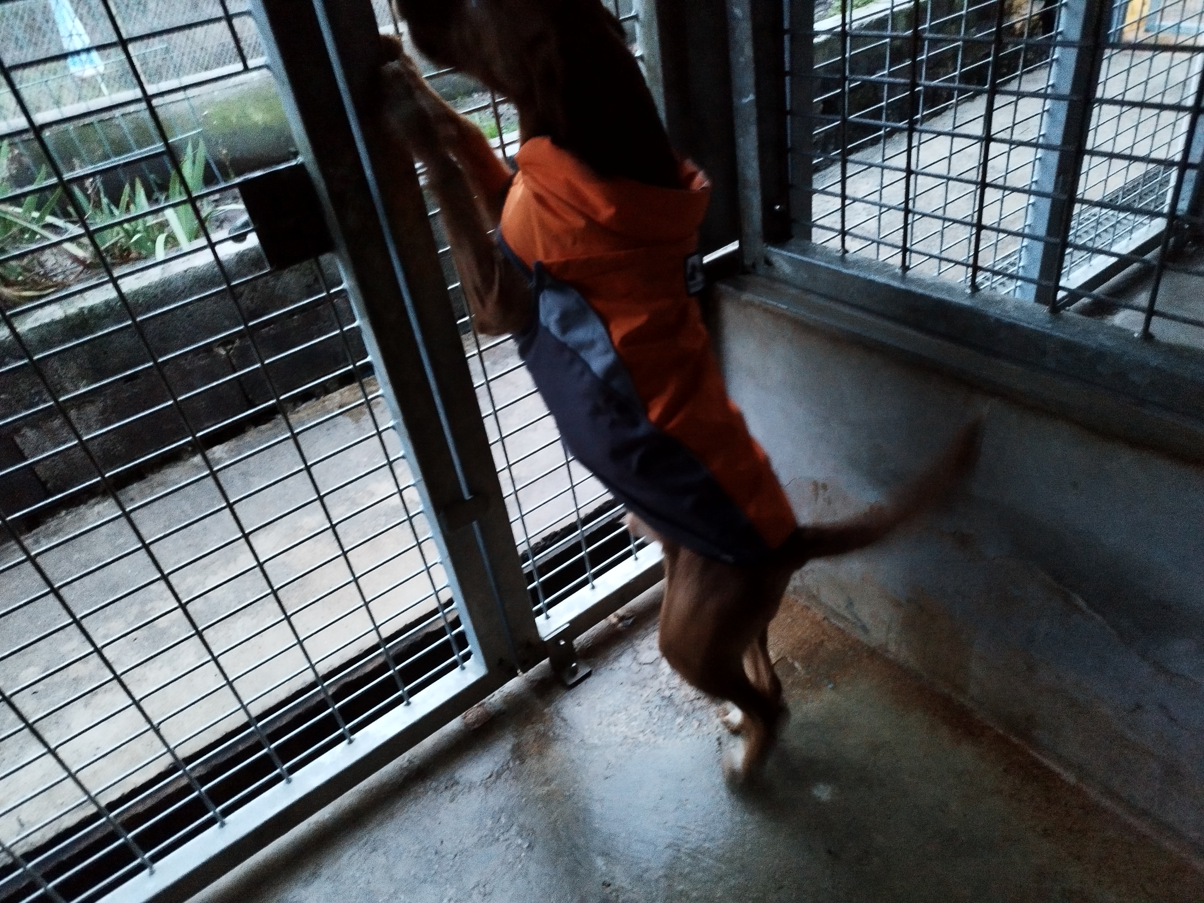 Hier, en fin d’après-midi, des chiens ont eu droit à une séance d’essayage de manteaux et de pulls. On a privilégié les chiens à poils courts. Choubaka a refusé catégoriquement son manteau et l’a détruit en quelques minutes. Certains avaient l’air tout contents d’être parés contre le froid (Titaz, Jack). Pour les autres, ce sera la surprise aujourd’hui : auront-ils accepté leur parure d’hiver ou la retrouvera-t-on par terre, entière ou en mille confettis ? Nous vous tiendrons informés ! Si vous avez des manteaux et des pulls pour chien qui ne vous servent pas, nous sommes preneurs ! Il nous faut des modèles qui leur permettent de faire leurs besoins, sans être gênés. Merci d’avance !