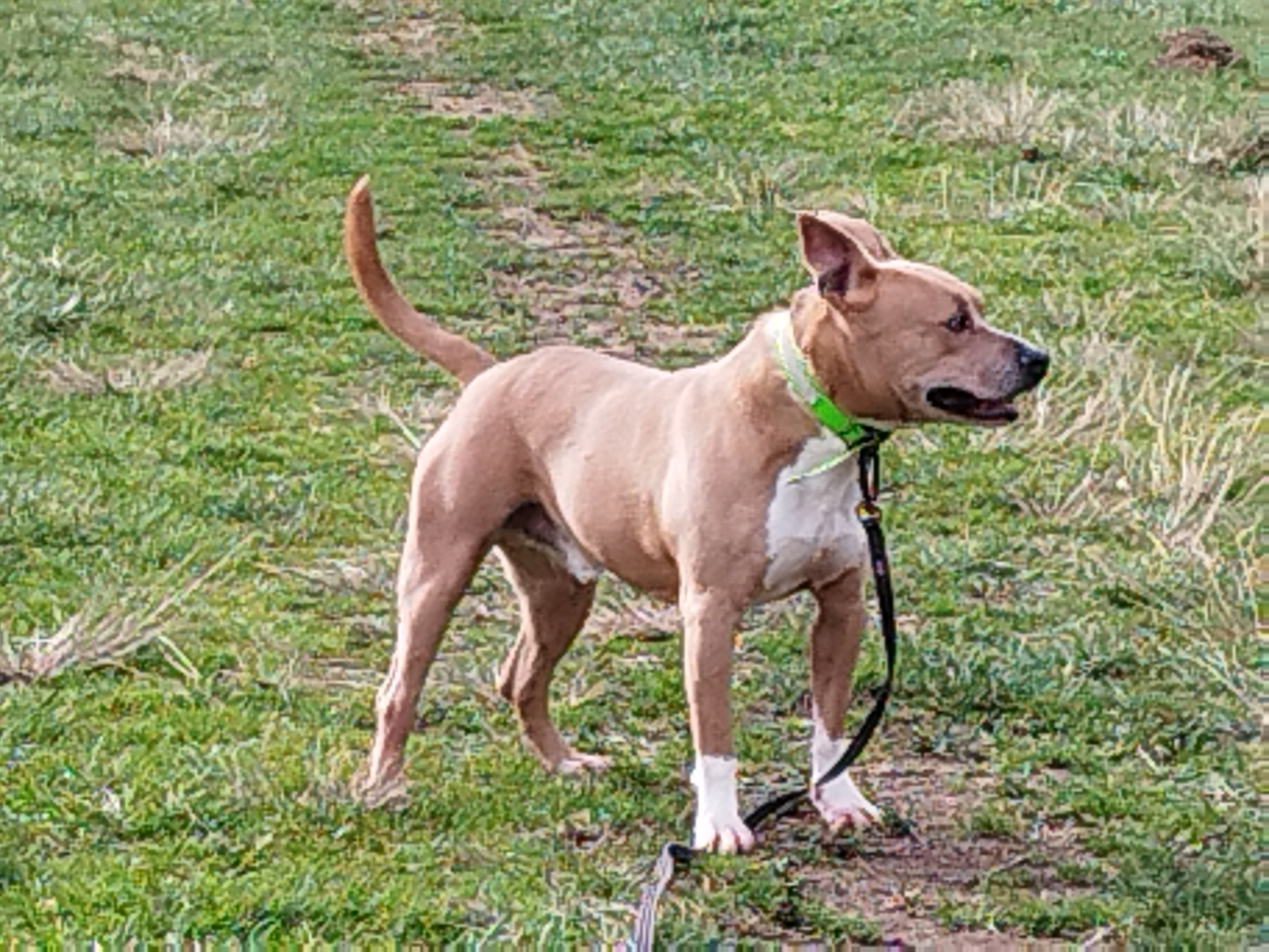 Rider (né en 2020) est un chien puissant de 6 ans, de taille moyenne, croisé American Bully. Il a été adopté en 2024 et vient d’être abandonné car il a grogné sur un très jeune enfant. Rider avait pour habitude d’avoir un jardin et de profiter de la maison. Il se promenait facilement en laisse, sans s’occuper des autres chiens. Rider sera placé dans un foyer sans enfant.