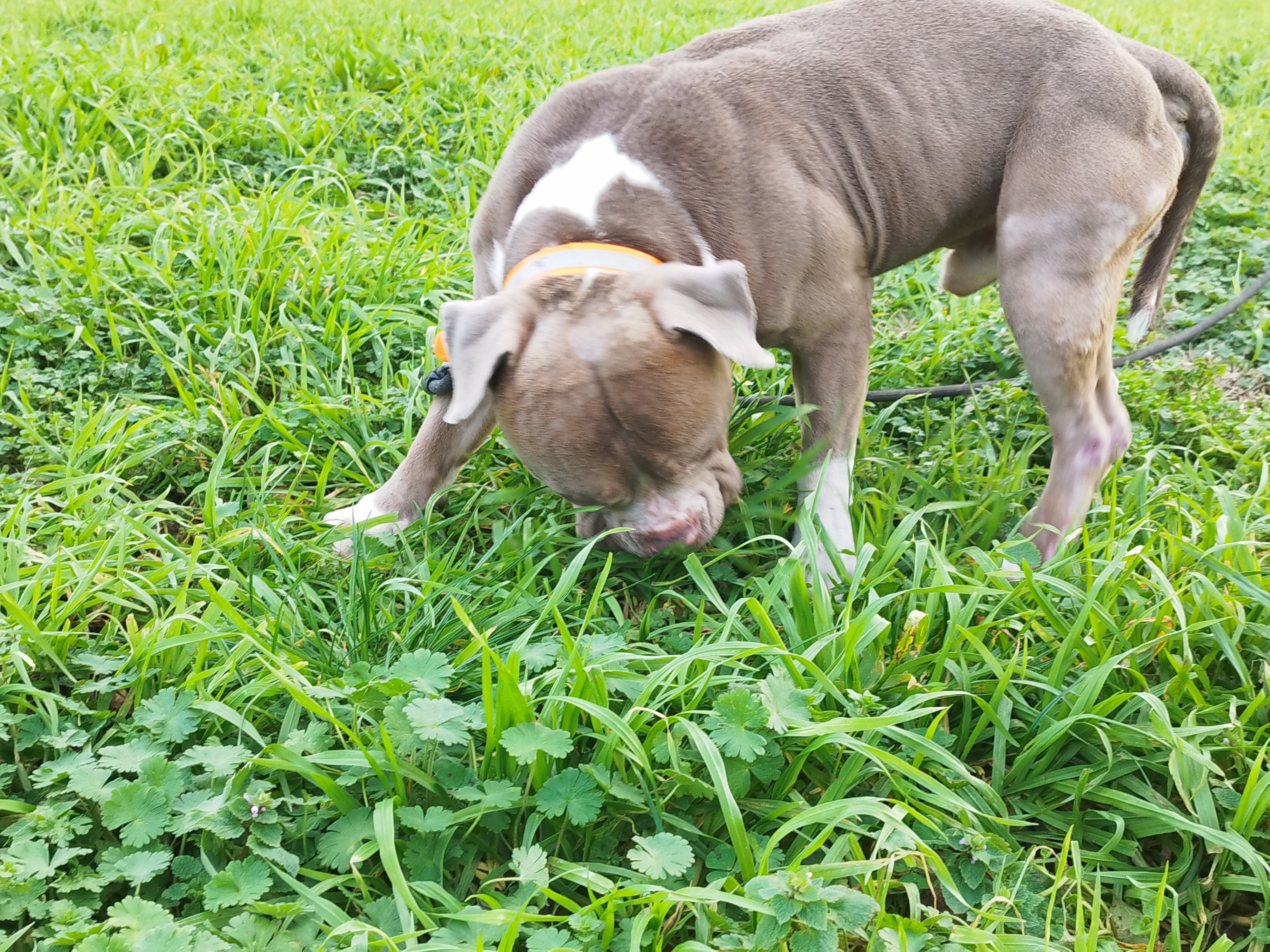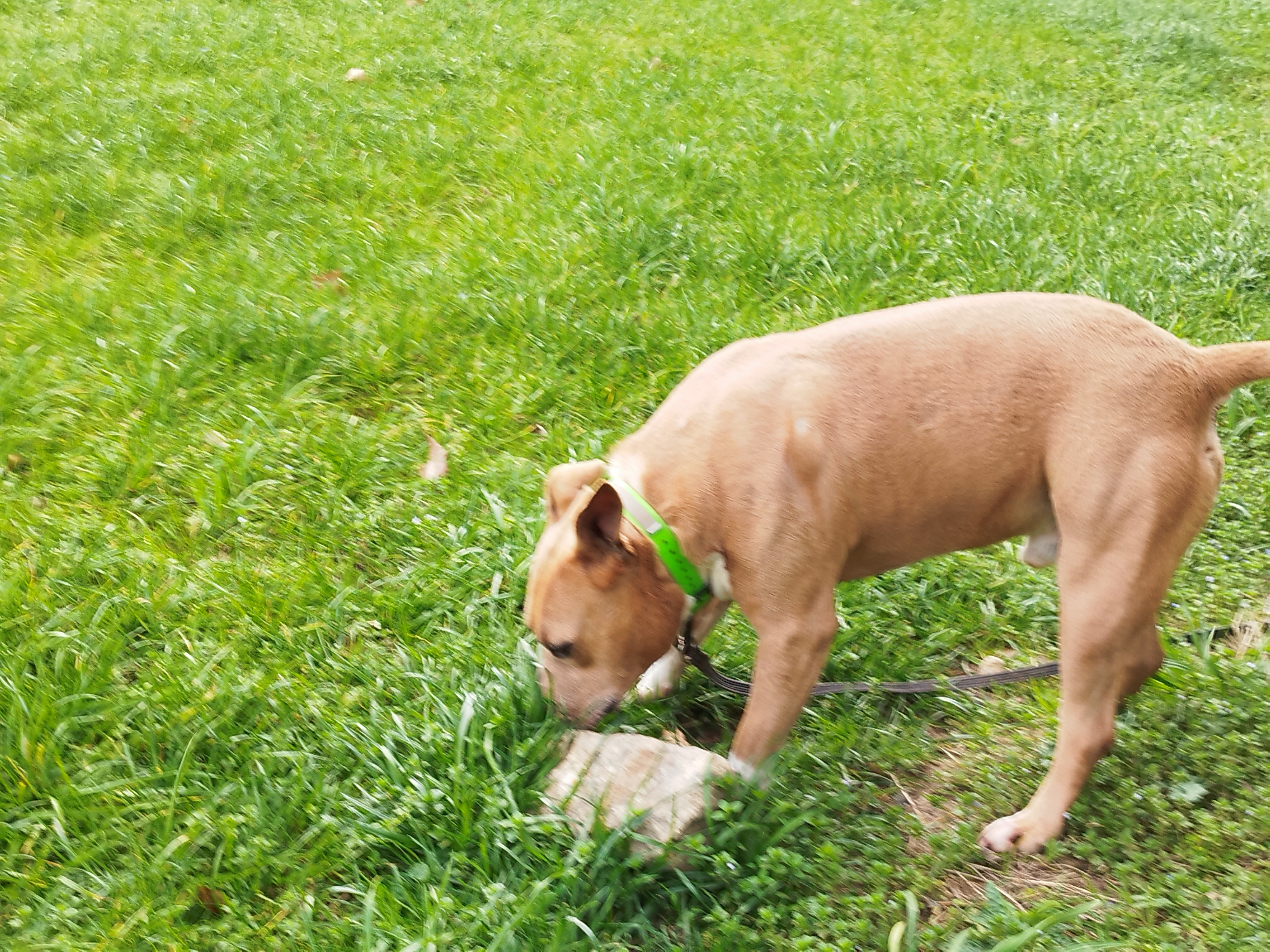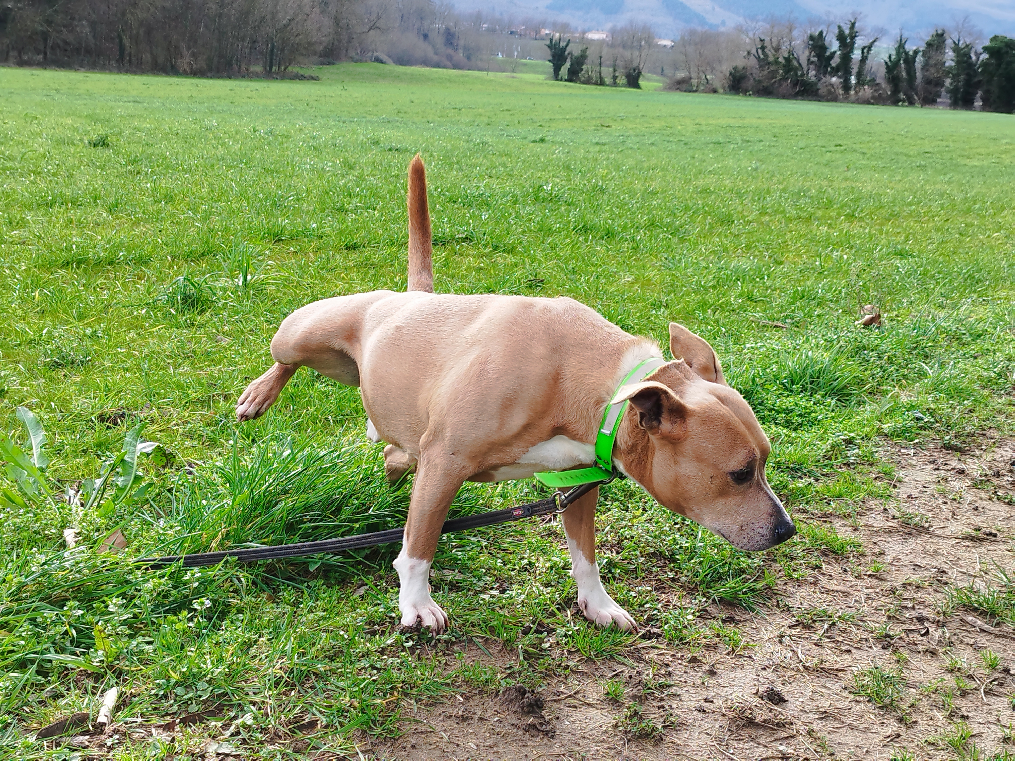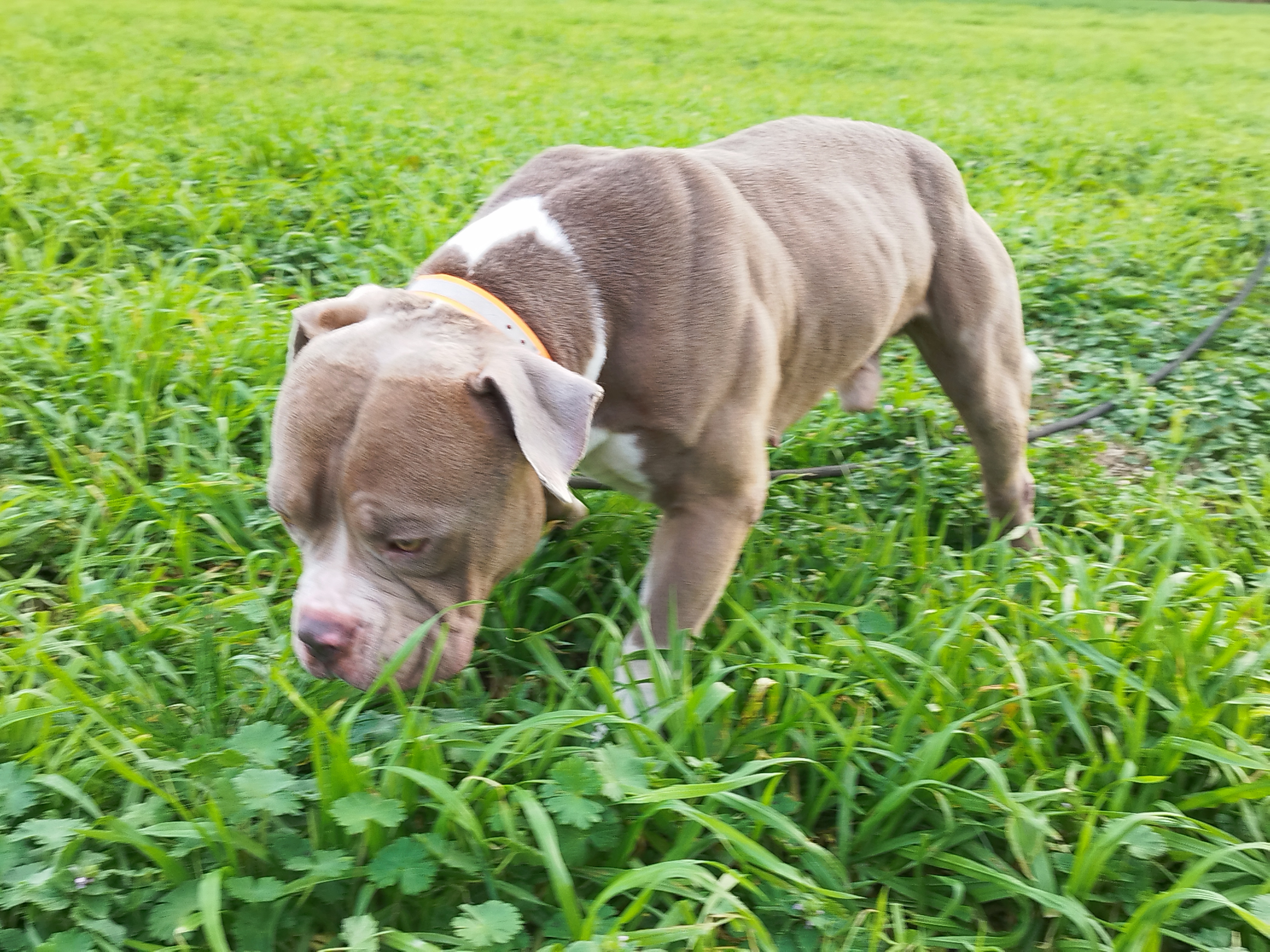 Shaman (né en 2023) est un chien puissant de 3 ans, de taille moyenne, croisé American Bully. Il est très proche des humains et aime les caresses. Shaman adore l’eau et il est même difficile de l’en sortir ! Un vrai poisson !