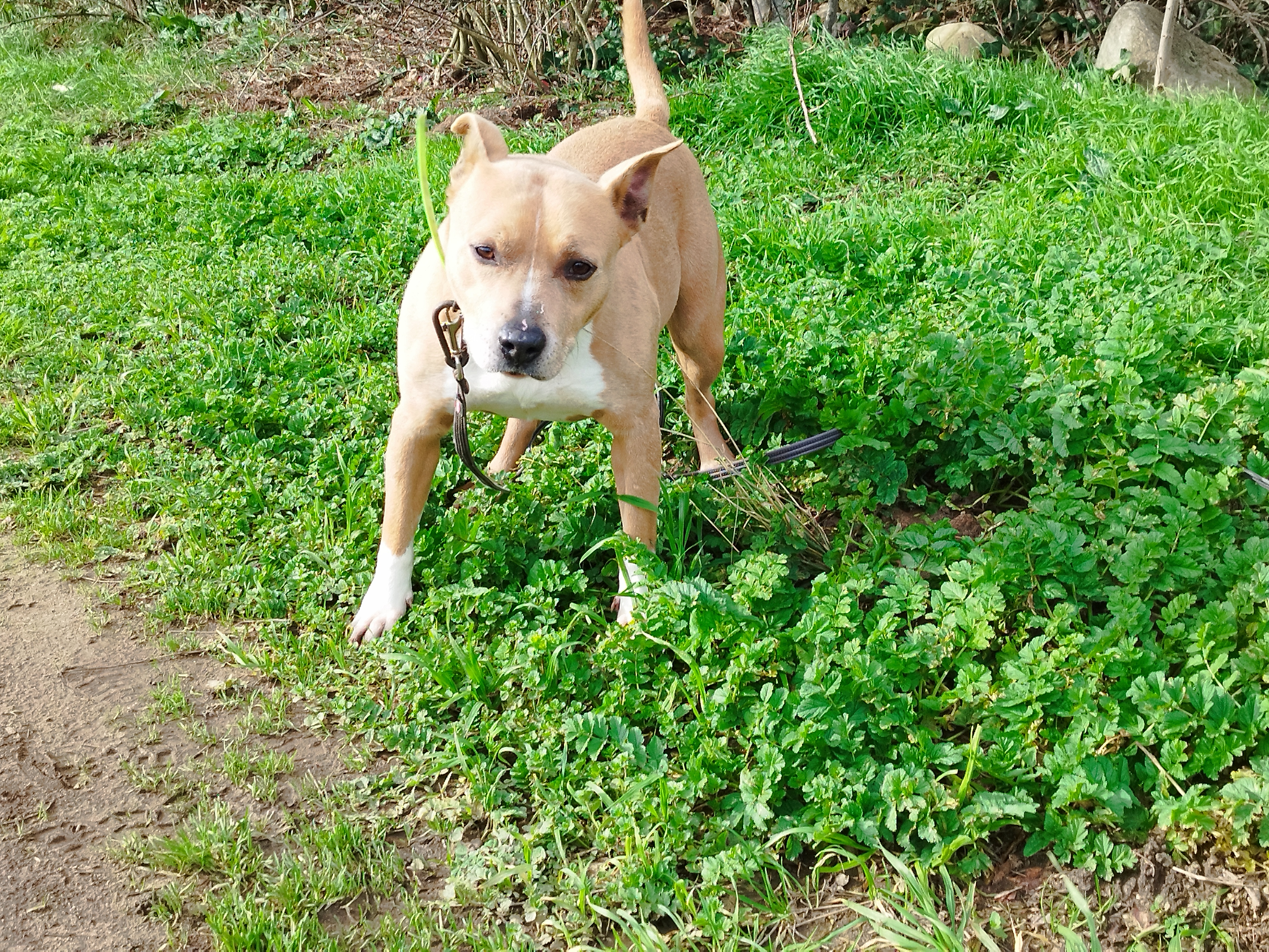 Shark (né le 01-03-2019) est câlin et agréable. Il n’aime pas ses congénères. C’est un chien de catégorie 1, de taille moyenne. Les adoptants doivent avoir un permis de détention.