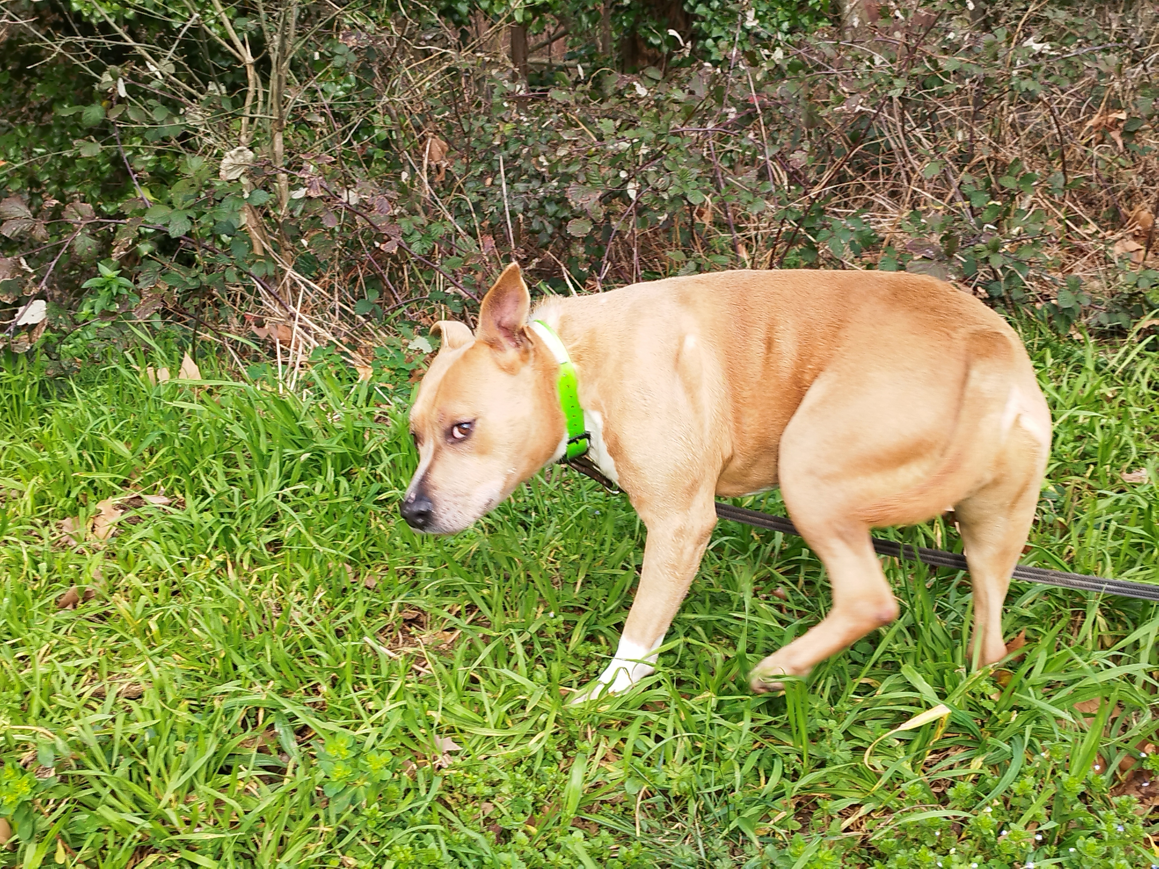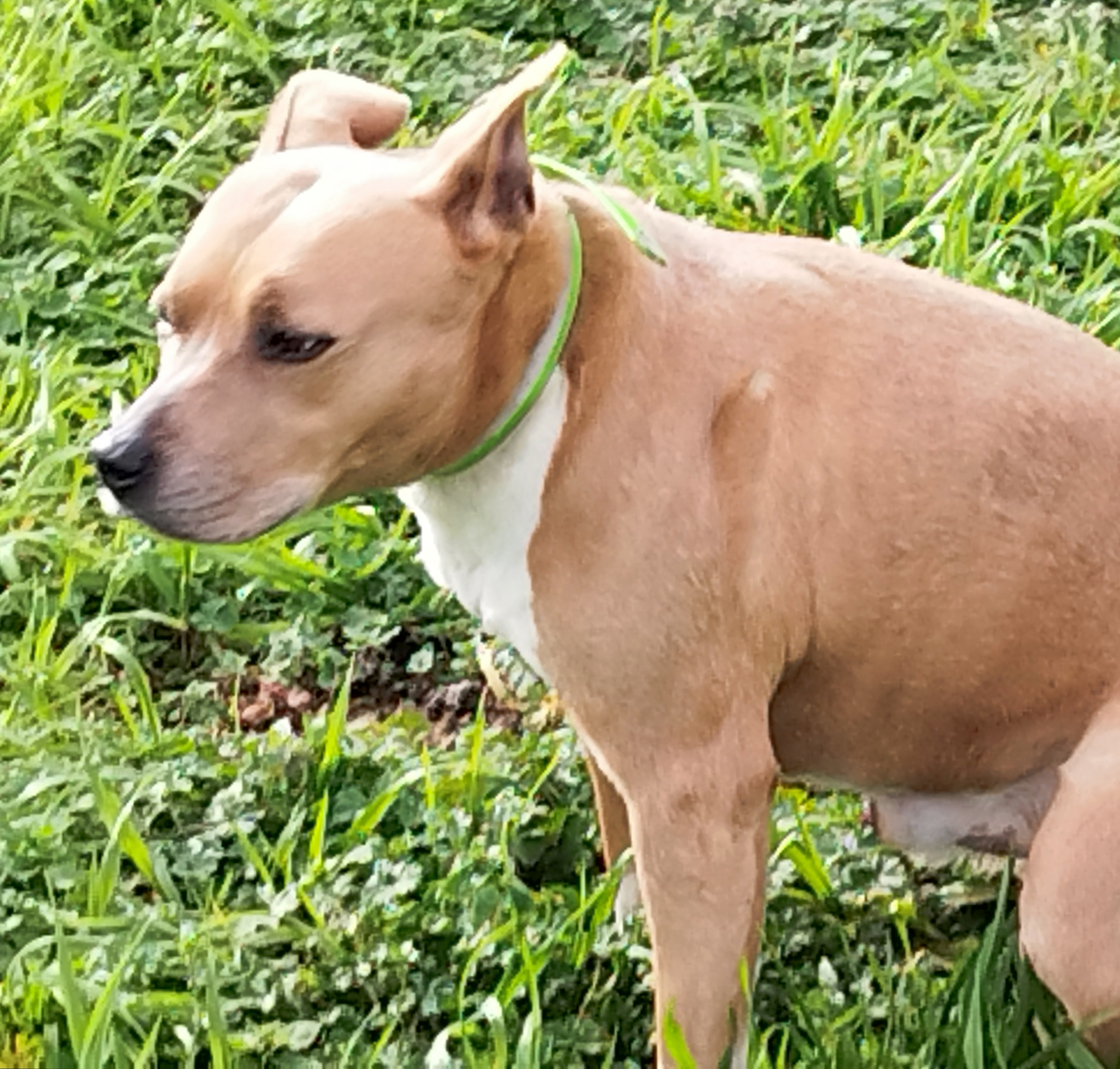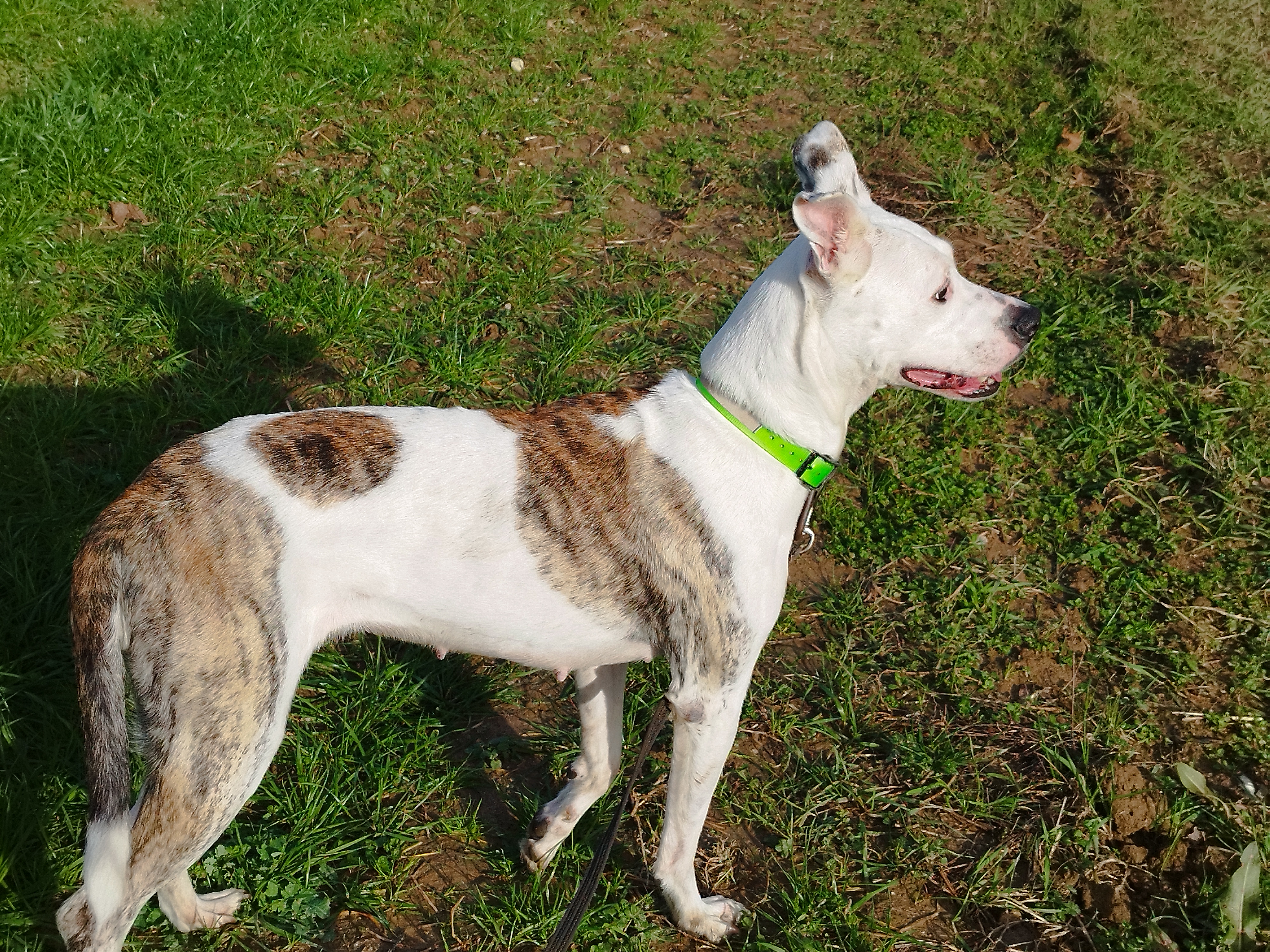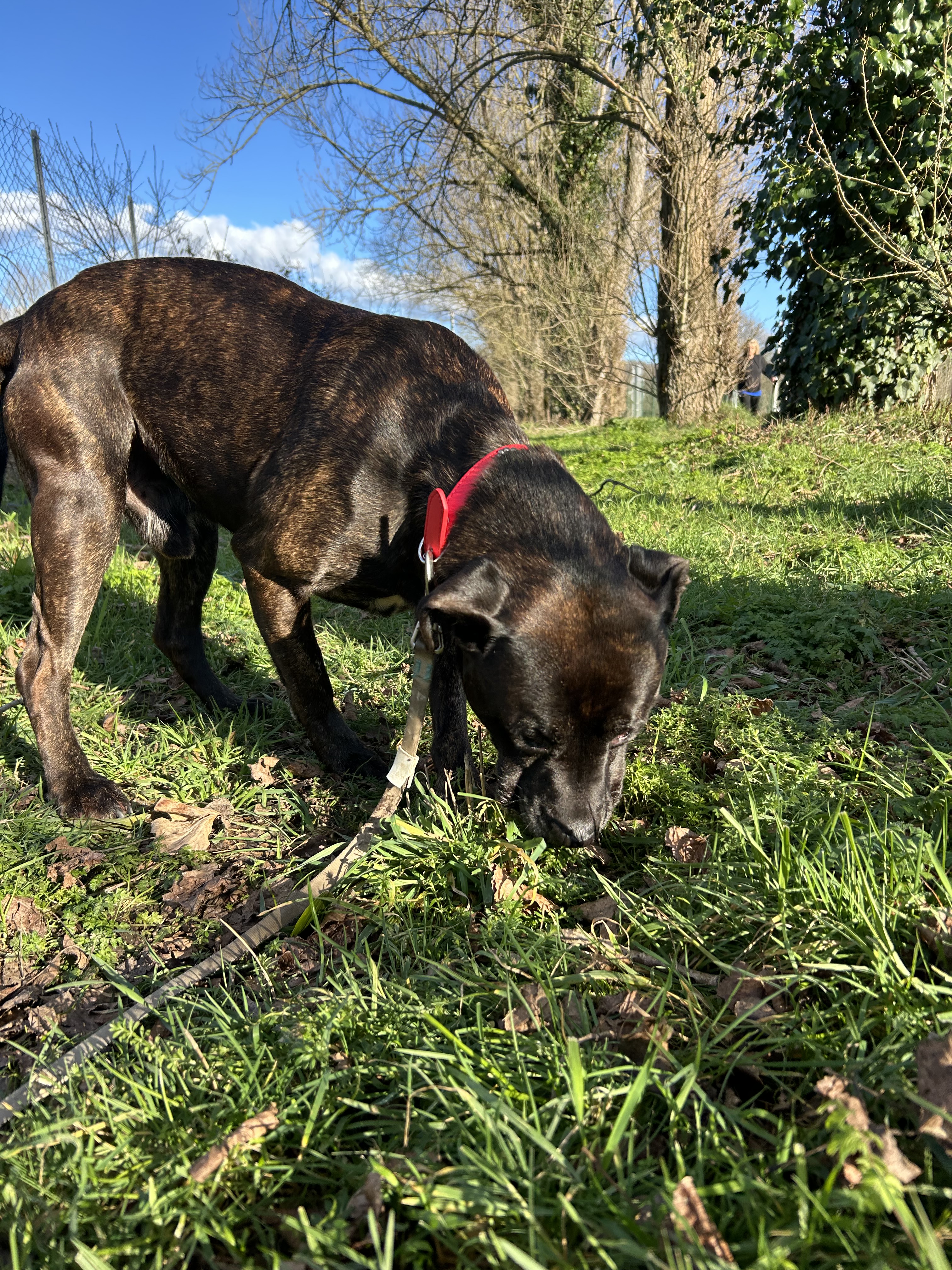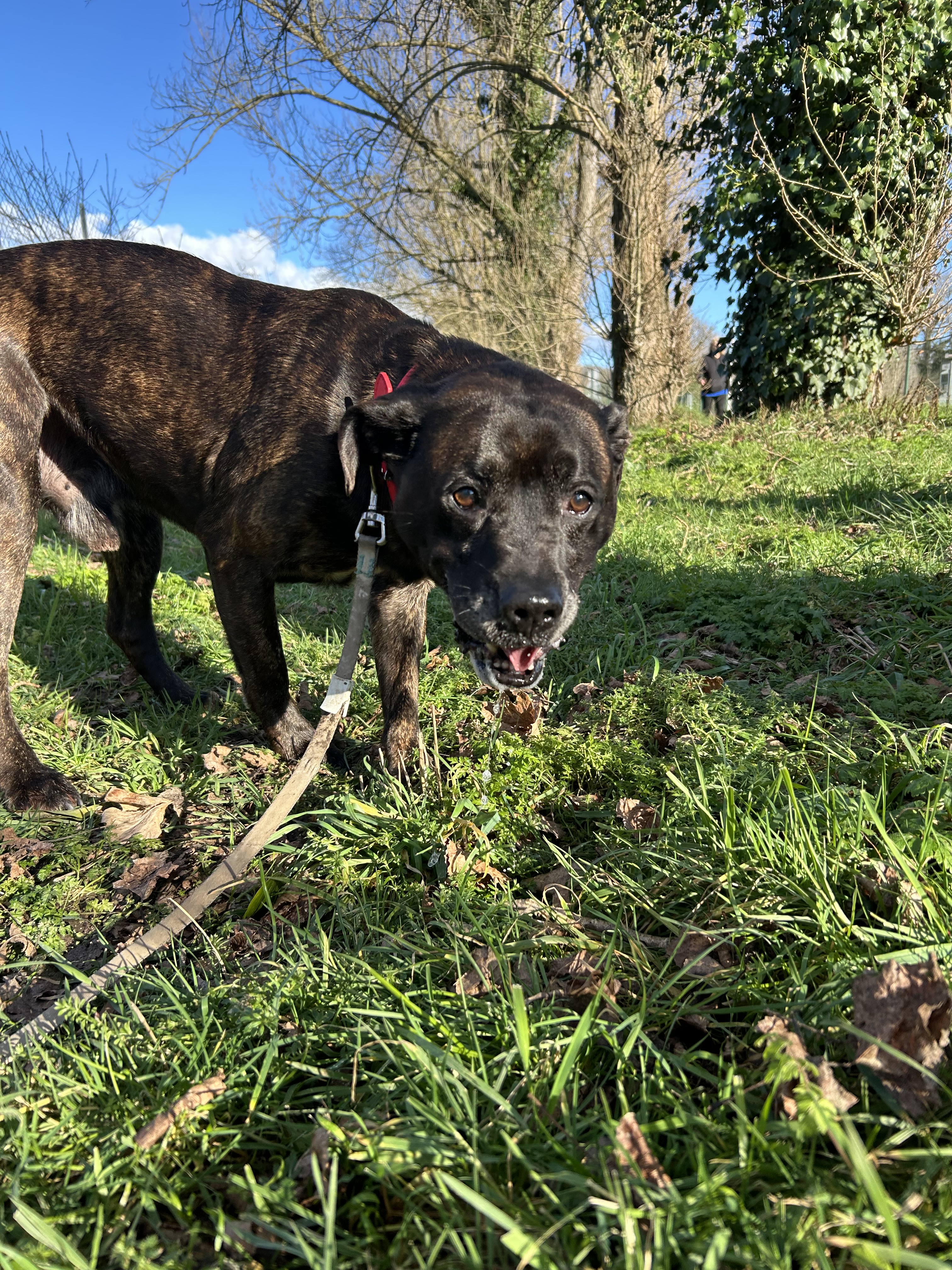 Cristal (née en 2020) est une chienne puissante de 6 ans, croisée American Bully. Elle est très gentille avec les humains. Elle adore les balades et ne tire pas trop ! Elle n’aime pas toujours les autres chiens. Cristal sera placée dans un foyer sans jeune enfant.